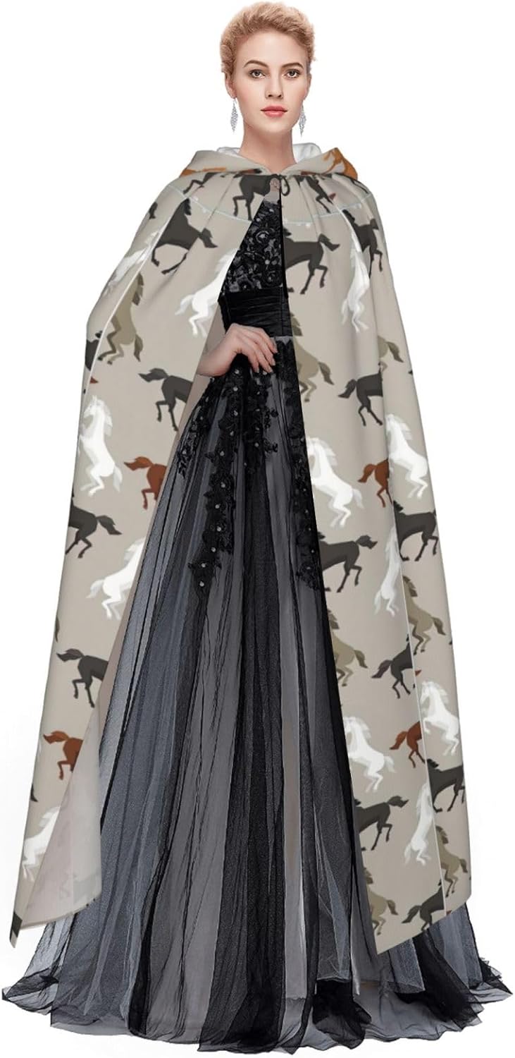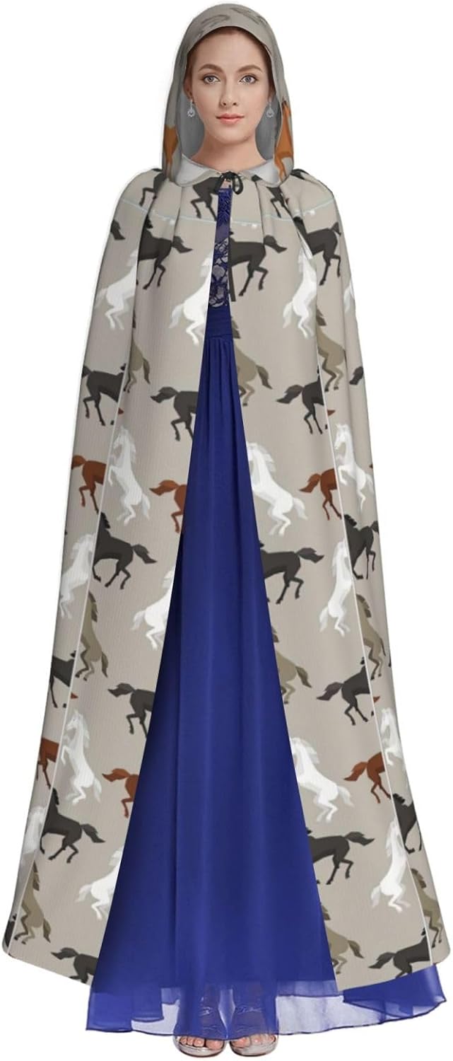 Mantello con cappuccio unisex con stampa di cavallo carino per adulti Halloween a lunghezza intera mantello da uomo con cappuccio costume