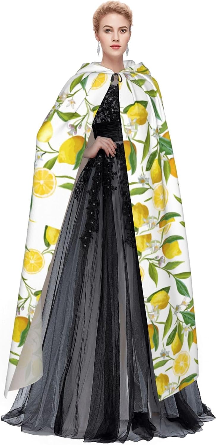 Mantello con cappuccio unisex con stampa di limoni tropicali freschi per adulti Halloween a lunghezza intera mantello da uomo con cappuccio costume