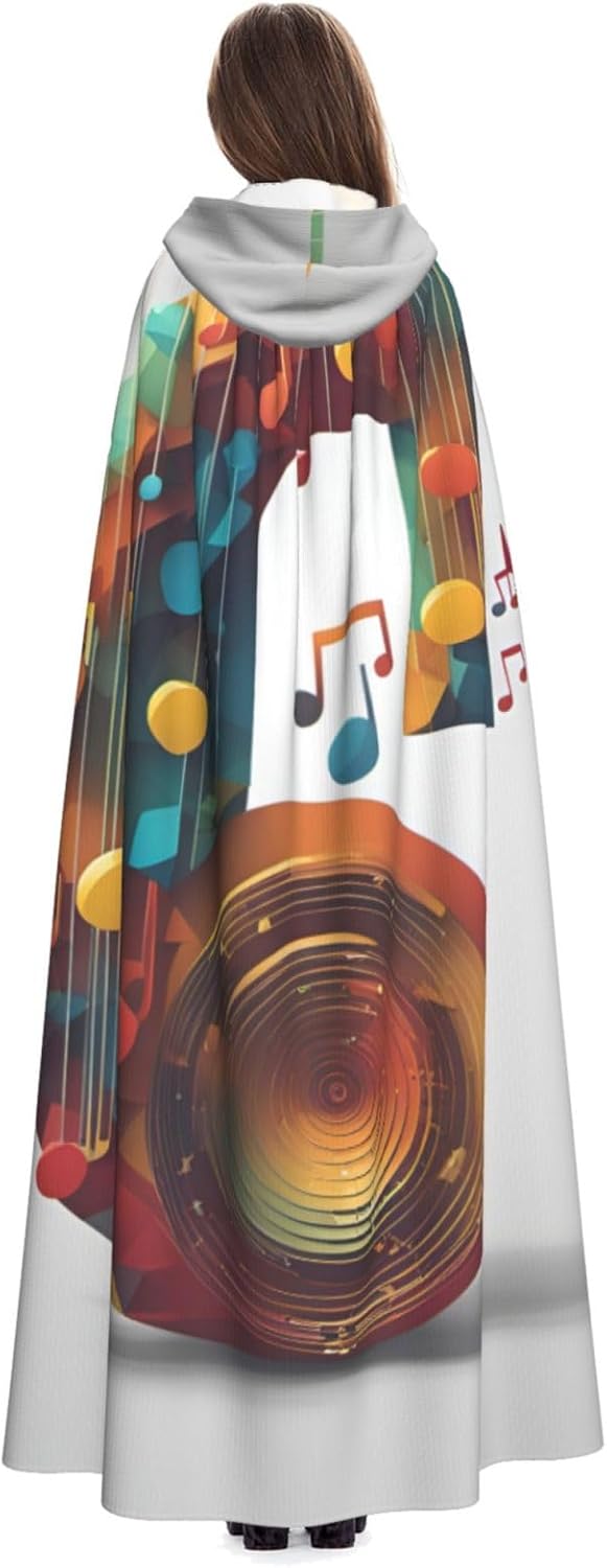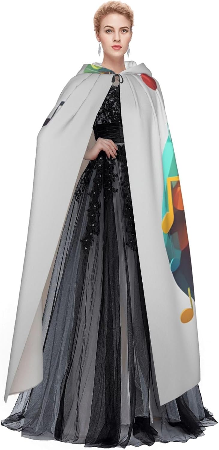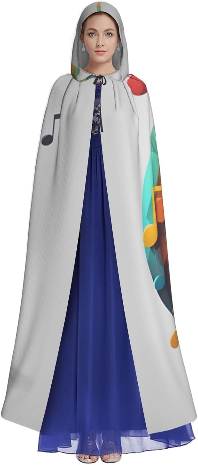 Mantello con cappuccio unisex con stampa di note musicali per adulti Halloween a lunghezza intera mantello da uomo con cappuccio costume