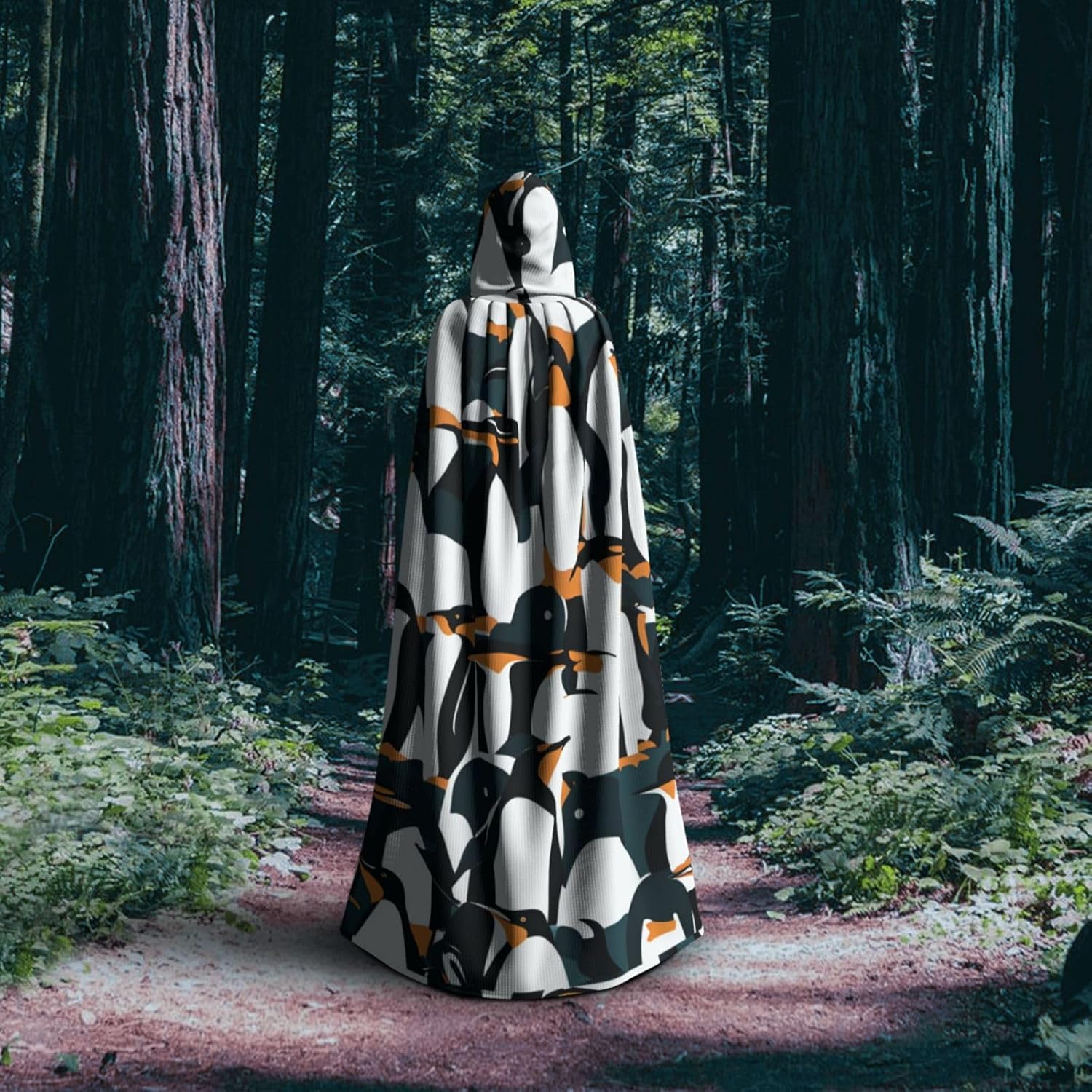 Mantello con cappuccio unisex con stampa di pinguino carino con cappuccio per adulti Halloween a lunghezza intera mantello da uomo con cappuccio costume