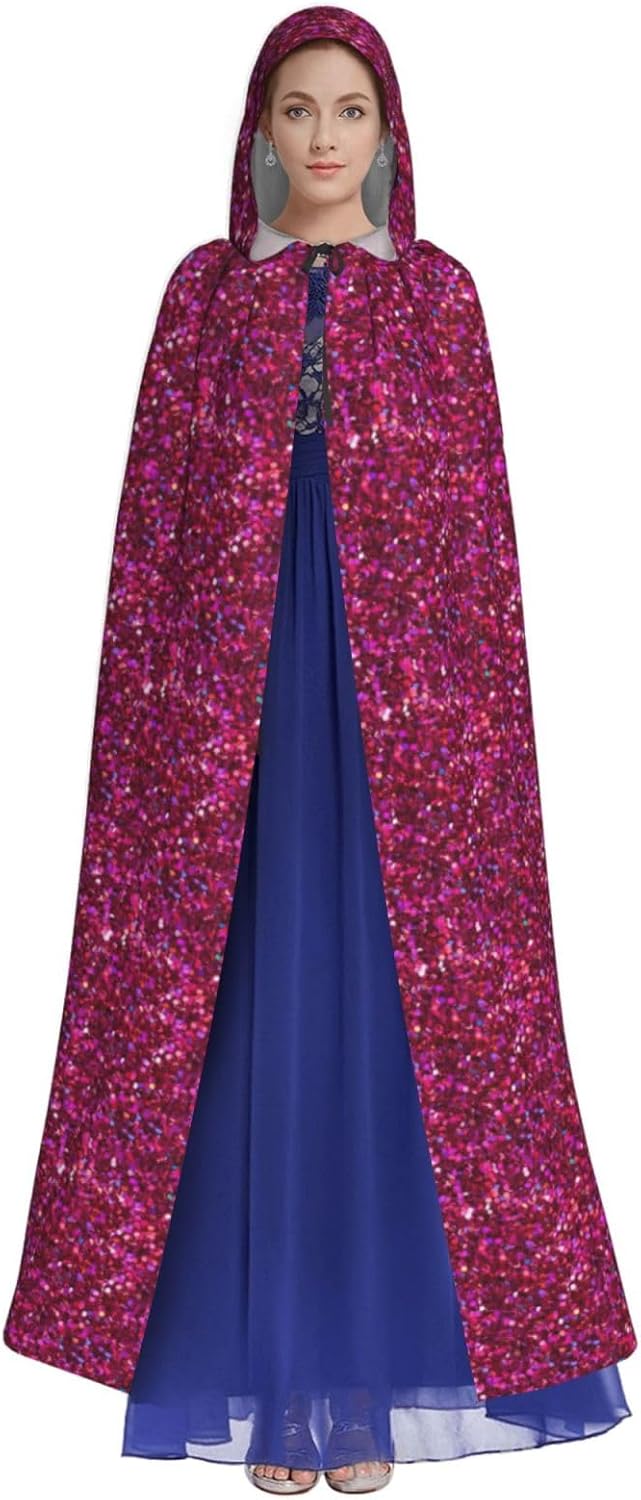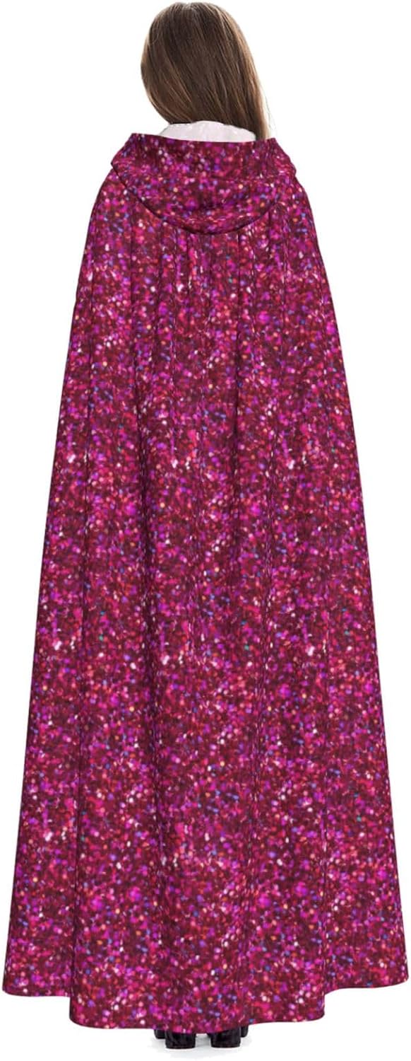 Mantello con cappuccio unisex con stampa glitterata per adulti Halloween a lunghezza intera mantello da uomo con cappuccio costume