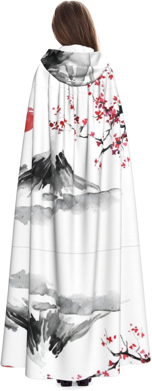 Mantello con cappuccio unisex con stampa HD con monte rosso giapponese, mantello per Halloween, mantello con cappuccio, costume cosplay unisex