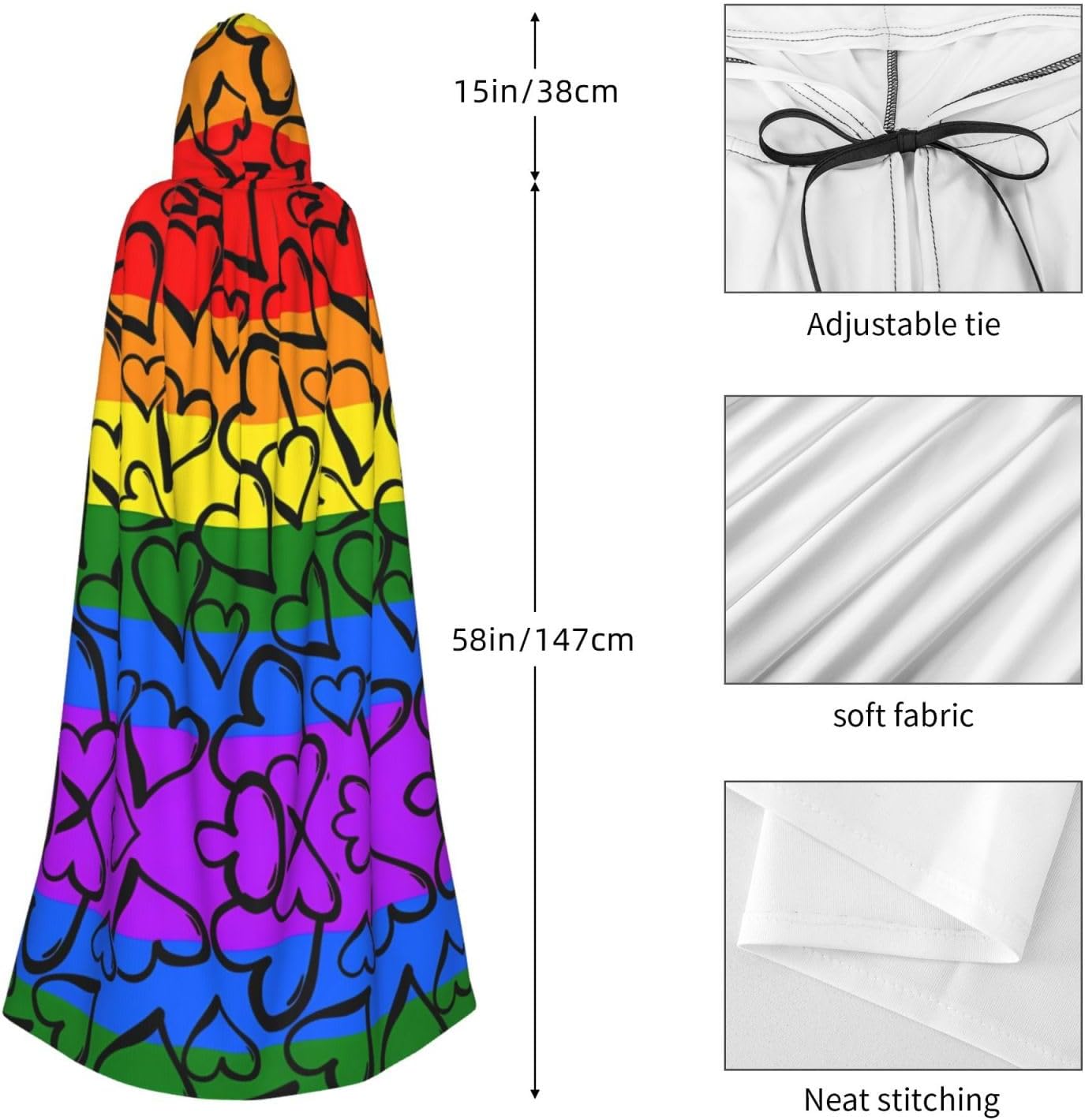 Mantello con cappuccio unisex con stampa HD con motivo arcobaleno Gay Pride, mantello di Halloween, mantello con cappuccio, costume cosplay unisex