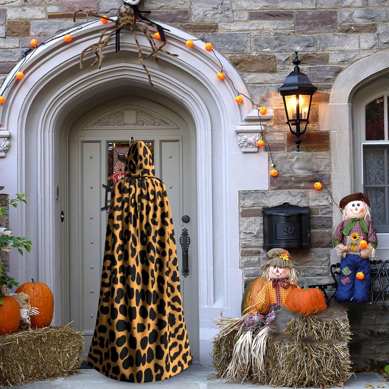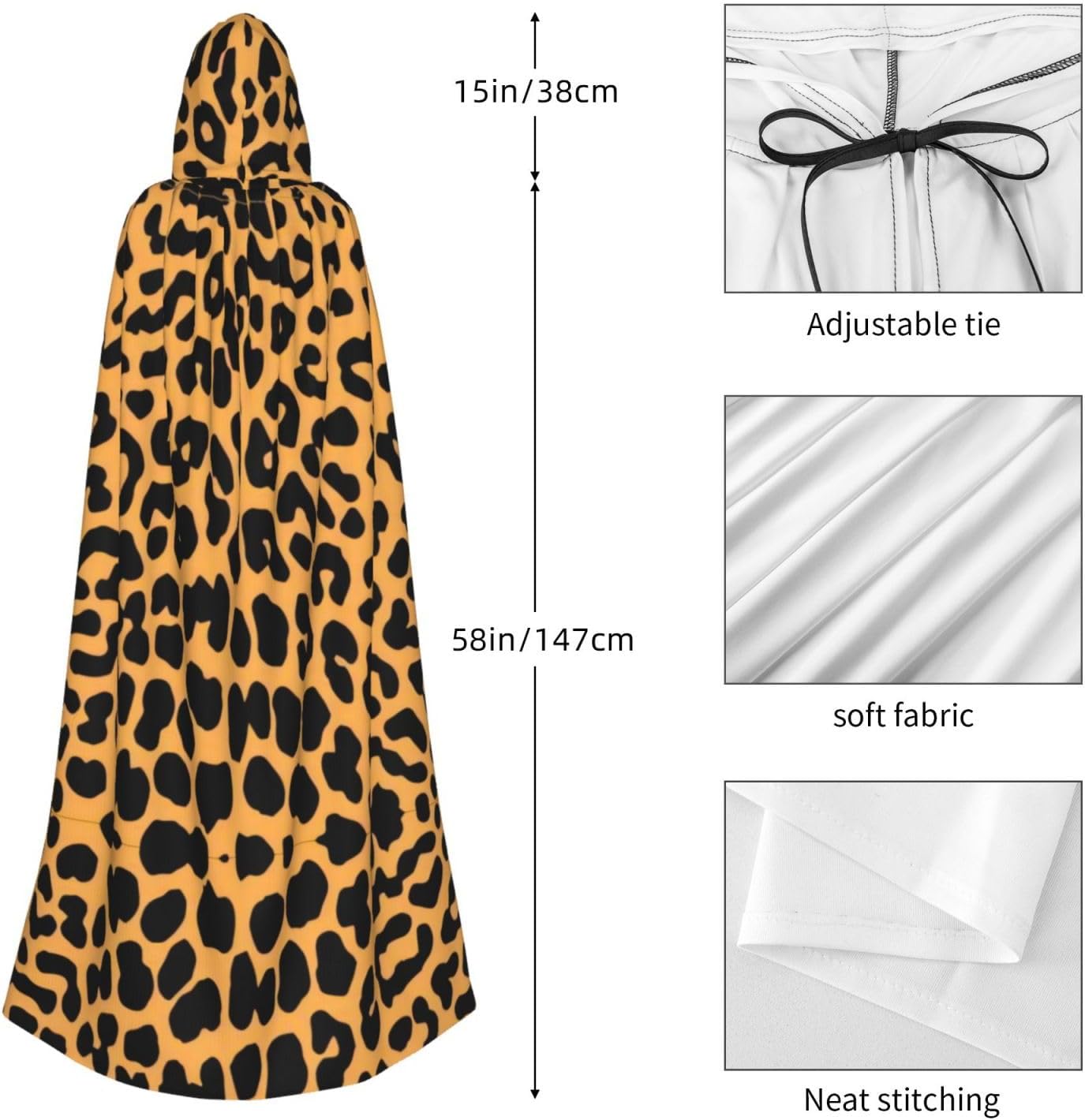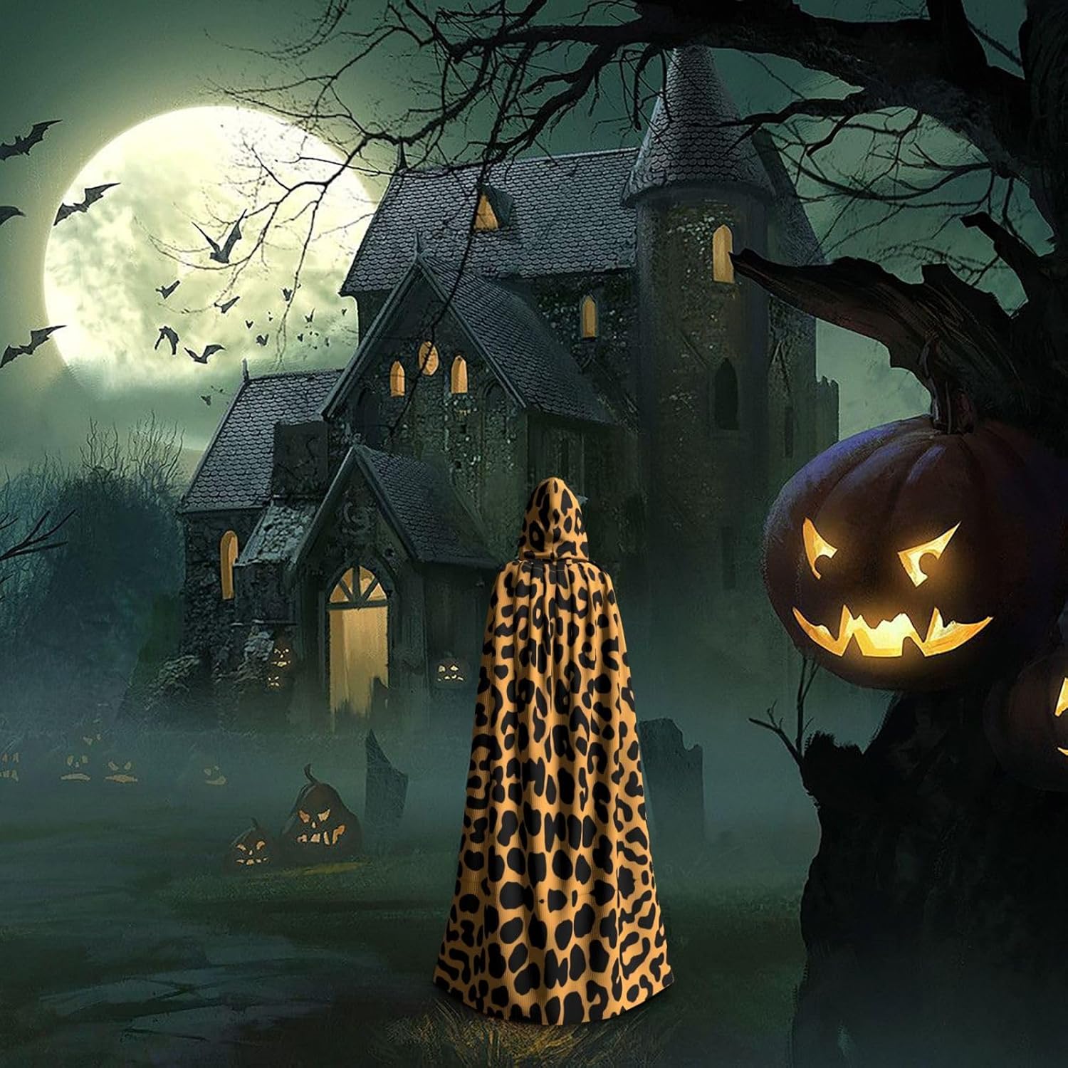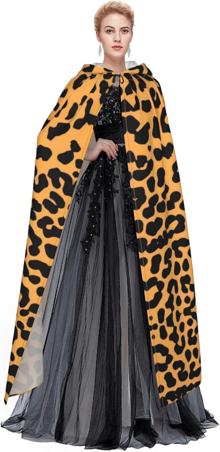 Mantello con cappuccio unisex con stampa leopardata, mantello di Halloween, mantello con cappuccio, costume cosplay unisex