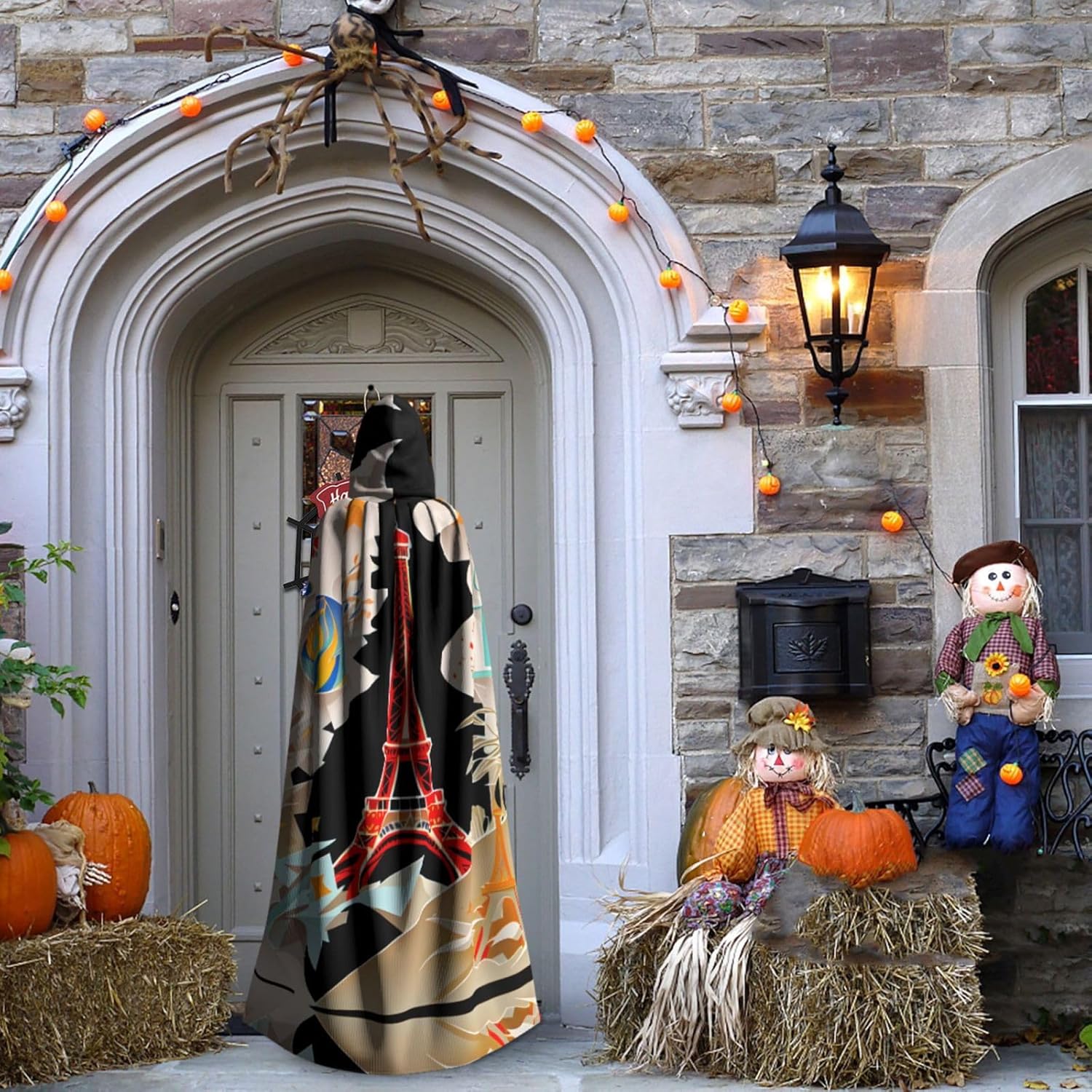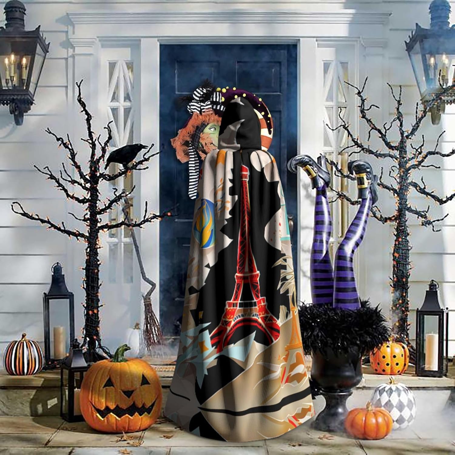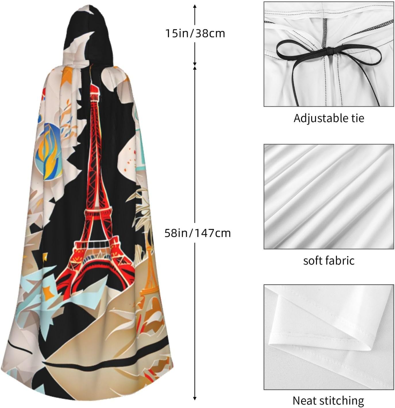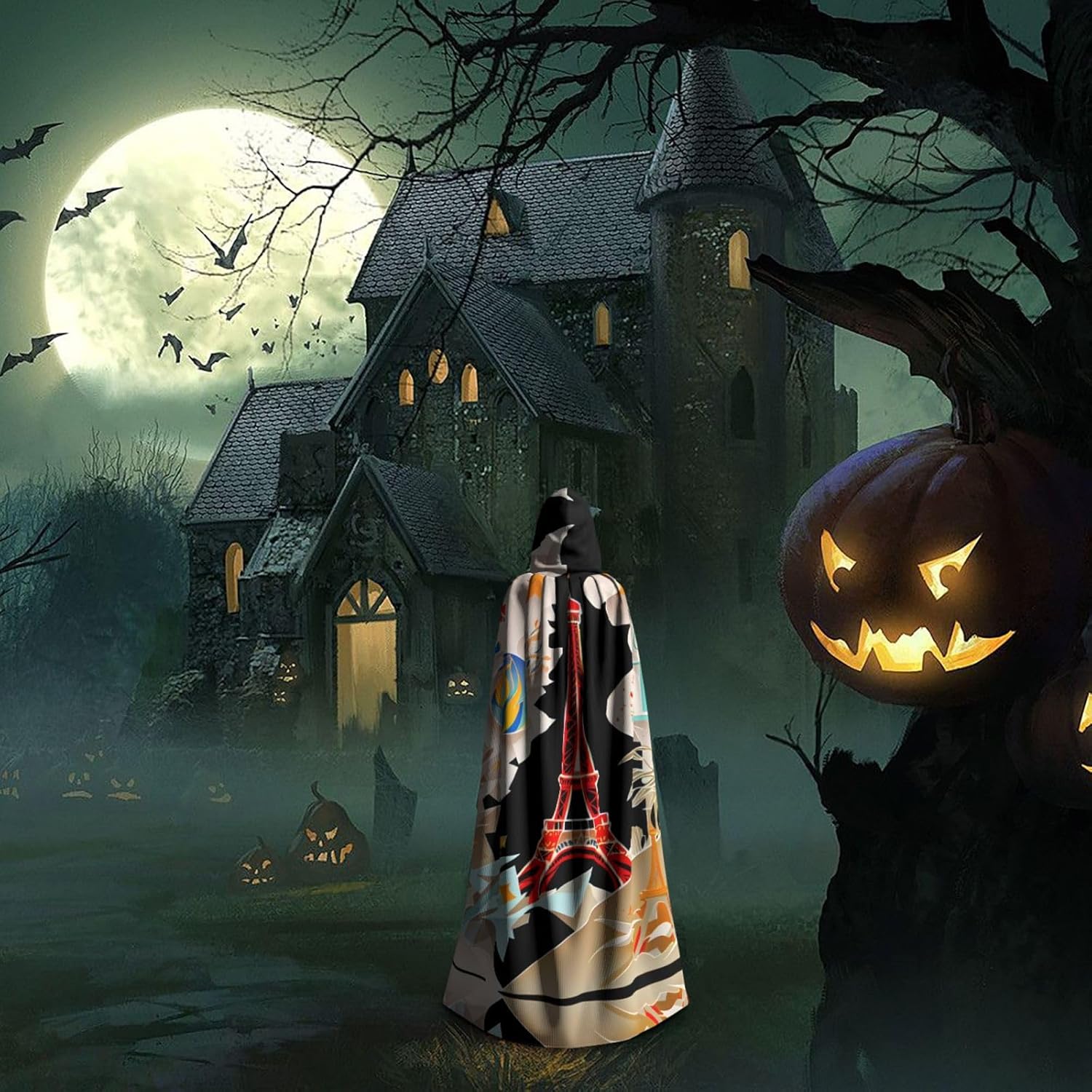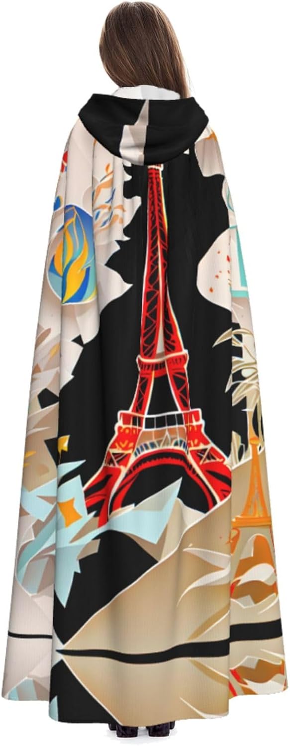 Mantello con cappuccio unisex della Torre Eiffel di Parigi, per Halloween, Natale, vampiro, stregone, costume cosplay