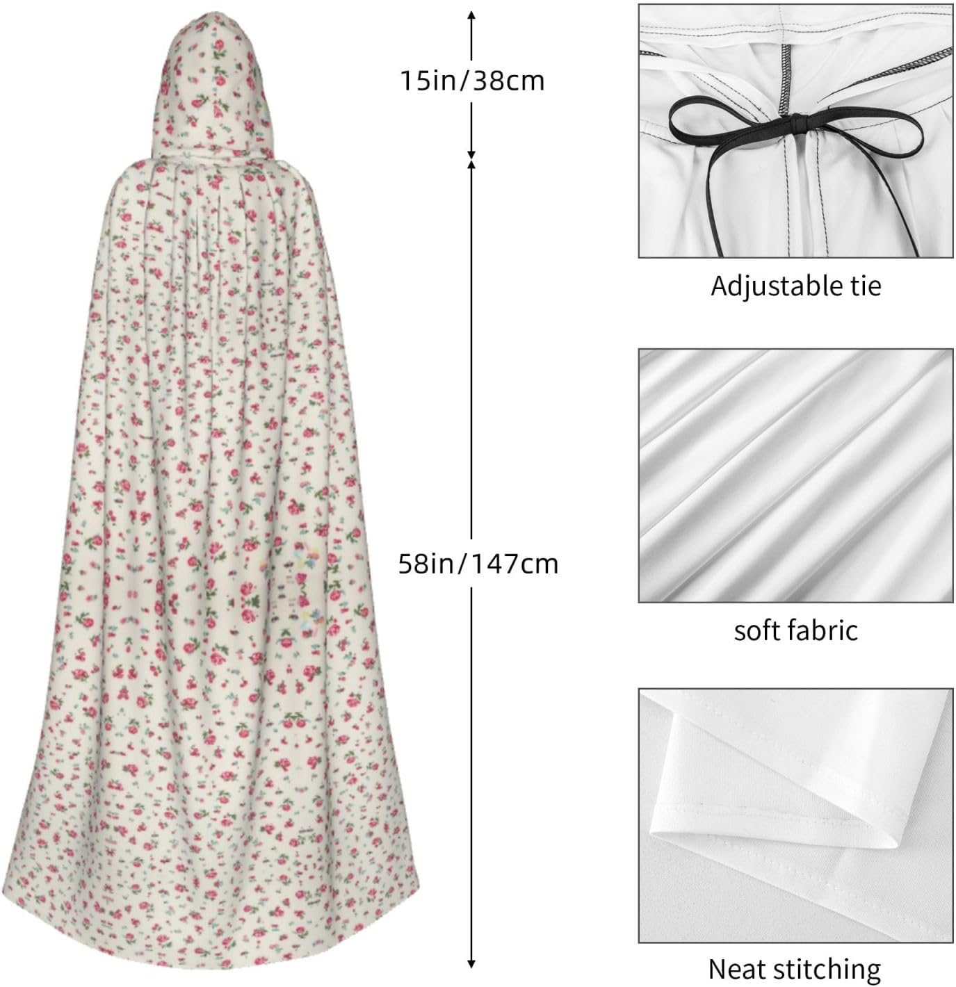Entra nel mondo della fantasia e dell'incanto con il nostro mantello medievale da donna. Realizzato in fibra di poliestere, questo mantello offre un'esperienza confortevole, perfetto per le tue avventure di ruolo e occasioni di vestire. Misurando con un cappuccio oversize, questo mantello fornisce un look accattivante ed elegante. La cravatta aggiunge un tocco di raffinatezza, mentre l'assenza di una cerniera garantisce comfort tutto il giorno senza alcun disagio comfort O irritazione Che tu stia partecipando a una festa di Halloween, partecipando a un evento cosplay, esibendoti sul palco o partecipando a un incontro a tema, questo mantello è la scelta perfetta. Può anche essere indossato per feste in maschera, balli, convegni di fumetti e molto altro ancora. Lascia correre la tua immaginazione e crea ricordi indimenticabili con questo capo versatile. In termini di cura, questo mantello Può essere facilmente mantenuto Lavabile in lavatrice o a mano. La sua costruzione garantisce una lunga durata, permettendoti di indossarlo per molte occasioni a venire. Sperimenta la magia e il fascino dell'era medievale con il nostro mantello medievale da donna. Abbraccia la tua incantatrice interiore e fai una dichiarazione con questo pezzo elegante e versatile. Aggiungi un tocco di mistero ed eleganza al tuo guardaroba oggi!