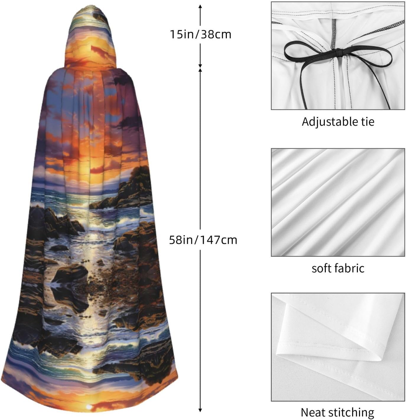 Entra nel mondo della fantasia e dell'incanto con il nostro mantello medievale da donna. Realizzato in fibra di poliestere, questo mantello offre un'esperienza confortevole, perfetto per le tue avventure di ruolo e occasioni di vestire. Misurando con un cappuccio oversize, questo mantello fornisce un look accattivante ed elegante. La cravatta aggiunge un tocco di raffinatezza, mentre l'assenza di una cerniera garantisce comfort tutto il giorno senza alcun disagio comfort O irritazione Che tu stia partecipando a una festa di Halloween, partecipando a un evento cosplay, esibendoti sul palco o partecipando a un incontro a tema, questo mantello è la scelta perfetta. Può anche essere indossato per feste in maschera, balli, convegni di fumetti e molto altro ancora. Lascia correre la tua immaginazione e crea ricordi indimenticabili con questo capo versatile. In termini di cura, questo mantello Può essere facilmente mantenuto Lavabile in lavatrice o a mano. La sua costruzione garantisce una lunga durata, permettendoti di indossarlo per molte occasioni a venire. Sperimenta la magia e il fascino dell'era medievale con il nostro mantello medievale da donna. Abbraccia la tua incantatrice interiore e fai una dichiarazione con questo pezzo elegante e versatile. Aggiungi un tocco di mistero ed eleganza al tuo guardaroba oggi!