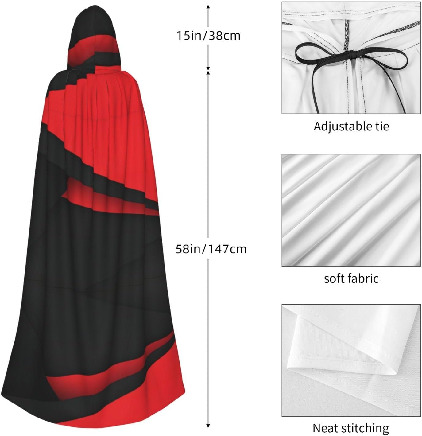 Stampa HD, mantello unisex con cappuccio, mantello a lunghezza intera per feste in costume di Halloween, immagine vivida, per offrirti un'esperienza nuova di zecca. Progettato per donne adulte, il mantello unisce magnificamente moda e funzionalità. È realizzato in 100% poliestere, promette longevità e morbidezza sulla pelle. Il design del mantello, caratterizzato da un cappuccio oversize, è perfetto per aggiungere un'aria di mistica al tuo outfit. La lunghezza e la larghezza generose offrono una vestibilità ampia e fluida, mentre il cappuccio alto 45,7 cm offre un'ampia copertura. Il mantello non si limita alle celebrazioni di Halloween. È abbastanza versatile per varie occasioni: pensa a giochi di ruolo, feste in costume, balli in maschera e persino convention a fumetti. Prendersi cura di questo accattivante mantello è un gioco da ragazzi poiché è lavabile in lavatrice e altamente resistente. Vestiti con stile con il nostro incredibile mantello con cappuccio.