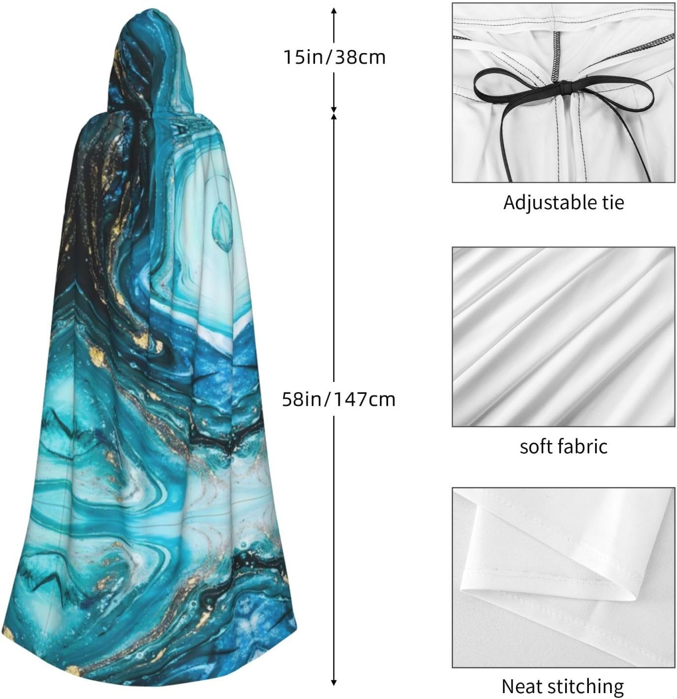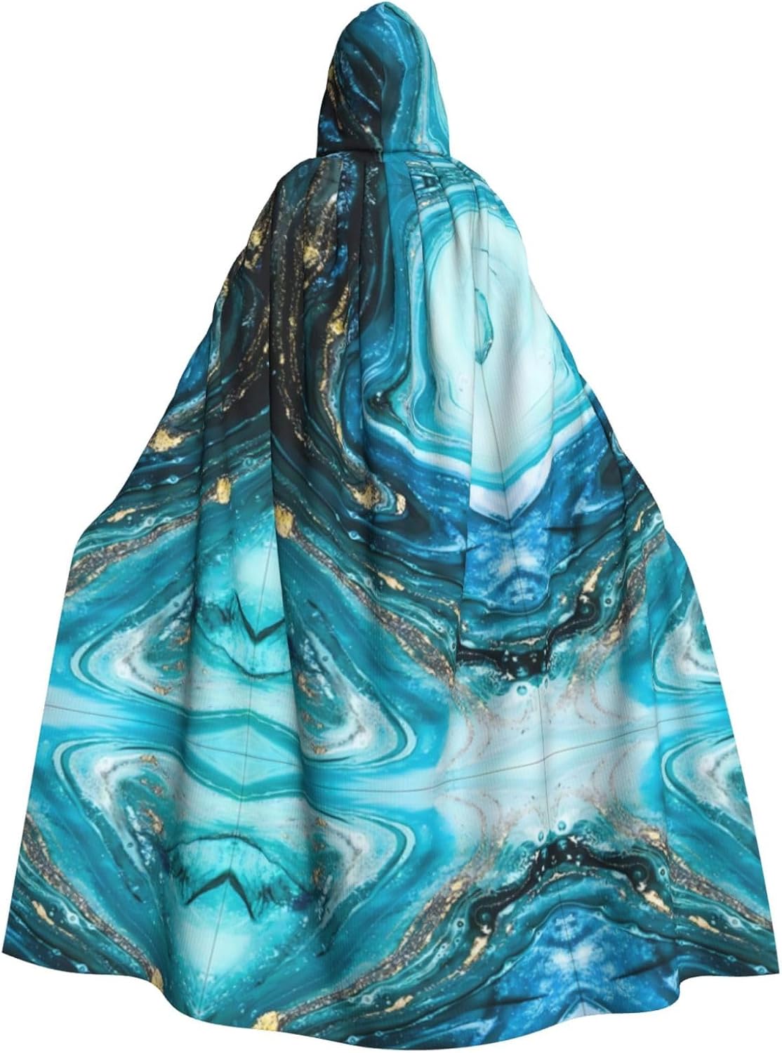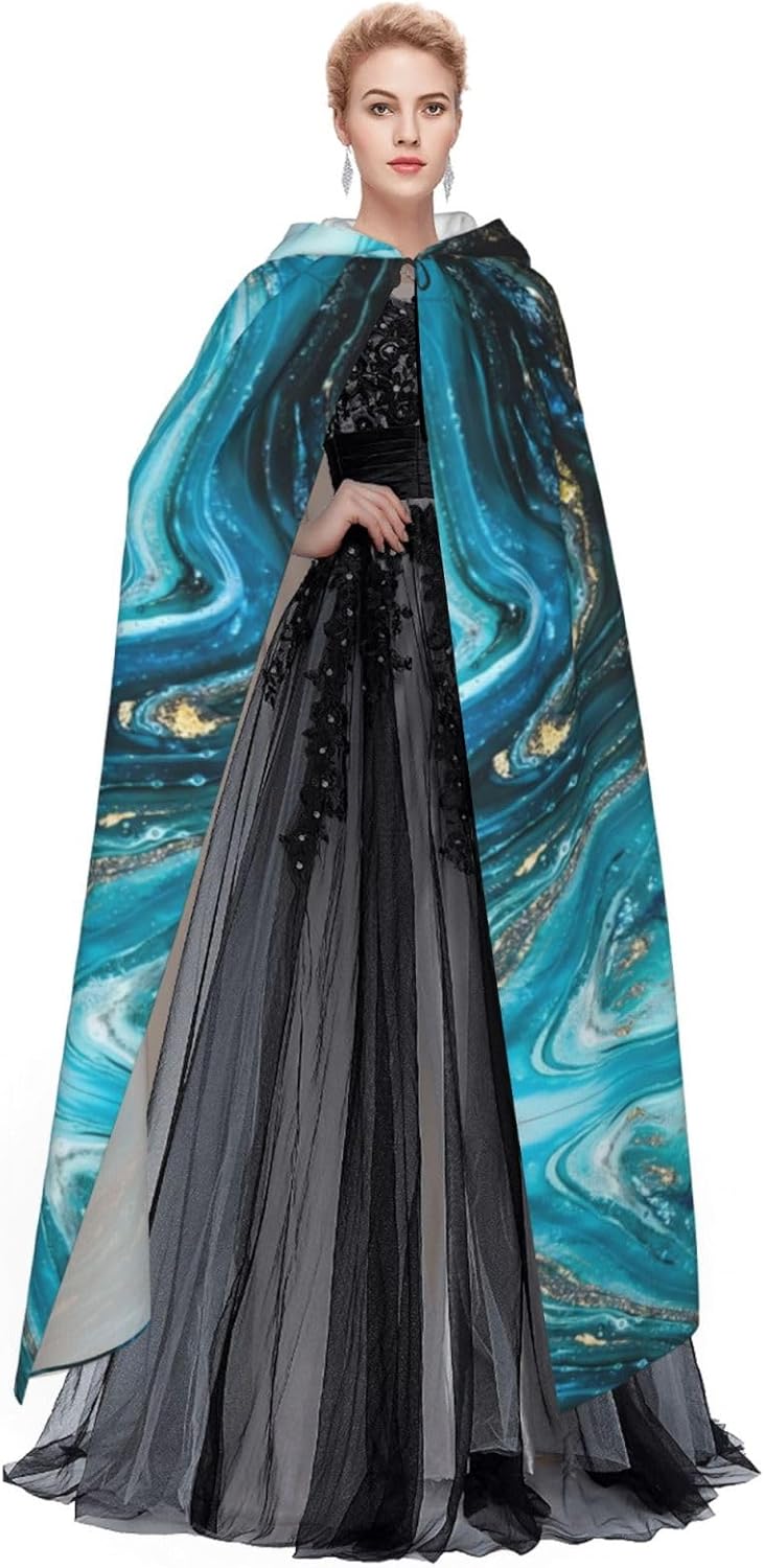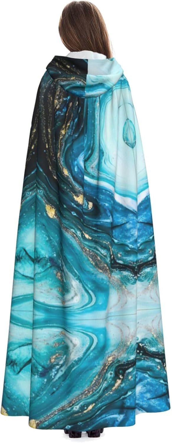 Mantello con cappuccio unisex turchese blu oro marmo stampa HD, mantello di Halloween, mantello con cappuccio, costume cosplay unisex vestaglia