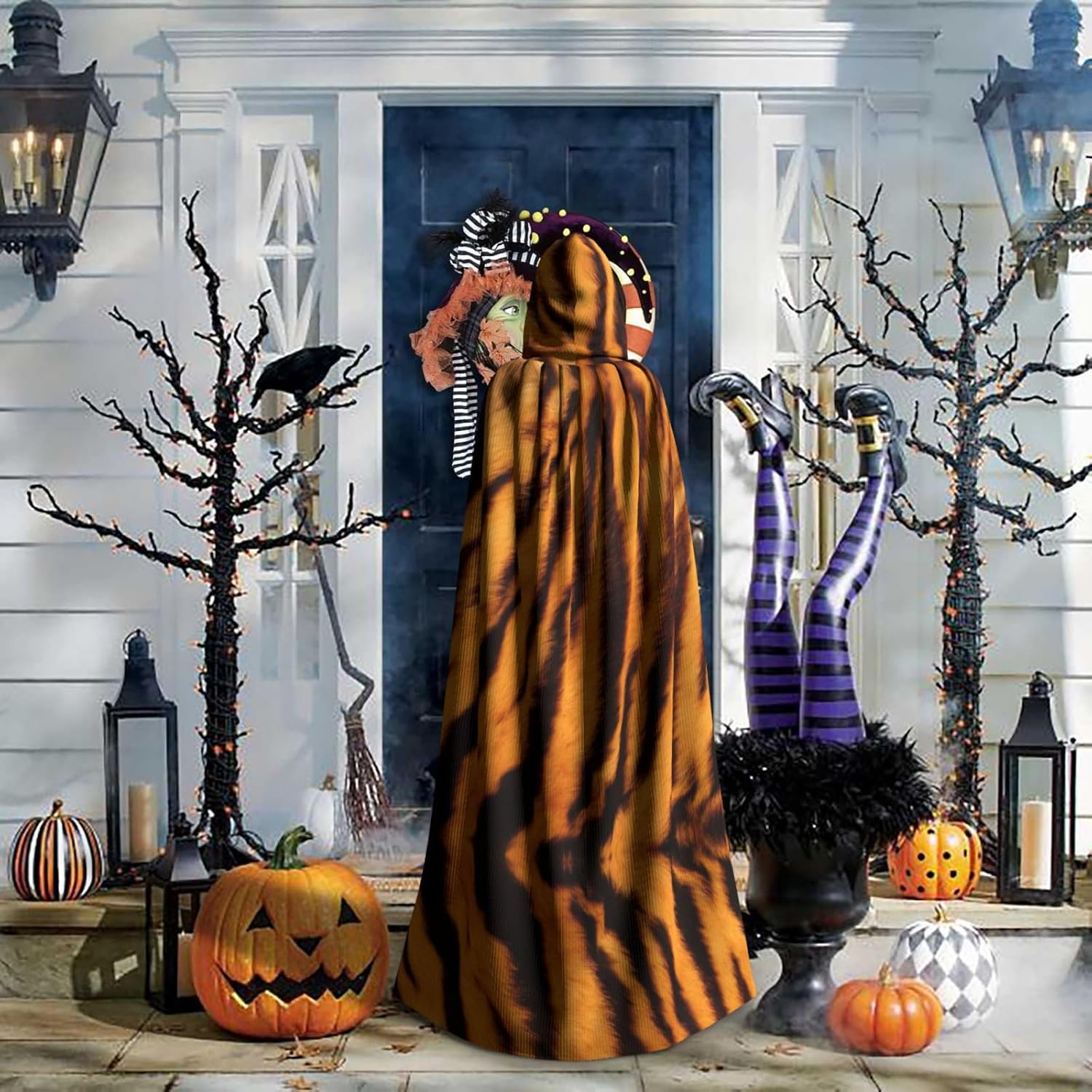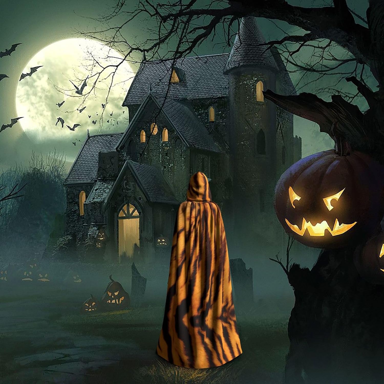 Mantello con cappuccio versatile con stampa a righe tigre mantello di Halloween mantello con cappuccio totale cosplay feste festival mantello con cappuccio