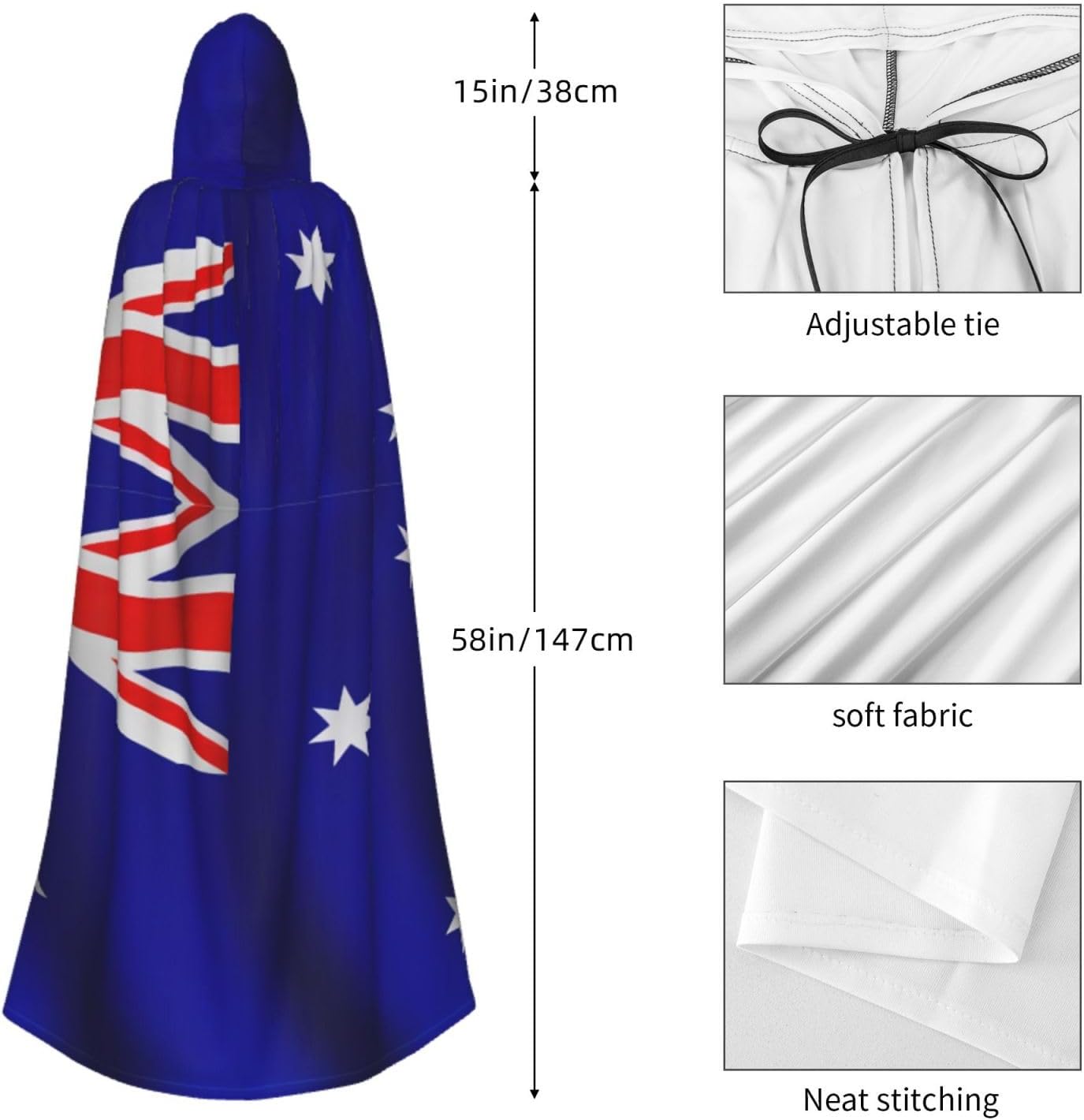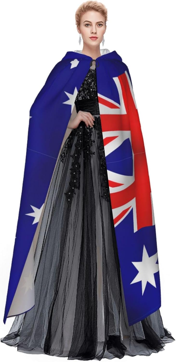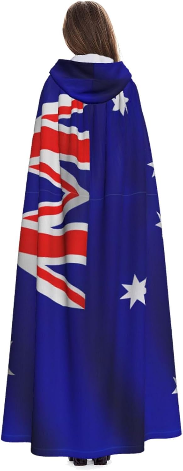 Realizzato in poliestere, questo mantello con stampa bandiera australiana con cappuccio garantisce longevità e comfort. Le sue dimensioni ottimali assicurano una copertura completa per tutte le età, facendoti risaltare in qualsiasi evento. Che tu sia diretto per Halloween, un evento cosplay, un costume da palcoscenico, una festa in maschera, una festa a tema, un ballo o una convention di fumetti, questo mantello è una scelta ideale. Il suo design unico, completo di un grande cappuccio e cravatte collare. Inoltre, puoi dire addio ai metodi di pulizia complicati. Questo mantello con cappuccio con stampa bandiera australiana è lavabile in lavatrice e a mano, offrendo una cura senza sforzo. Esci con stile e comfort con il nostro mantello con cappuccio, il tuo compagno per tutti gli eventi e le occasioni.