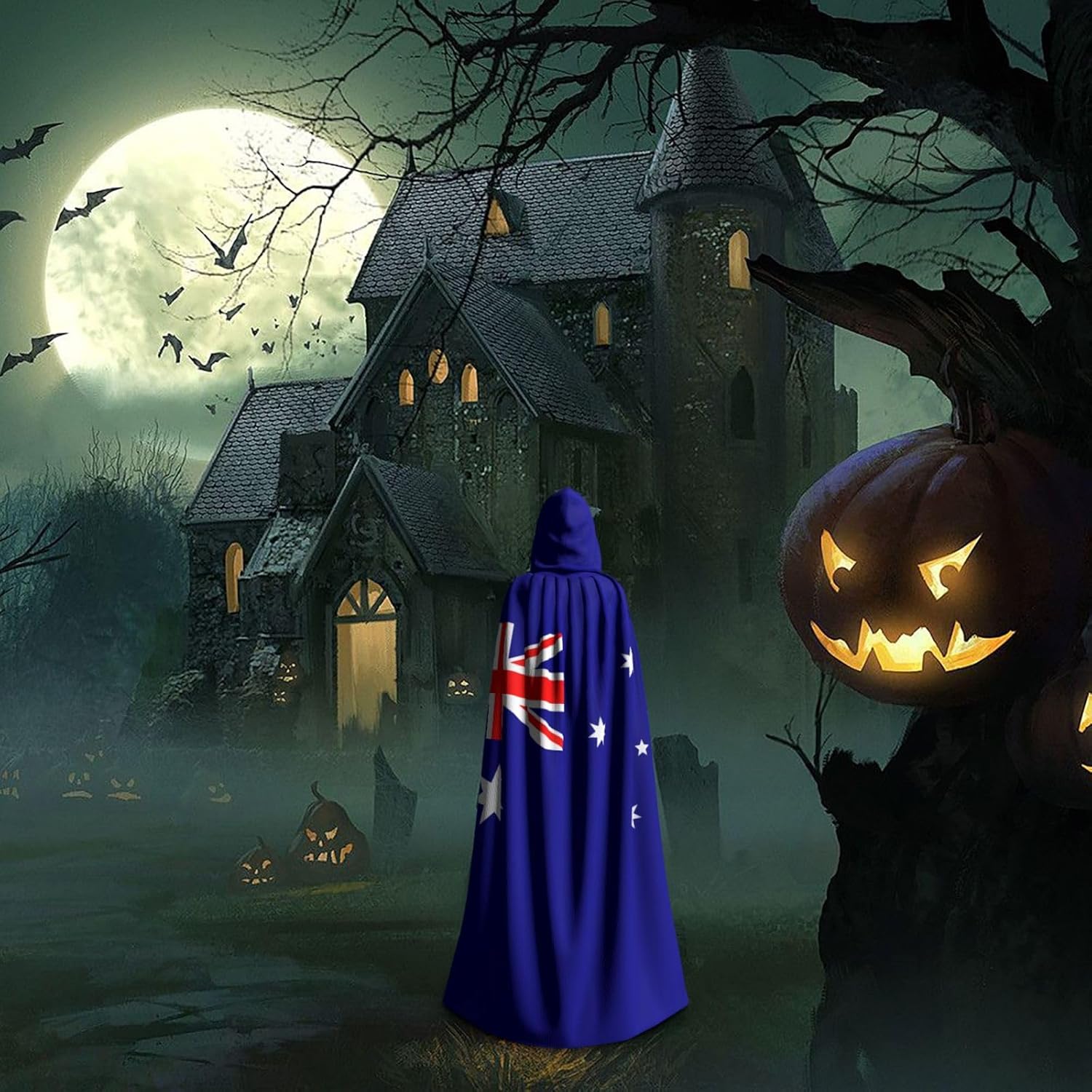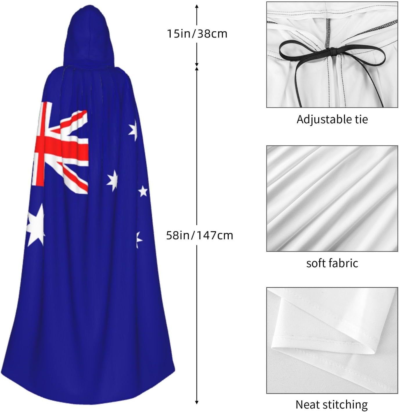 Questo versatile mantello con cappuccio è l'accessorio ideale per feste, Halloween, cosplay e altro ancora. Realizzato in fibra di poliestere di alta qualità, il mantello è comodo e non prurito. Caratterizzato da una stampa a tutta larghezza, aggiunge un tocco unico e intrigante al tuo costume. \r Il mantello è progettato per uso adulto, con un grande cappuccio, un nodo al colletto e senza cerniera, che lo rende comodo e facile da indossare. La sua versatilità lo rende perfetto per una varietà di occasioni, tra cui Halloween, costumi da gioco di ruolo, costumi da palcoscenico, feste in maschera, feste a tema, balli, esposizione di fumetti e altro ancora. Pulire questo mantello è un gioco da ragazzi, grazie al suo tessuto lavabile in lavatrice. Aggiungi questo versatile mantello con cappuccio alla tua collezione di costumi e distinguiti alla tua prossima festa o evento!
