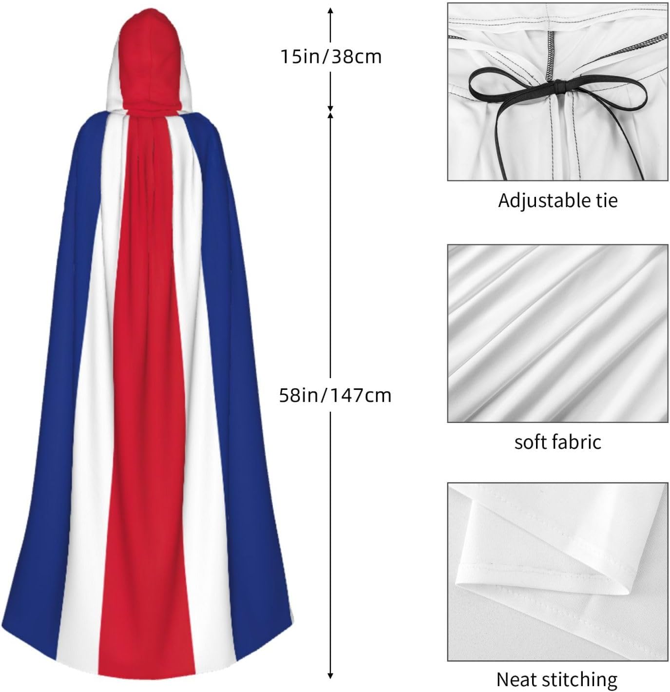 Questo versatile mantello con cappuccio è l'accessorio ideale per feste, Halloween, cosplay e altro ancora. Realizzato in fibra di poliestere di alta qualità, il mantello è comodo e non prurito. Caratterizzato da una stampa a tutta larghezza, aggiunge un tocco unico e intrigante al tuo costume. \r Il mantello è progettato per uso adulto, con un grande cappuccio, un nodo al colletto e senza cerniera, che lo rende comodo e facile da indossare. La sua versatilità lo rende perfetto per una varietà di occasioni, tra cui Halloween, costumi da gioco di ruolo, costumi da palcoscenico, feste in maschera, feste a tema, balli, esposizione di fumetti e altro ancora. Pulire questo mantello è un gioco da ragazzi, grazie al suo tessuto lavabile in lavatrice. Aggiungi questo versatile mantello con cappuccio alla tua collezione di costumi e distinguiti alla tua prossima festa o evento!