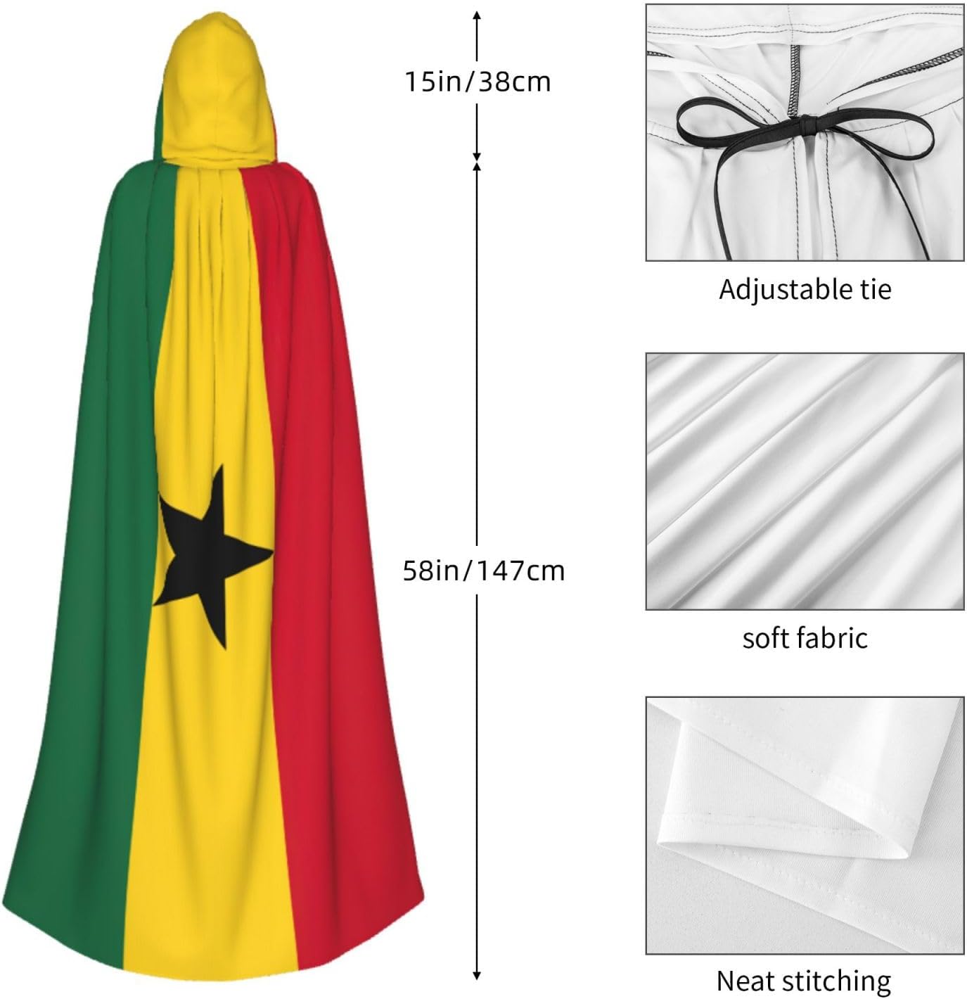 Questo versatile mantello con cappuccio è l'accessorio ideale per feste, Halloween, cosplay e altro ancora. Realizzato in fibra di poliestere di alta qualità, il mantello è comodo e non prurito. Caratterizzato da una stampa a tutta larghezza, aggiunge un tocco unico e intrigante al tuo costume. \r Il mantello è progettato per uso adulto, con un grande cappuccio, un nodo al colletto e senza cerniera, che lo rende comodo e facile da indossare. La sua versatilità lo rende perfetto per una varietà di occasioni, tra cui Halloween, costumi da gioco di ruolo, costumi da palcoscenico, feste in maschera, feste a tema, balli, esposizione di fumetti e altro ancora. Pulire questo mantello è un gioco da ragazzi, grazie al suo tessuto lavabile in lavatrice. Aggiungi questo versatile mantello con cappuccio alla tua collezione di costumi e distinguiti alla tua prossima festa o evento!