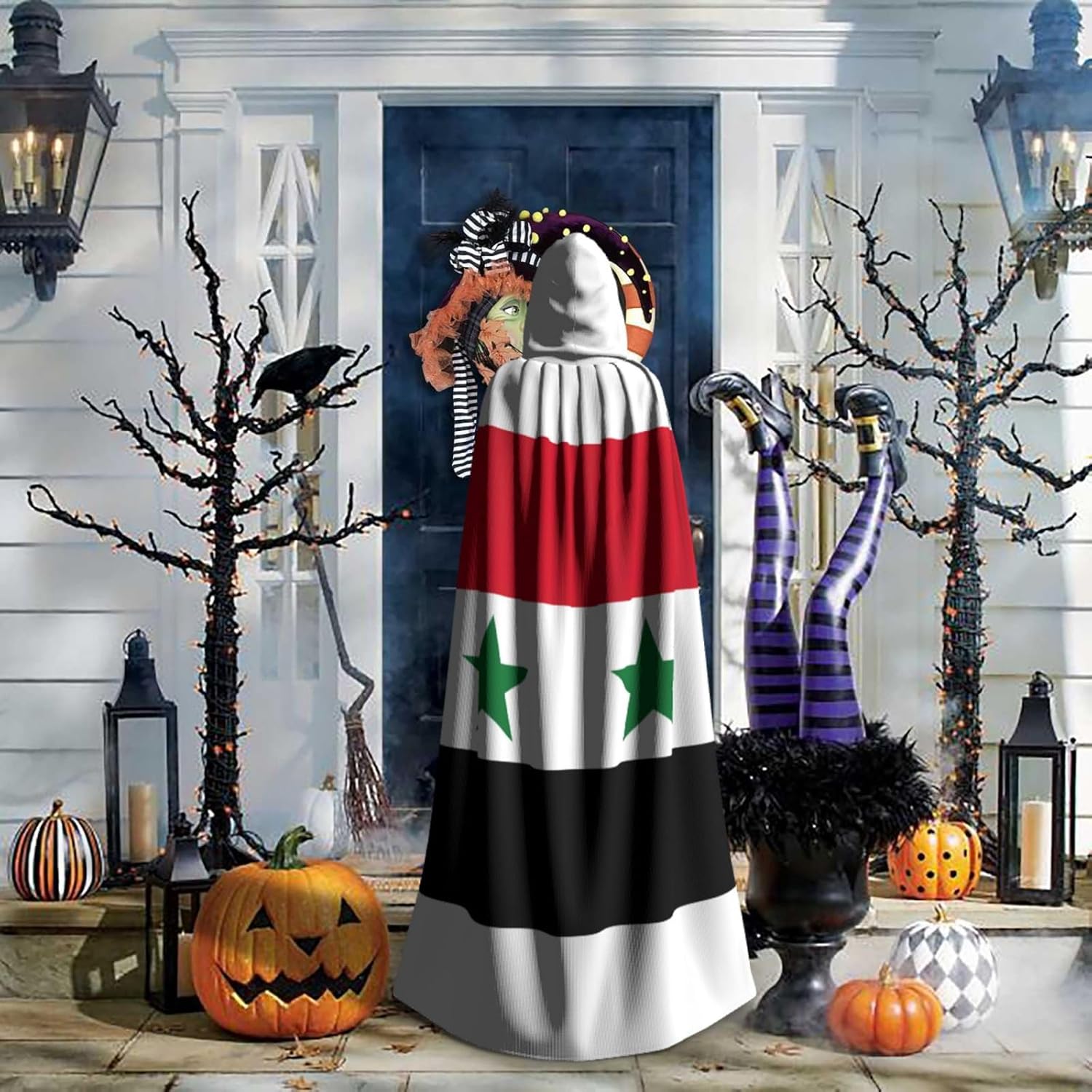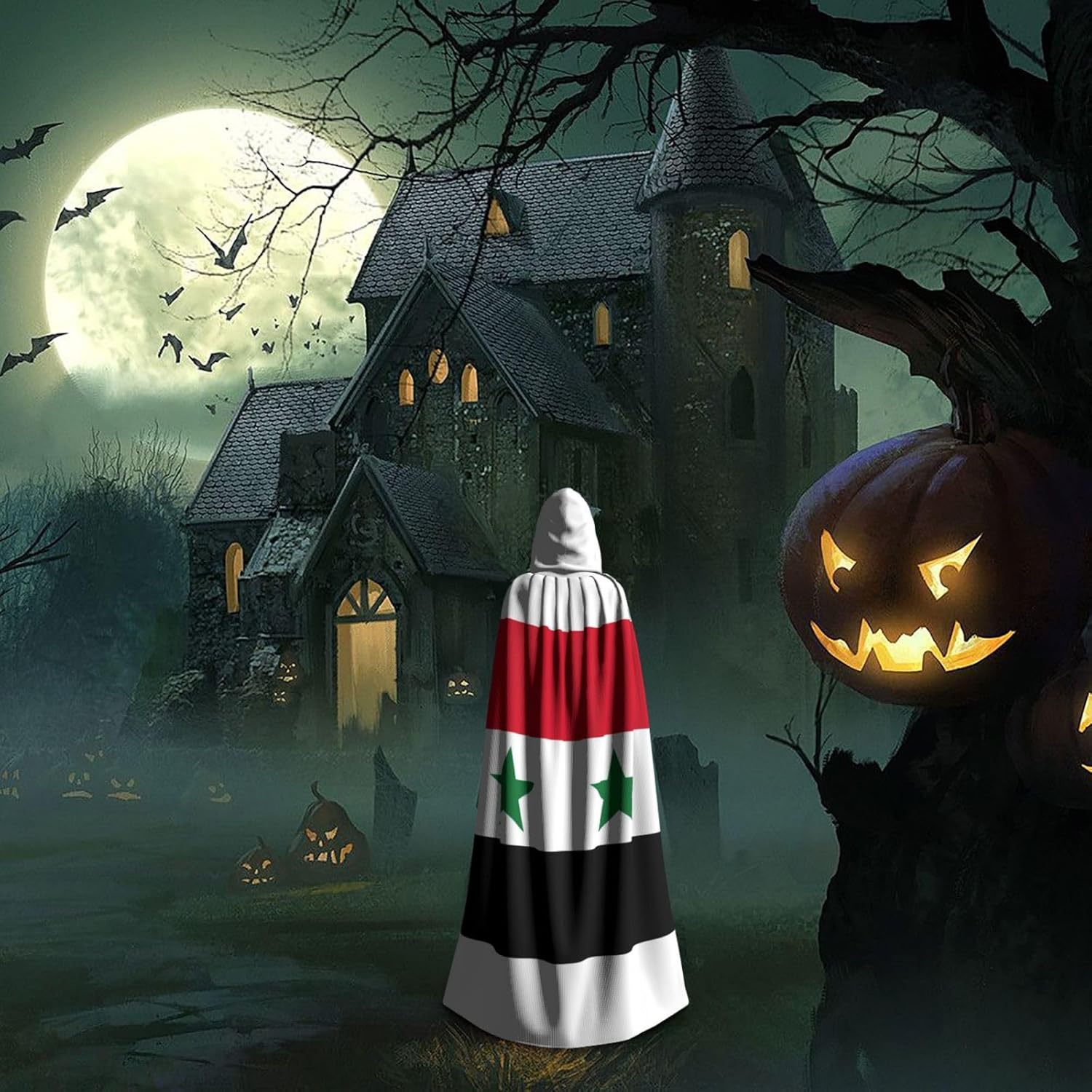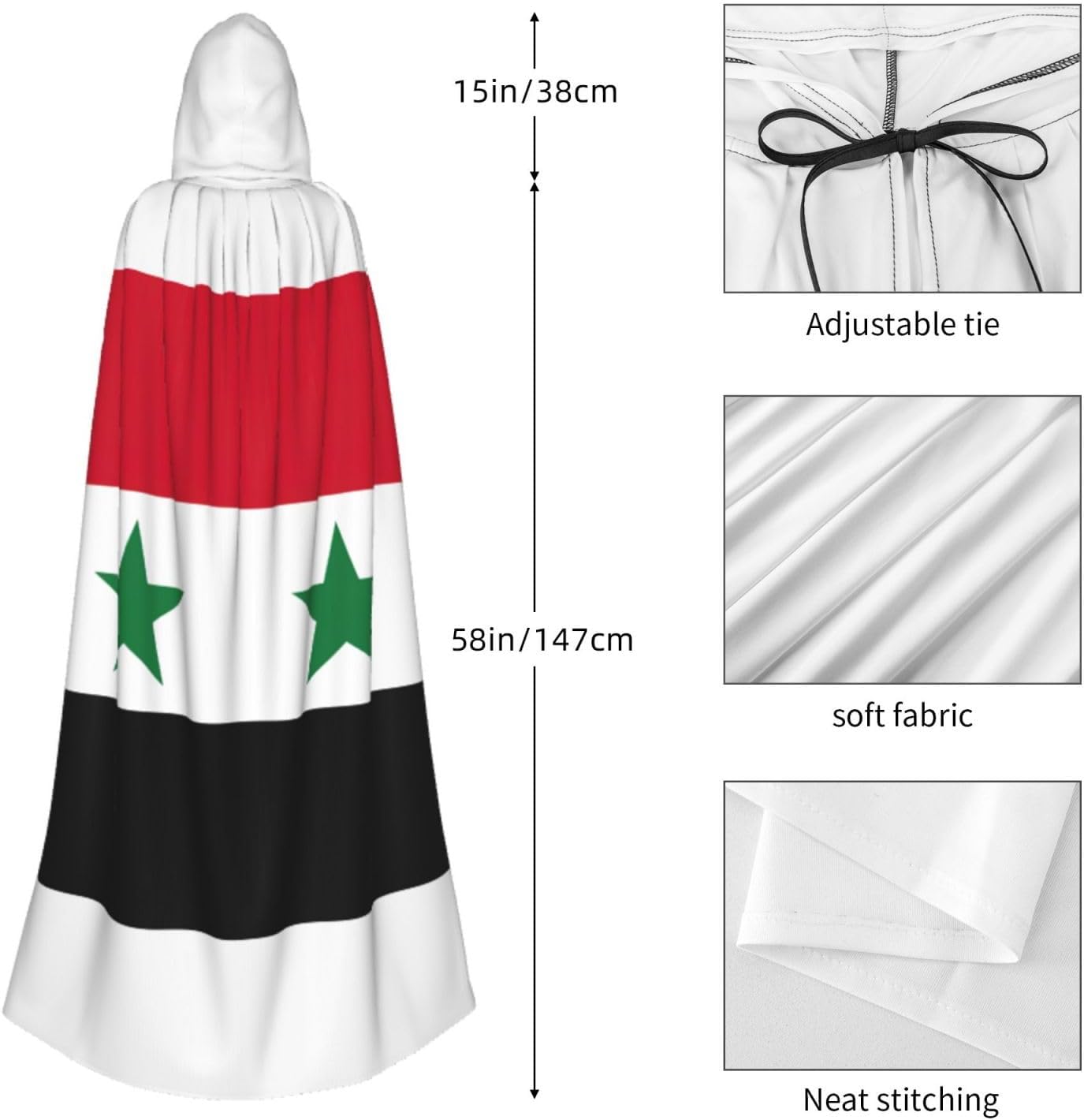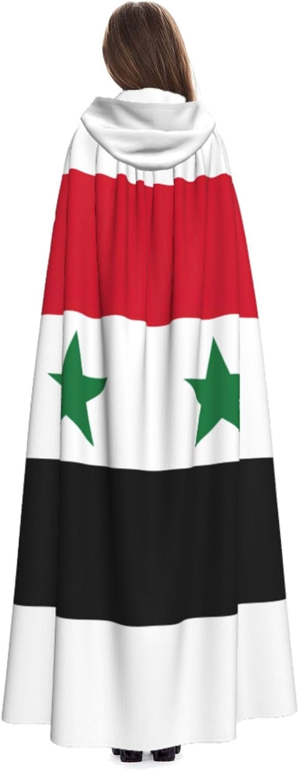 Realizzato in poliestere, questo mantello con stampa bandiera della Repubblica Araba Siriana con cappuccio garantisce longevità e comfort. Le sue dimensioni ottimali assicurano una copertura completa per tutte le età, facendoti risaltare in qualsiasi evento. Che tu sia diretto per Halloween, un evento cosplay, un costume da palcoscenico, una festa in maschera, una festa a tema, un ballo o una convention di fumetti, questo mantello è una scelta ideale. Il suo design unico, completo di un grande cappuccio e cravatte collare. Inoltre, puoi dire addio ai metodi di pulizia complicati. Questo mantello con cappuccio con stampa bandiera della Repubblica Araba Siriana è lavabile in lavatrice e a mano, offrendo una cura senza sforzo. Esci con stile e comfort con il nostro mantello con cappuccio, il tuo compagno per tutti gli eventi e le occasioni.