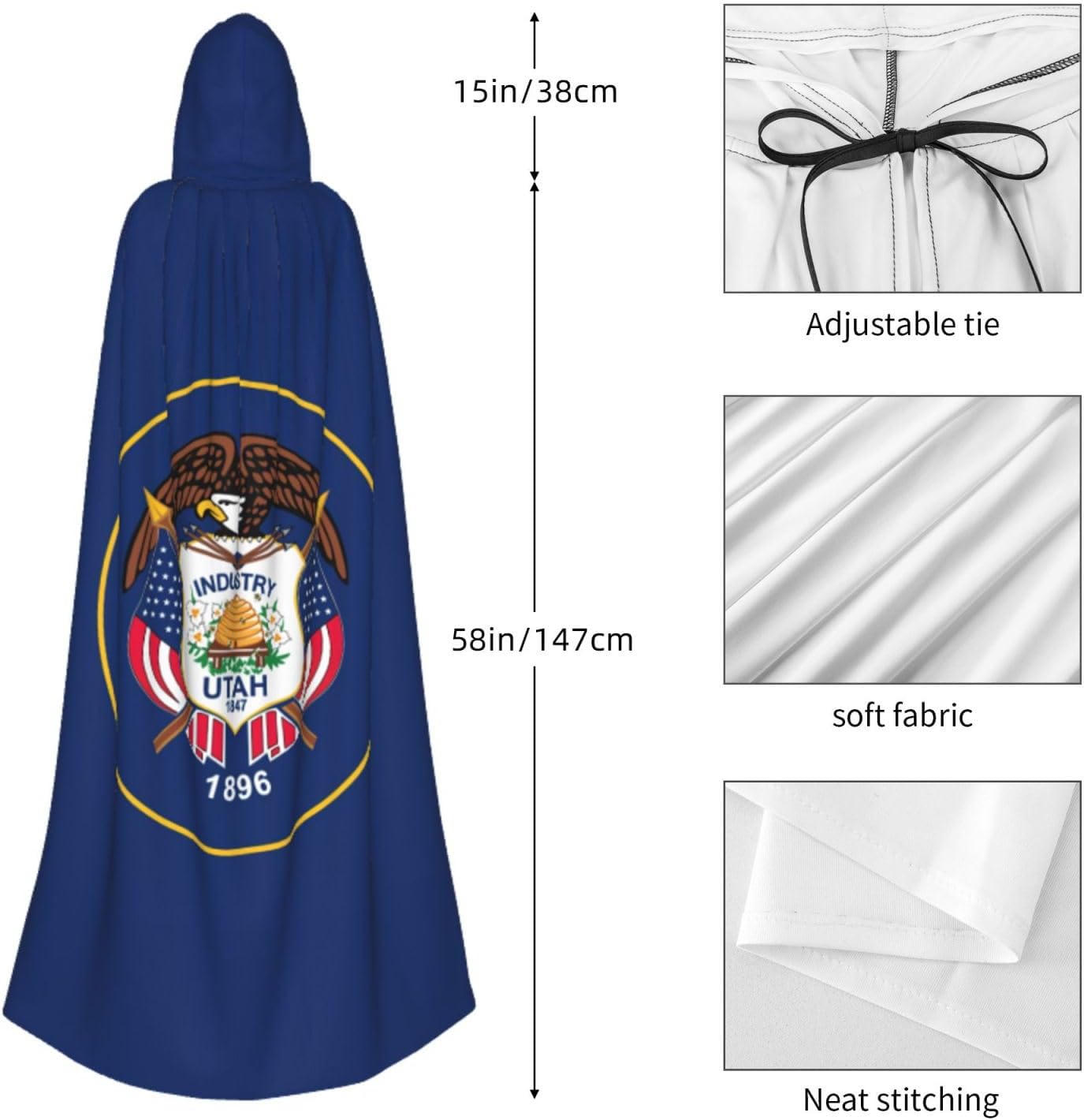 Realizzato in poliestere, questo mantello con stampa bandiera dello Utah con cappuccio garantisce longevità e comfort. Le sue dimensioni ottimali assicurano una copertura completa per tutte le età, facendoti risaltare in qualsiasi evento. Che tu sia diretto per Halloween, un evento cosplay, un costume da palcoscenico, una festa in maschera, una festa a tema, un ballo o una convention di fumetti, questo mantello è una scelta ideale. Il suo design unico, completo di un grande cappuccio e cravatte collare. Inoltre, puoi dire addio ai metodi di pulizia complicati. Questo mantello con cappuccio con stampa bandiera dello Utah è lavabile in lavatrice e a mano, offrendo una cura senza sforzo. Esci con stile e comfort con il nostro mantello con cappuccio, il tuo compagno per tutti gli eventi e le occasioni.