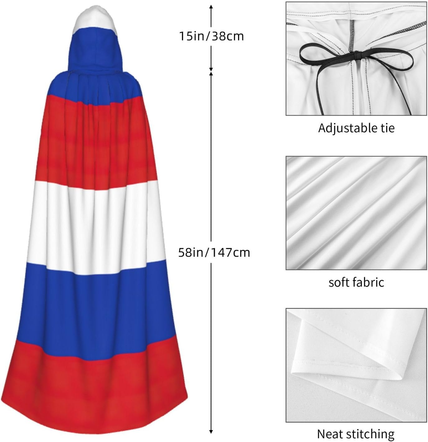 Realizzato in poliestere, questo mantello con stampa bandiera russa con cappuccio garantisce longevità e comfort. Le sue dimensioni ottimali assicurano una copertura completa per tutte le età, facendoti risaltare in qualsiasi evento. Che tu sia diretto per Halloween, un evento cosplay, un costume da palcoscenico, una festa in maschera, una festa a tema, un ballo o una convention di fumetti, questo mantello è una scelta ideale. Il suo design unico, completo di un grande cappuccio e cravatte collare. Inoltre, puoi dire addio ai metodi di pulizia complicati. Questo mantello con cappuccio con stampa bandiera russa è lavabile in lavatrice e a mano, offrendo una cura senza sforzo. Esci con stile e comfort con il nostro mantello con cappuccio, il tuo compagno per tutti gli eventi e le occasioni.