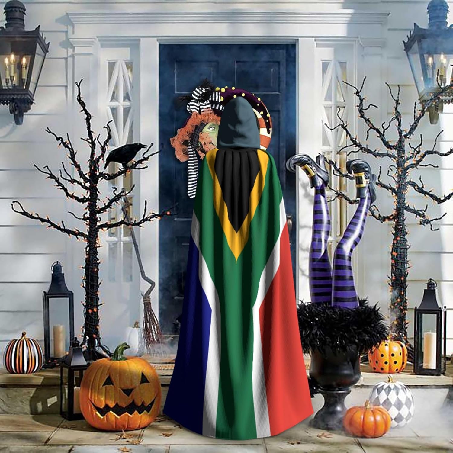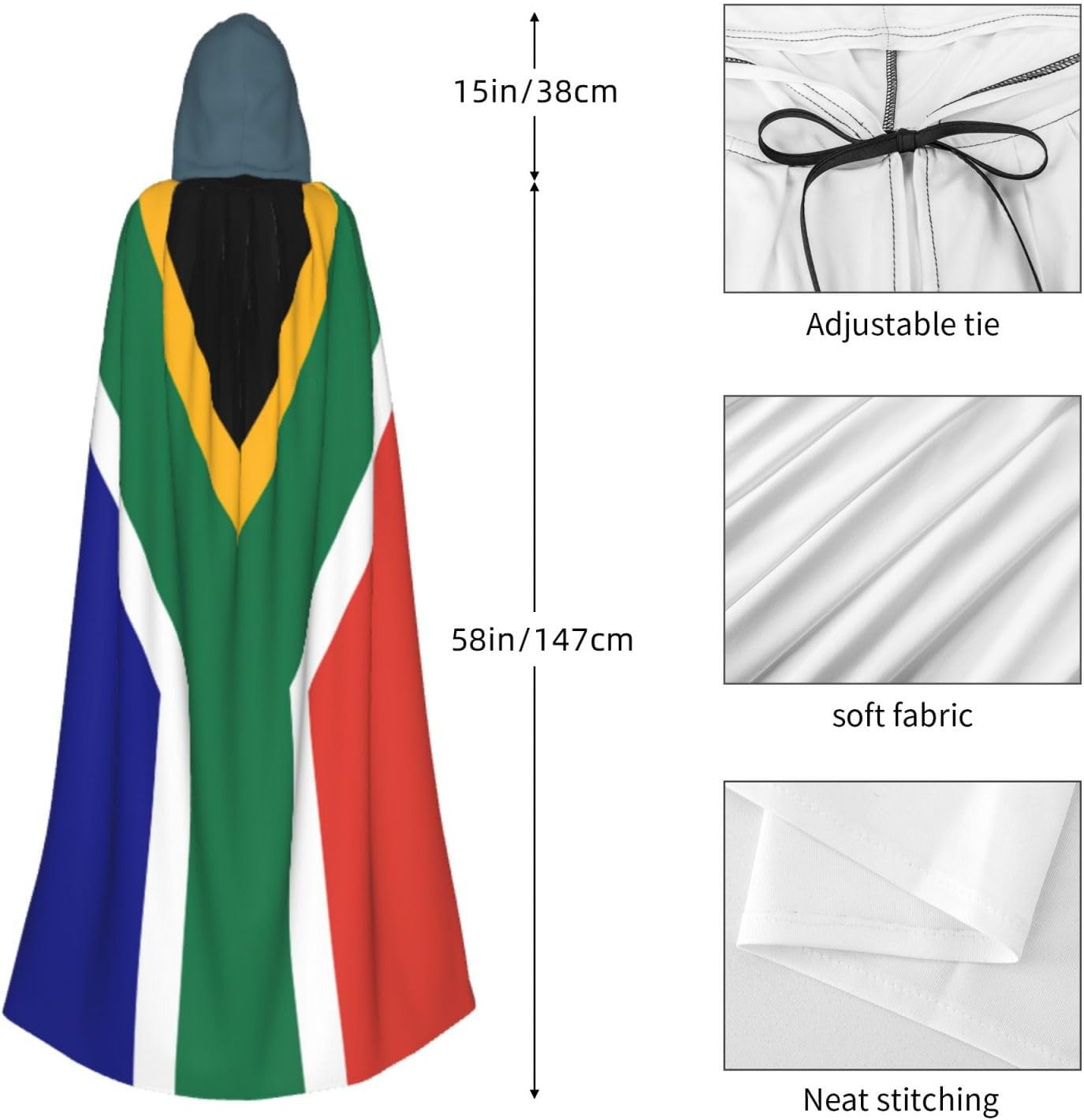 Realizzato in poliestere, questo mantello con stampa bandiera sudafricana con cappuccio garantisce longevità e comfort. Le sue dimensioni ottimali assicurano una copertura completa per tutte le età, facendoti risaltare in qualsiasi evento. Che tu sia diretto per Halloween, un evento cosplay, un costume da palcoscenico, una festa in maschera, una festa a tema, un ballo o una convention di fumetti, questo mantello è una scelta ideale. Il suo design unico, completo di un grande cappuccio e cravatte collare. Inoltre, puoi dire addio ai metodi di pulizia complicati. Questo mantello con cappuccio con stampa bandiera sudafricana è lavabile in lavatrice e a mano, offrendo una cura senza sforzo. Esci con stile e comfort con il nostro mantello con cappuccio, il tuo compagno per tutti gli eventi e le occasioni.