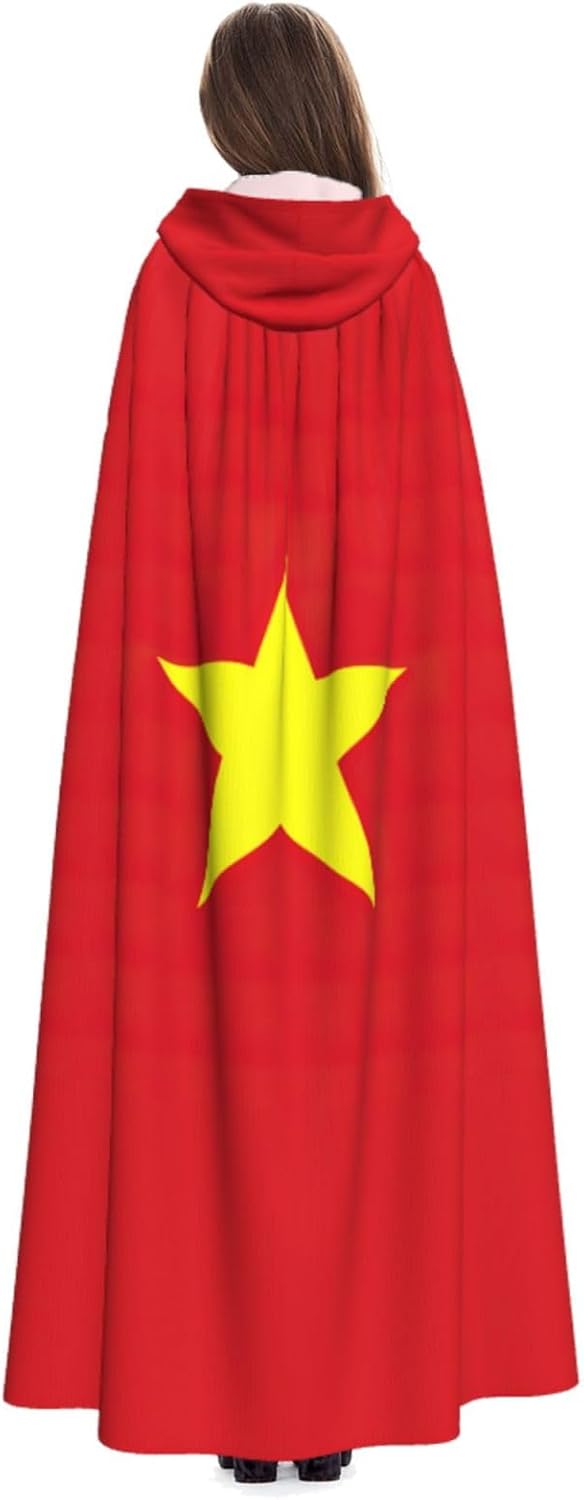 Realizzato in poliestere, questo mantello con stampa bandiera vietnamita con cappuccio garantisce longevità e comfort. Le sue dimensioni ottimali assicurano una copertura completa per tutte le età, facendoti risaltare in qualsiasi evento. Che tu sia diretto per Halloween, un evento cosplay, un costume da palcoscenico, una festa in maschera, una festa a tema, un ballo o una convention di fumetti, questo mantello è una scelta ideale. Il suo design unico, completo di un grande cappuccio e cravatte collare. Inoltre, puoi dire addio ai metodi di pulizia complicati. Questo mantello con cappuccio con stampa bandiera vietnamita è lavabile in lavatrice e a mano, offrendo una cura senza sforzo. Esci con stile e comfort con il nostro mantello con cappuccio, il tuo compagno per tutti gli eventi e le occasioni.