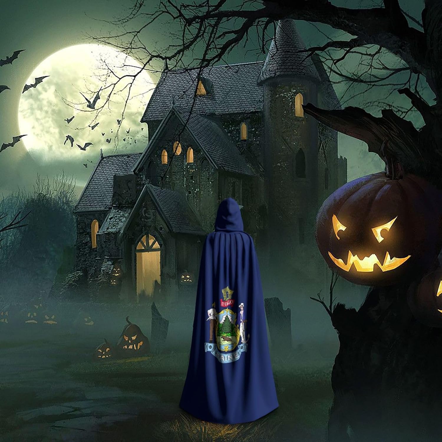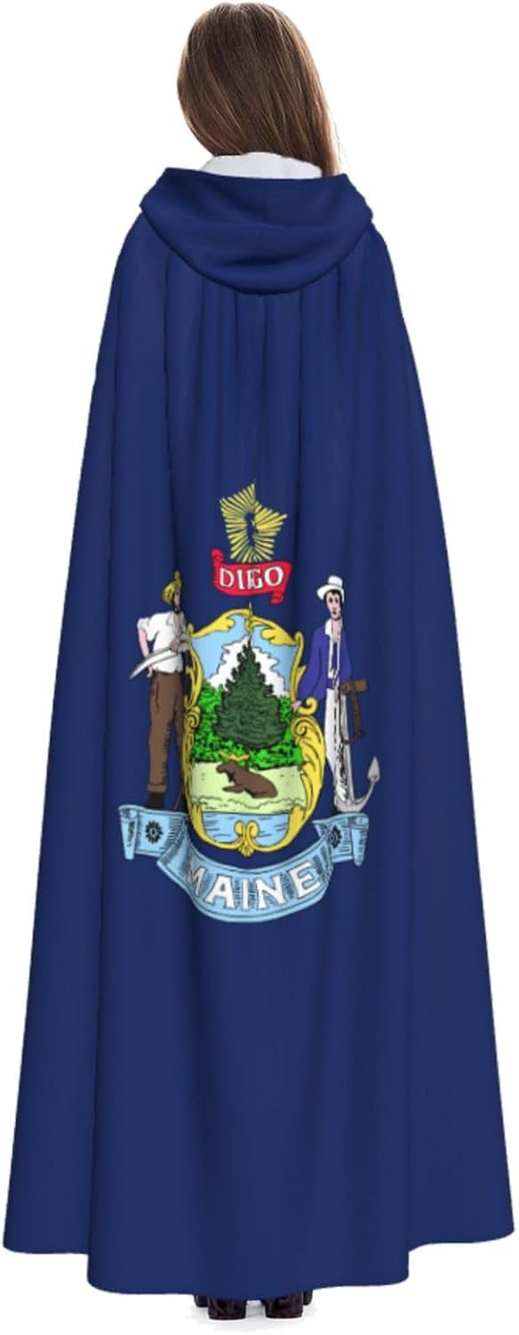 Realizzato in poliestere, questo mantello con stampa bandiera del Maine con cappuccio garantisce longevità e comfort. Le sue dimensioni ottimali assicurano una copertura completa per tutte le età, facendoti risaltare in qualsiasi evento. Che tu sia diretto per Halloween, un evento cosplay, un costume da palcoscenico, una festa in maschera, una festa a tema, un ballo o una convention di fumetti, questo mantello è una scelta ideale. Il suo design unico, completo di un grande cappuccio e cravatte collare. Inoltre, puoi dire addio ai metodi di pulizia complicati. Questo mantello con cappuccio con stampa della bandiera del Maine è lavabile in lavatrice e a mano, offrendo una cura senza sforzo. Esci con stile e comfort con il nostro mantello con cappuccio, il tuo compagno per tutti gli eventi e le occasioni.