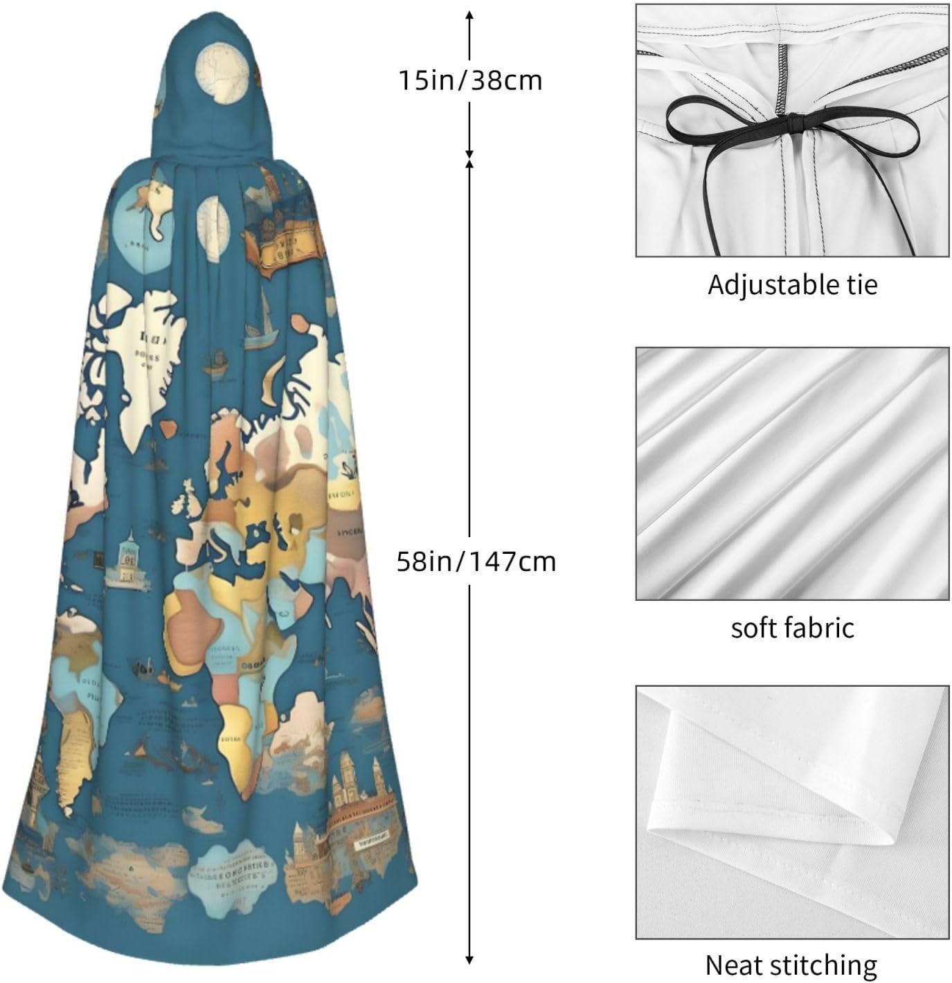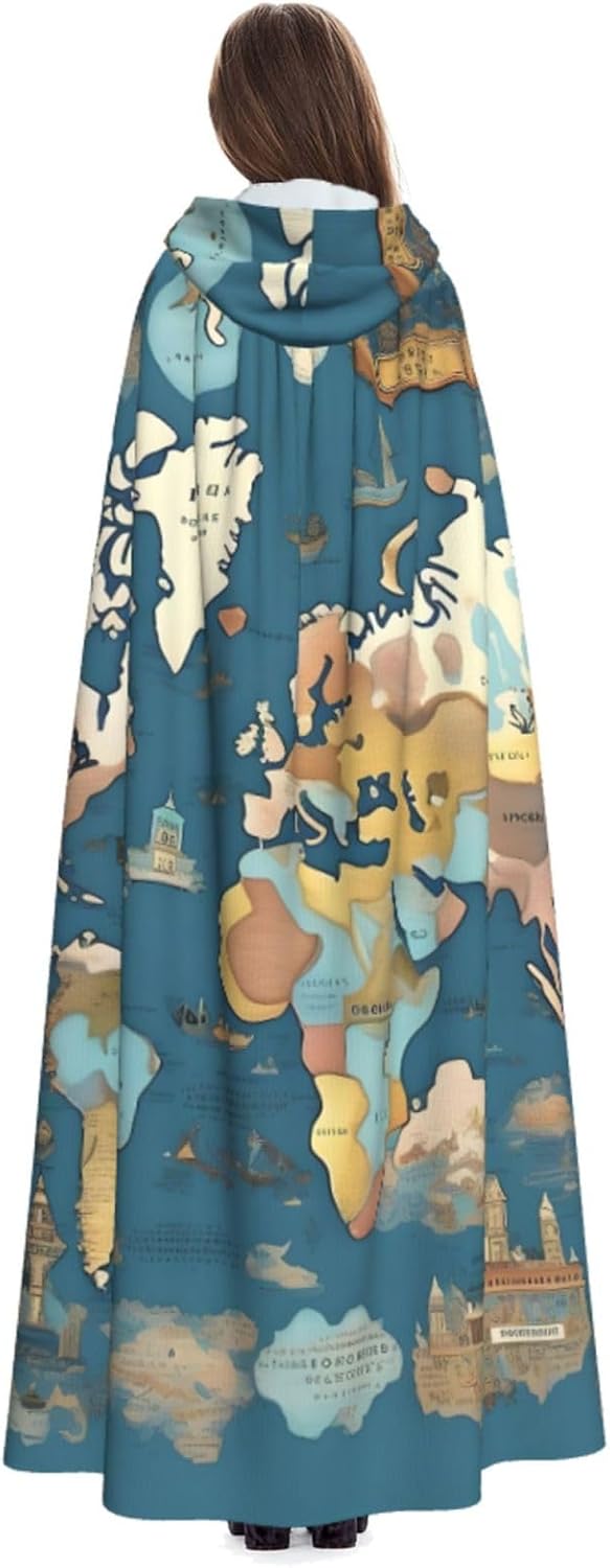 Realizzato in poliestere, questo mantello con stampa di mappa del mondo con cappuccio garantisce longevità e comfort. Le sue dimensioni ottimali assicurano una copertura completa per tutte le età, facendoti risaltare in qualsiasi evento. Che tu sia diretto per Halloween, un evento cosplay, un costume da palcoscenico, una festa in maschera, una festa a tema, un ballo o una convention di fumetti, questo mantello è una scelta ideale. Il suo design unico, completo di un grande cappuccio e cravatte collare. Inoltre, puoi dire addio ai metodi di pulizia complicati. Questo mantello con cappuccio con stampa con mappa del mondo è lavabile in lavatrice e a mano, offrendo una cura senza sforzo. Esci con stile e comfort con il nostro mantello con cappuccio, il tuo compagno per tutti gli eventi e le occasioni.