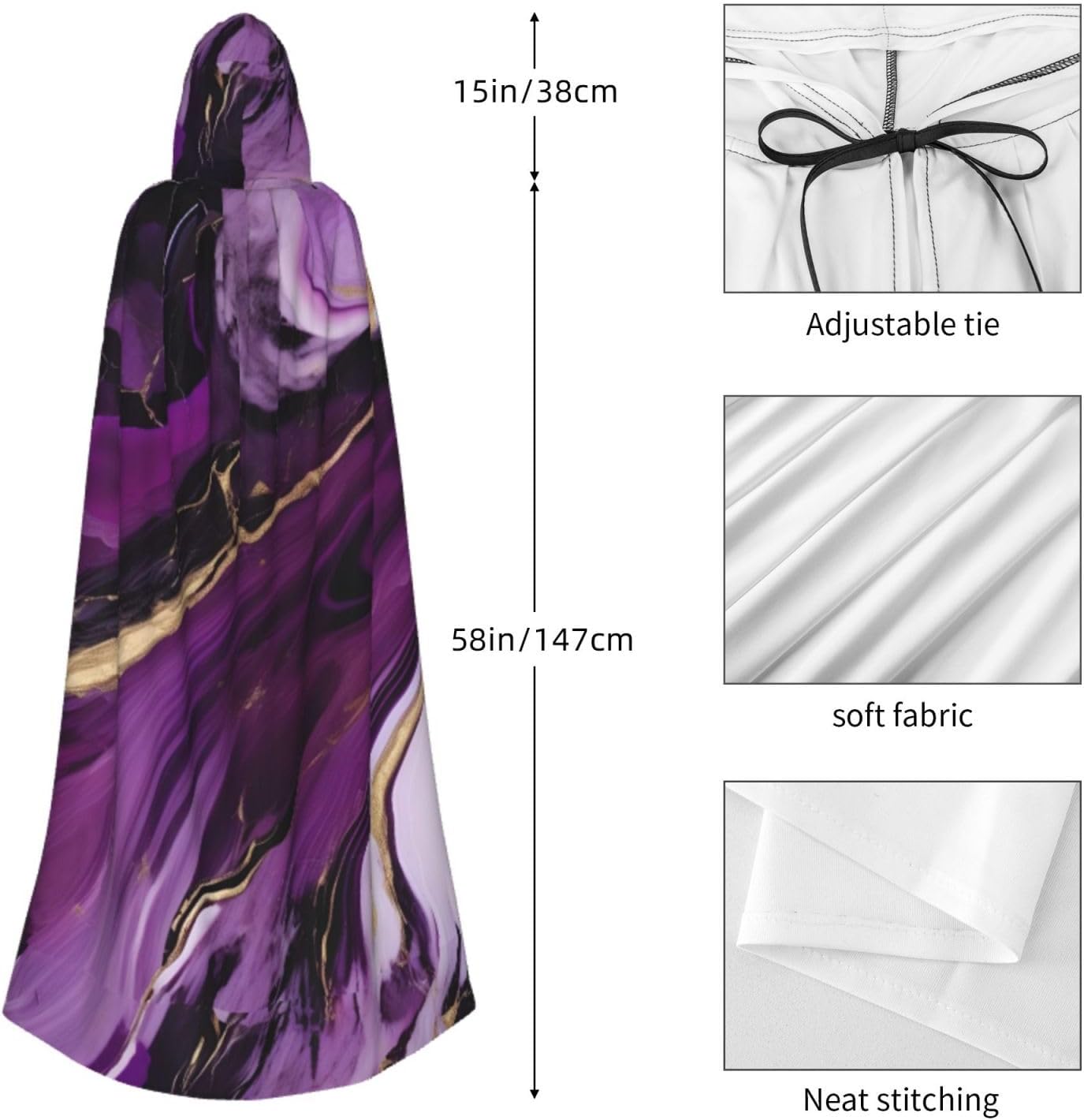 Mantello con cappuccio viola scuro in marmo con 1 stampa Halloween per adulti elegante mantello per carnevale feste a tema cosplay
