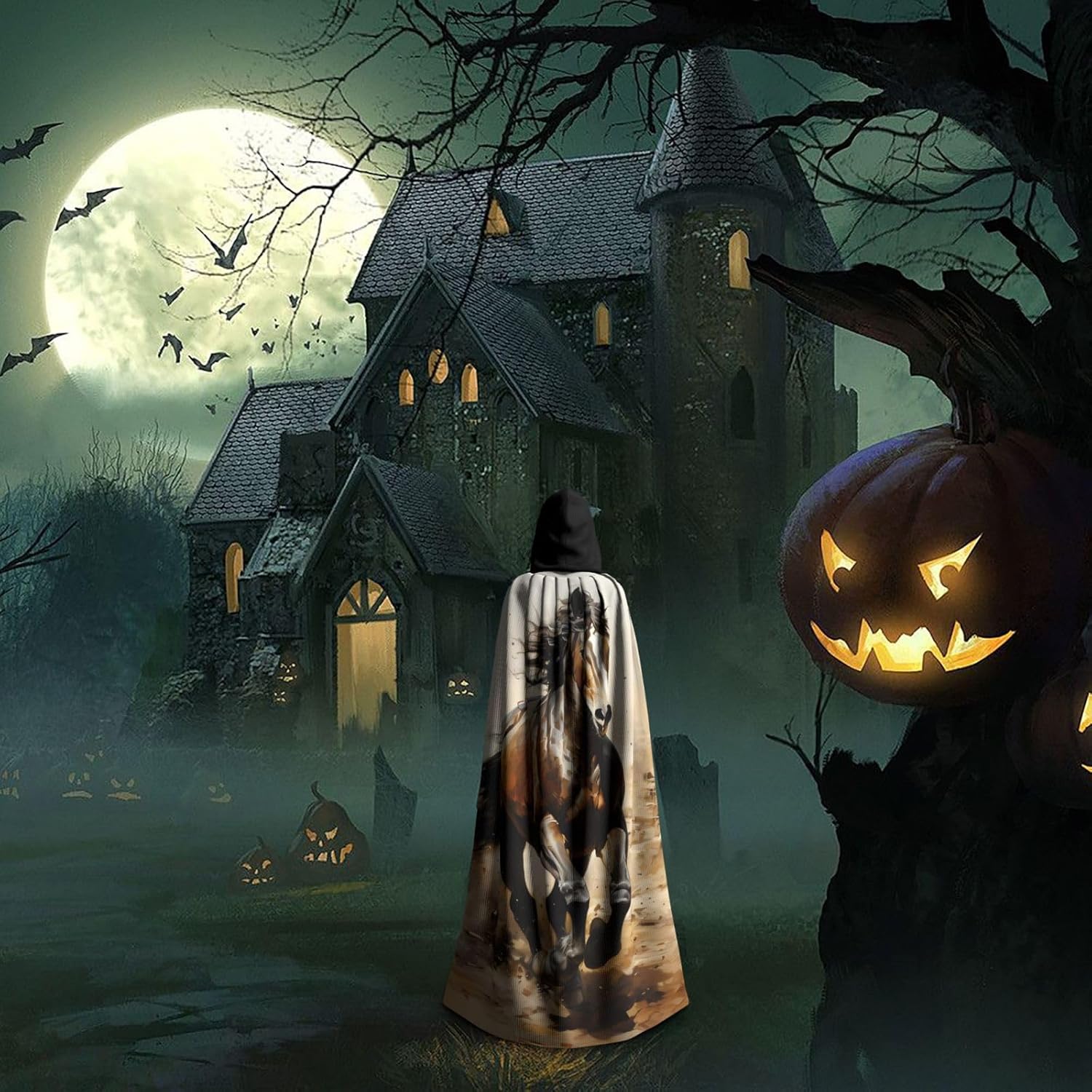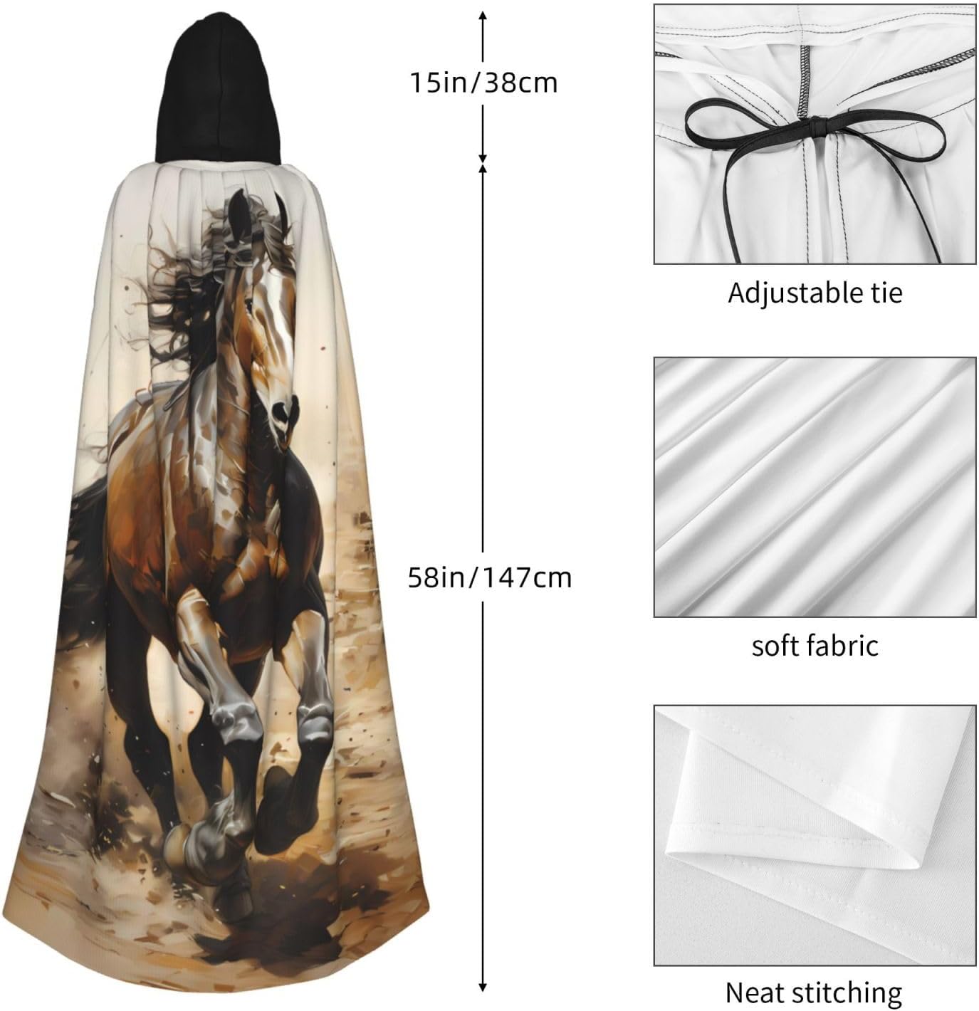 Stampa di larghezza del mantello con cappuccio del cavallo occidentale \r Descrizione del materiale: 100% fibra di poliestere (poliestere). \r Prestazioni del prodotto: il mantello con cappuccio oversize è realizzato in tessuto lungo, resistente e non pruriginoso, senza cravatta, senza cerniera, comodo mantello con cappuccio e tessuto lungo, resistente e non prurito) \r Scenari applicabili adatti per Halloween, costumi cosplay, costumi da palco, feste in maschera, feste a tema, balli, convegni di fumetti, ecc. Può essere utilizzato per feste, carnevale, Halloween, feste in costume, ecc. \r Istruzioni di lavaggio: lavabile in lavatrice a mano, facile da pulire e durevole