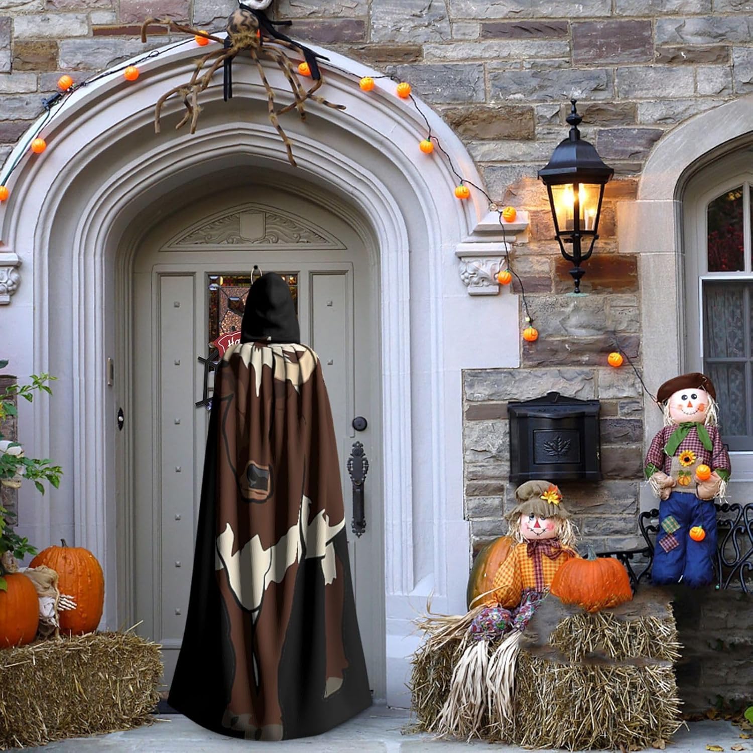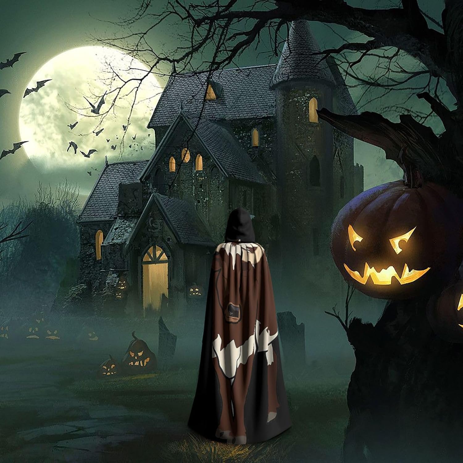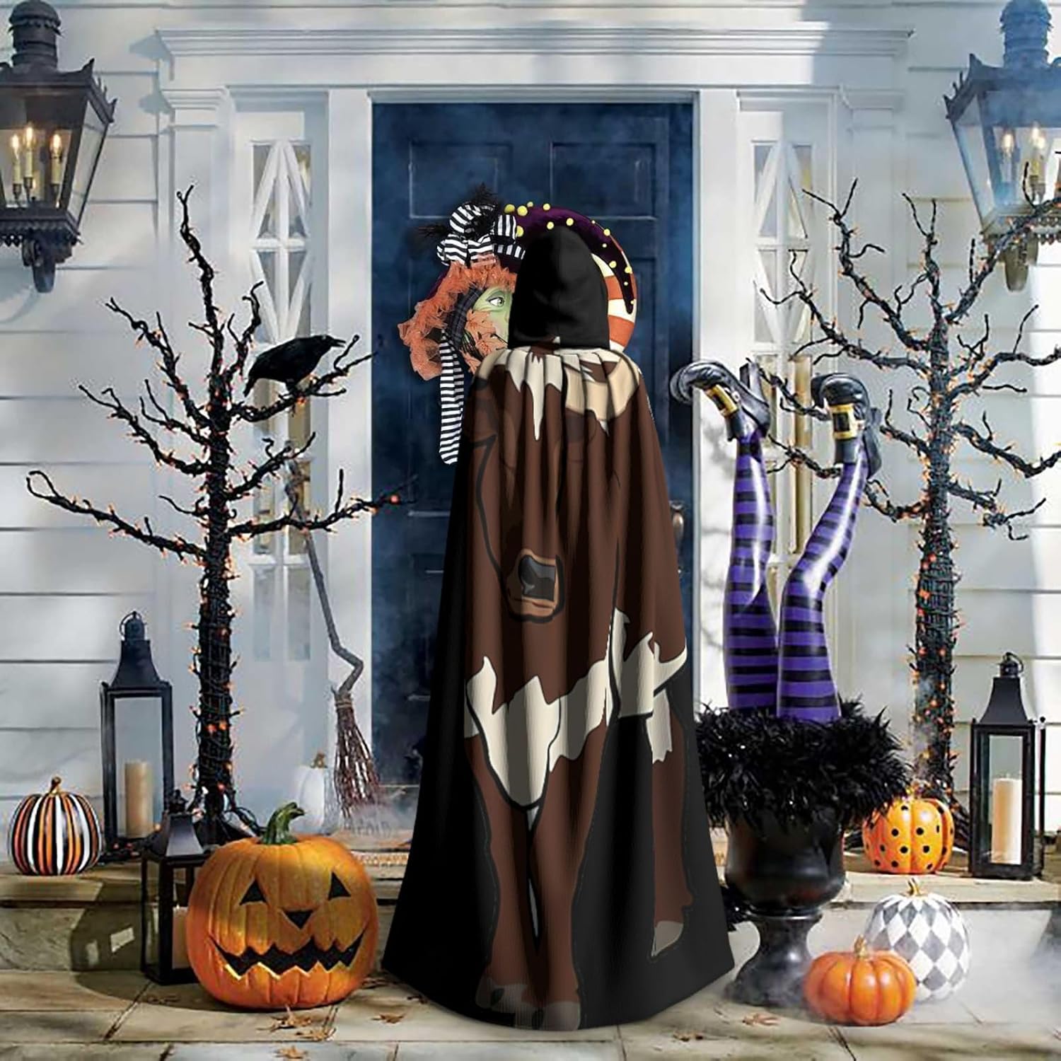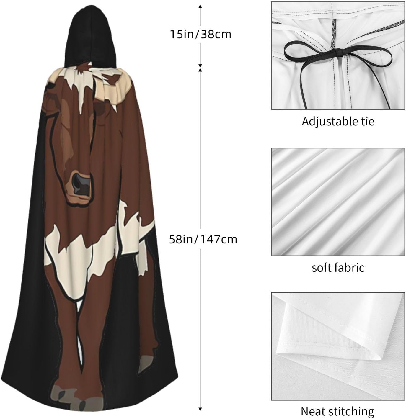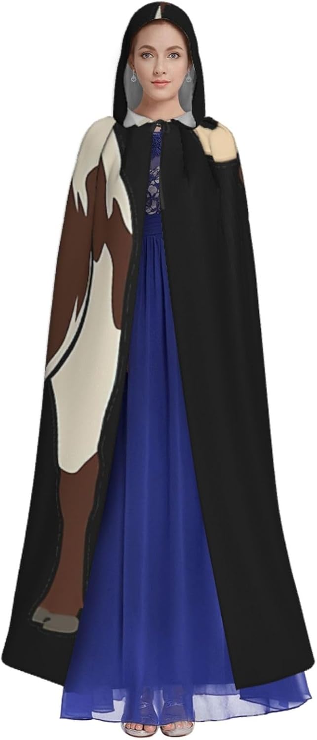 Mantello da mucca con cappuccio, mantello medievale per Halloween, mantello da mago, mantello nero, costume da strega per adulti