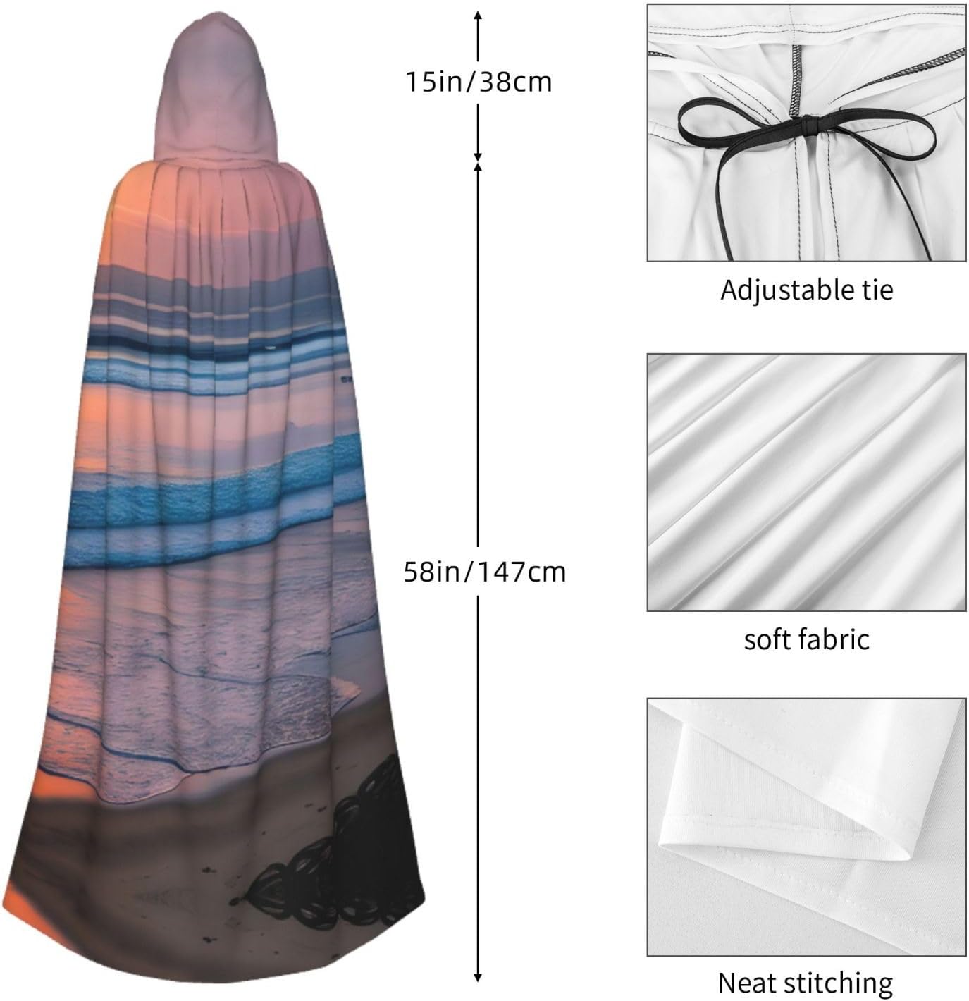 Mantello da spiaggia con cappuccio, unisex, per Halloween, Natale, vampiro, stregone, costume cosplay