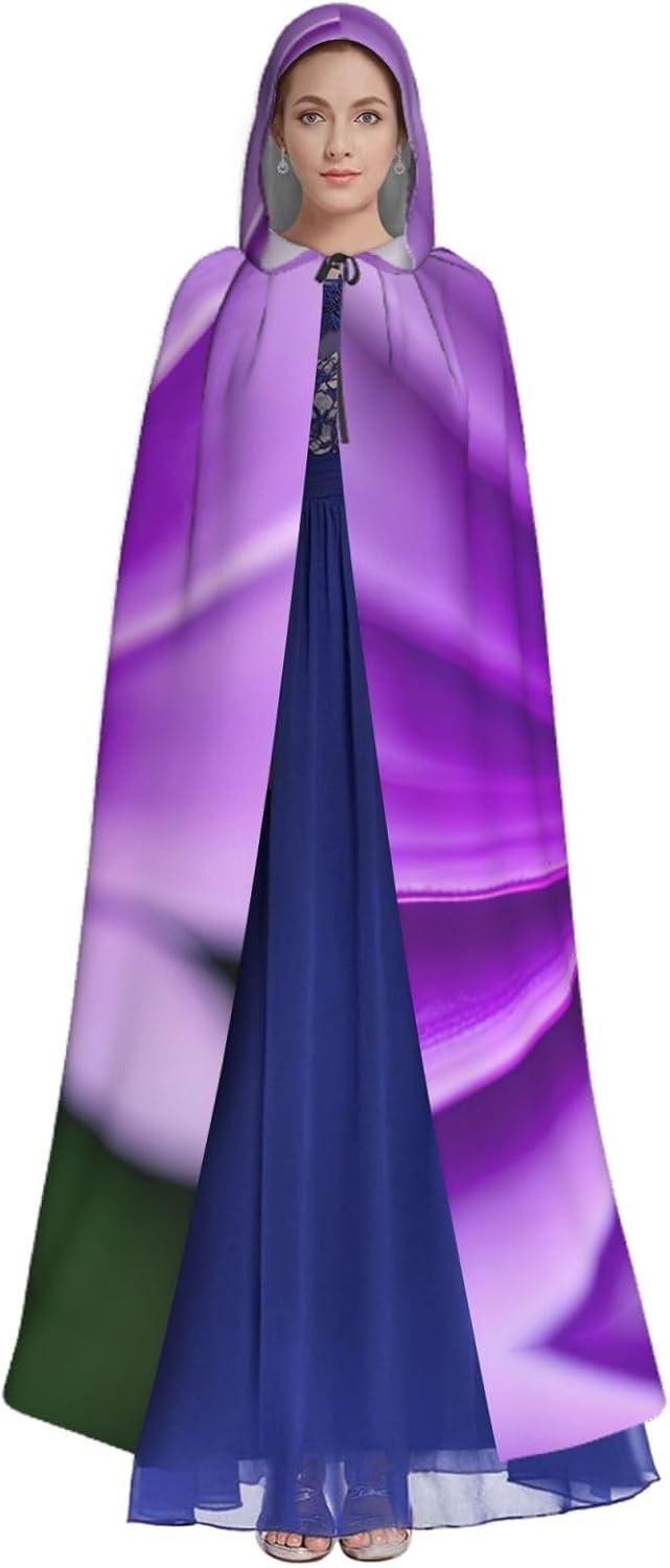 Mantello da strega con 1 accappatoio viola con cappuccio, mantello medievale per Halloween, mantello da mago, mantello nero, costume da strega per adulti