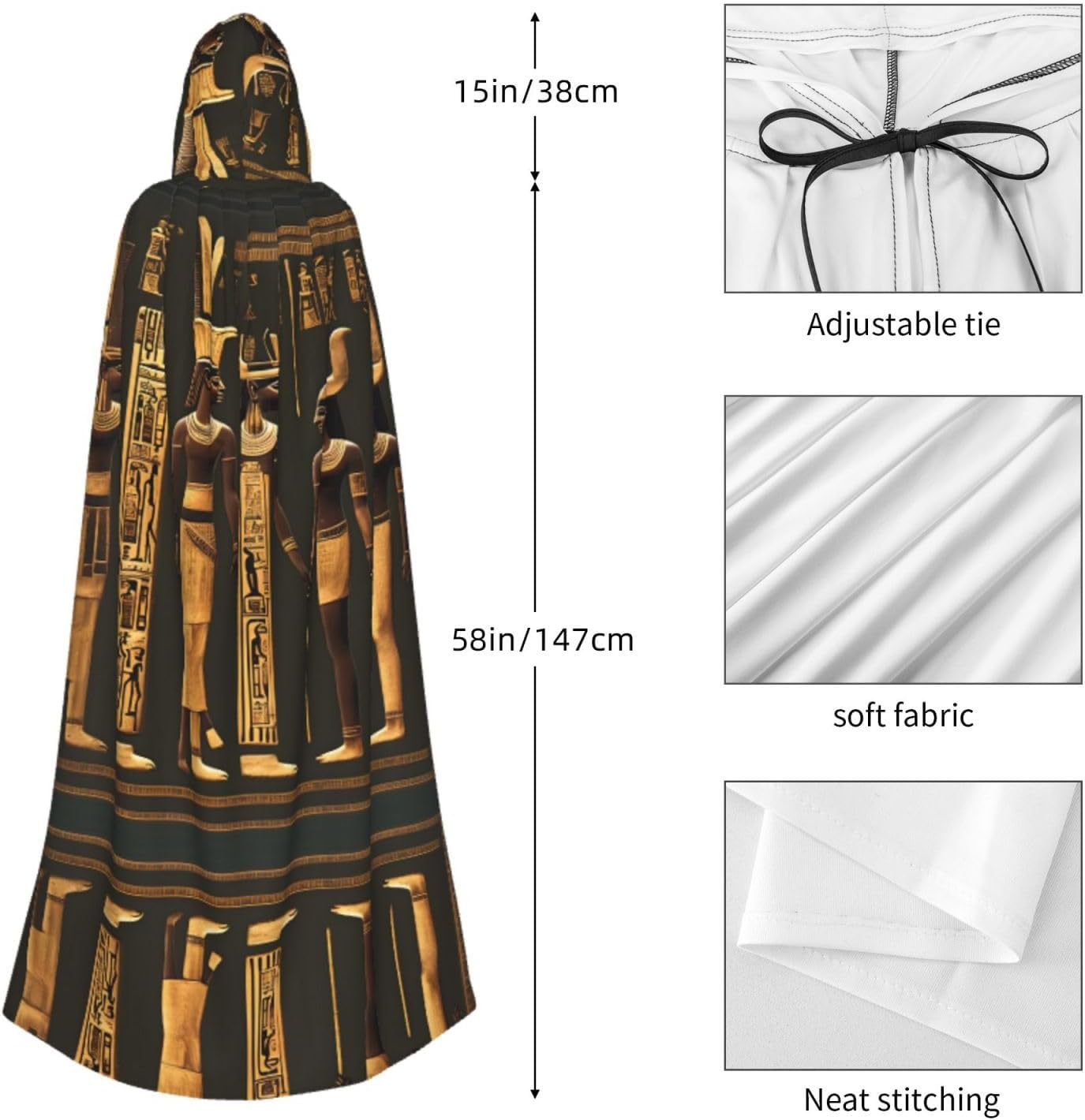 Scatena la tua mistica interiore: questo Halloween, abbraccia il mistero dell'era medievale con il nostro design a metà mantello con stampa di geroglifici egizi antichi, fornendo ampio spazio per stratificazione e versatilità. È l'accessorio perfetto per tutte le occasioni di Halloween. Versatilità al suo meglio: il nostro versatile mantello medievale con cappuccio è ideale per ogni occasione, tra cui feste rinascimentali e rock, eventi cosplay, feste in maschera, riunioni steampunk e persino matrimoni. Aggiungi un tocco di lusso a qualsiasi outfit con questo splendido pezzo. Mantello casual da uomo con cappuccio, perfetto per tempo libero, costumi, spettacoli teatrali, hip hop, feste, abbigliamento casual da strada, campeggio e pesca, San Valentino, anniversario, Halloween, Natale o vita quotidiana, ti rende moderno ed elegante tra la folla. La grande scelta regalo: questo mantello per adulti con cappuccio è perfetto per qualsiasi Con una varietà di colori vivaci tra cui scegliere, i nostri mantelli sono ottimi regali o costumi per i tuoi amici e famiglie! Che tu stia giocando di ruolo con il tuo amico per una festa a tema o semplicemente ti godi eventi di Halloween con le famiglie, assicurati di farlo con stile con il nostro mantello! Accogliamo con favore l'ordine all'ingrosso aziendale, se avete domande, non esitate a contattarci e forniremo una soluzione entro un giorno.