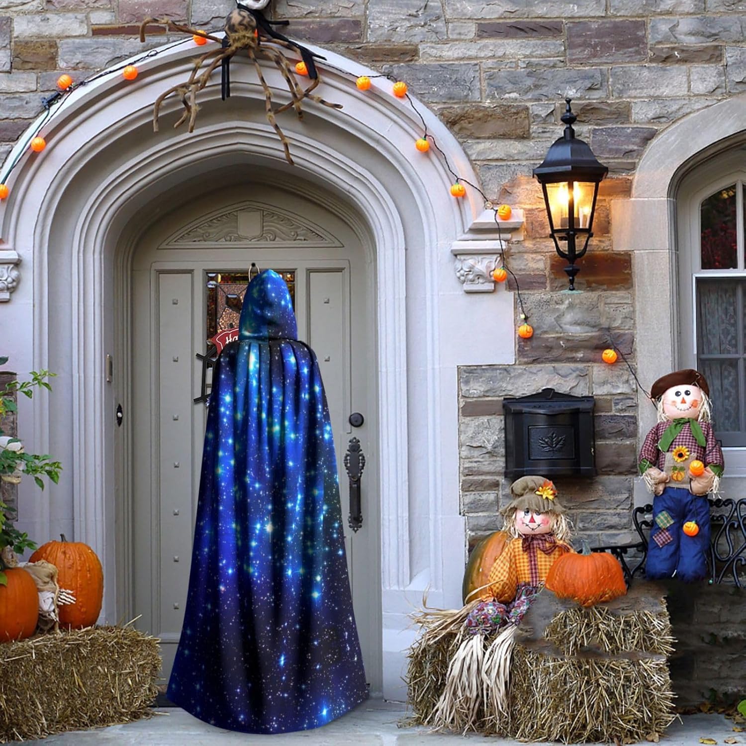 Questo mantello con cappuccio blu con stelle brillanti presenta un mantello oversize con un papillon, senza cerniera, ed è comodo con un tessuto lungo, resistente e non prurito. Adatto per Halloween, costumi da gioco di ruolo, costumi da palcoscenico, balli in maschera, feste a tema, balli, mostre di fumetti, ecc. Può essere utilizzato per raduni, carnevale, Halloween, feste in costume e molto altro ancora.