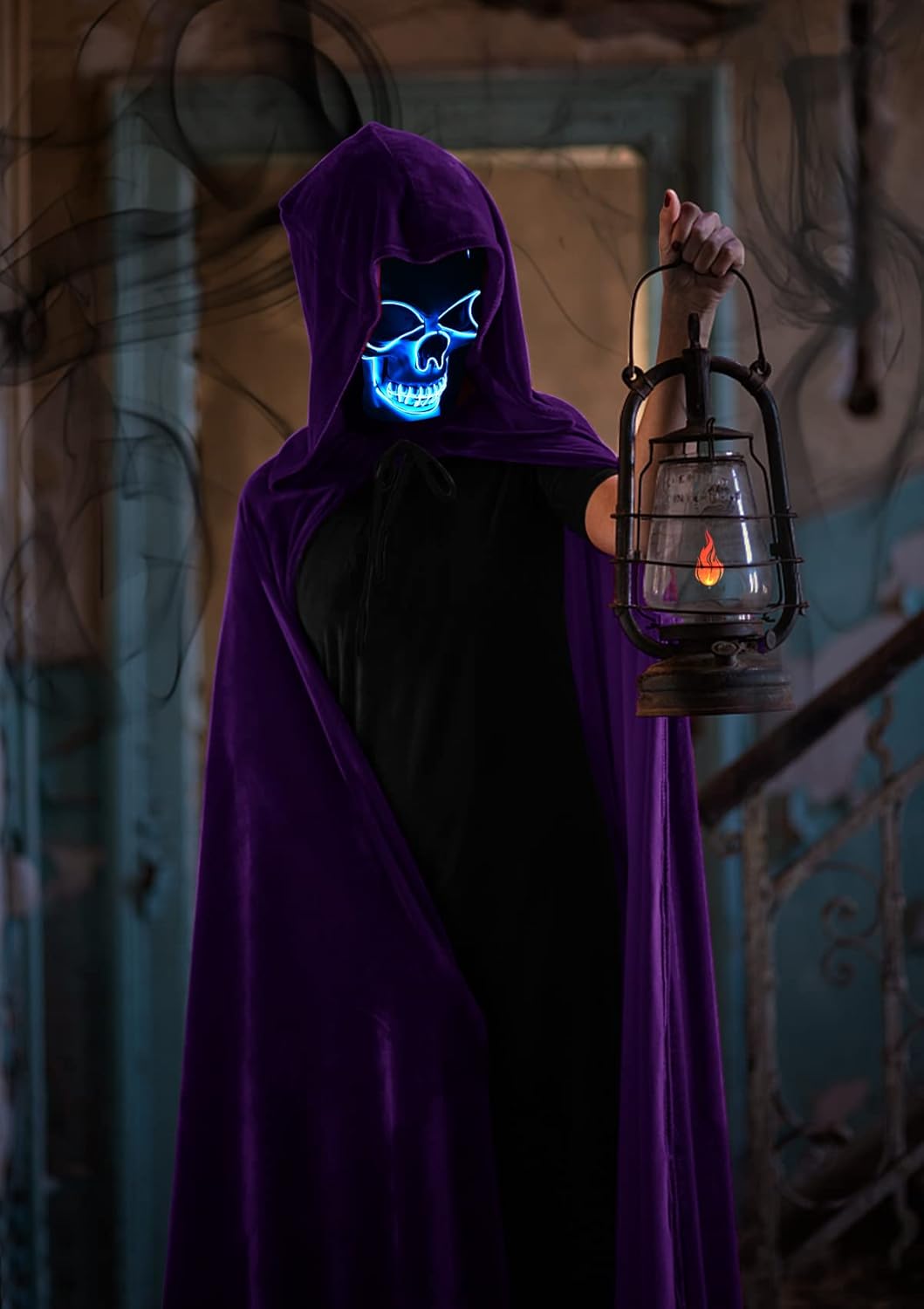 Used this as a mid party costume switch to get outta the heels and make up and bondage type outfits... these were perfect!! For reference, i am a 5'7" female, weigh 140 lbs. My friend is about 5'3". We were afraid we were going to have to cut the robes to wear them based on prior reviews. They were fine. Just wear all black under. And they aren't table cloth from the dollar store... Great for the price!! You need 2 double AA batteries. I couldn't find this info anywhere. Neither could AI. Def recommend