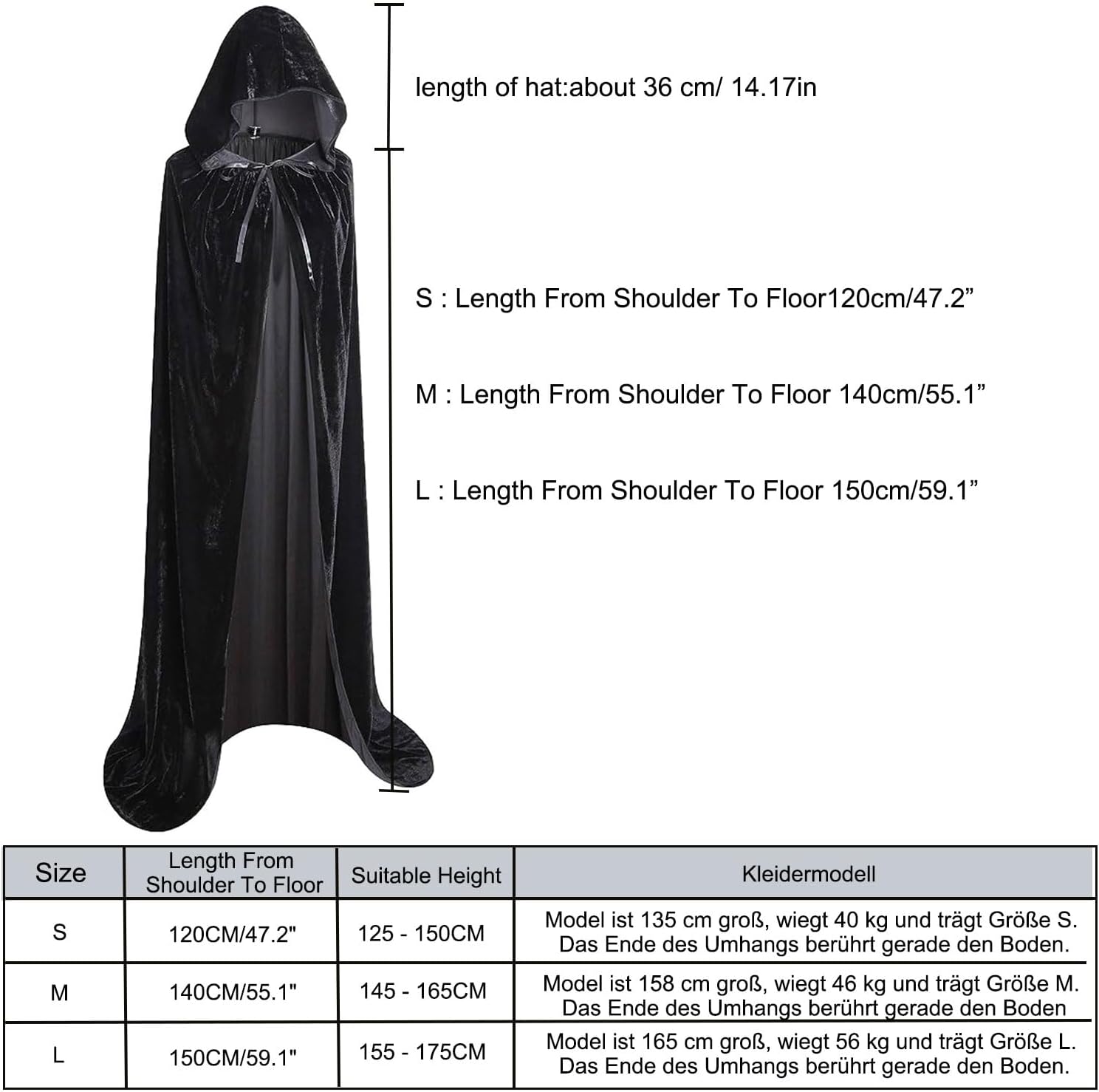 | Numero modello articolo | Cape noire avec capuche |