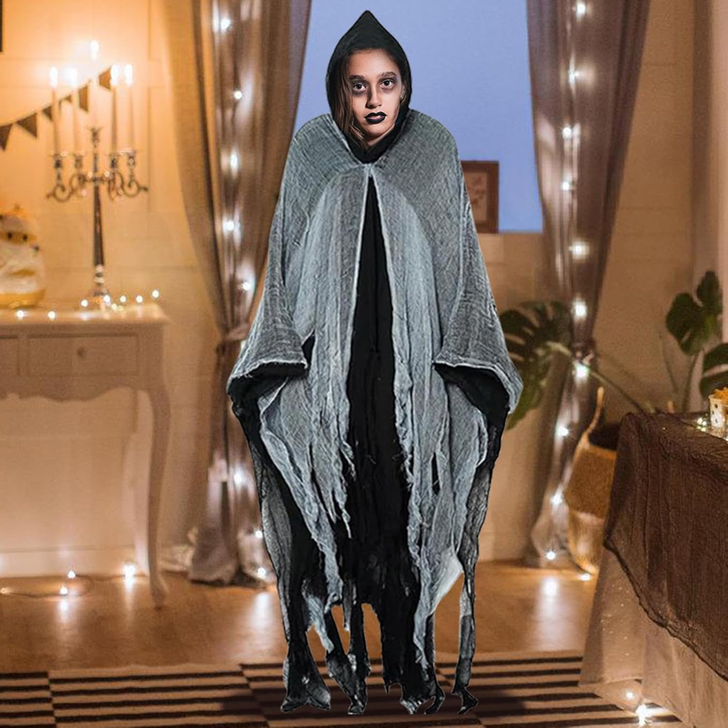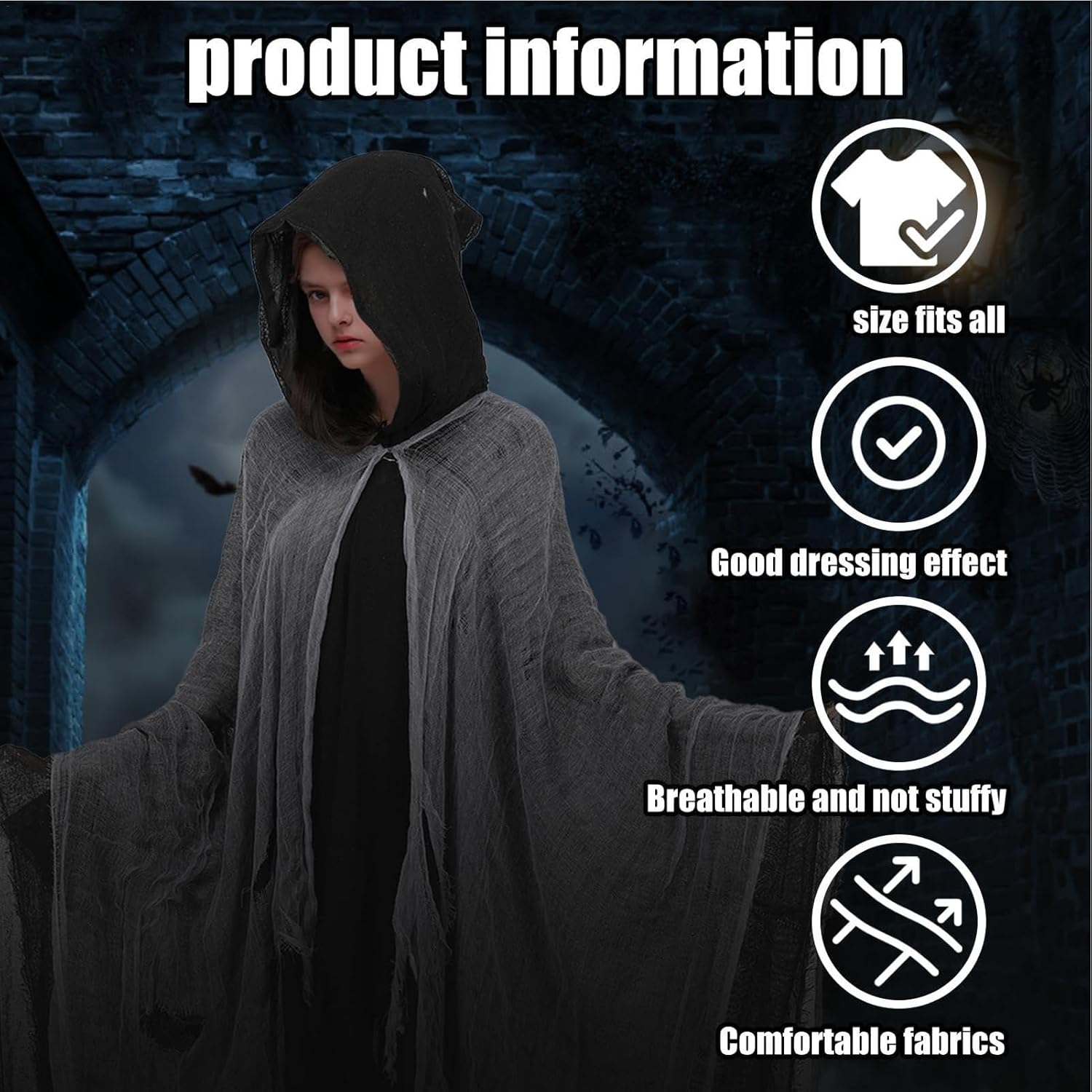 Descrizione prodotto Realizzato con materiali affidabili, il nostro spaventoso mantello medievale è adatto per creare un'atmosfera medievale spaventosa per le vacanze o gli spettacoli teatrali. Ottima aggiunta al tuo guardaroba per qualsiasi evento a tema. Specifiche: Nome del prodotto: mantello medievale di Halloween Materiale: garza Dimensioni del prodotto: circa 155 cm/61,02 pollici, più esterno: circa 185 cm/72,83 pollici Lista imballaggio: 1 pezzo * Mantello medievale di Halloween Avviso di sicurezza Non applicabile