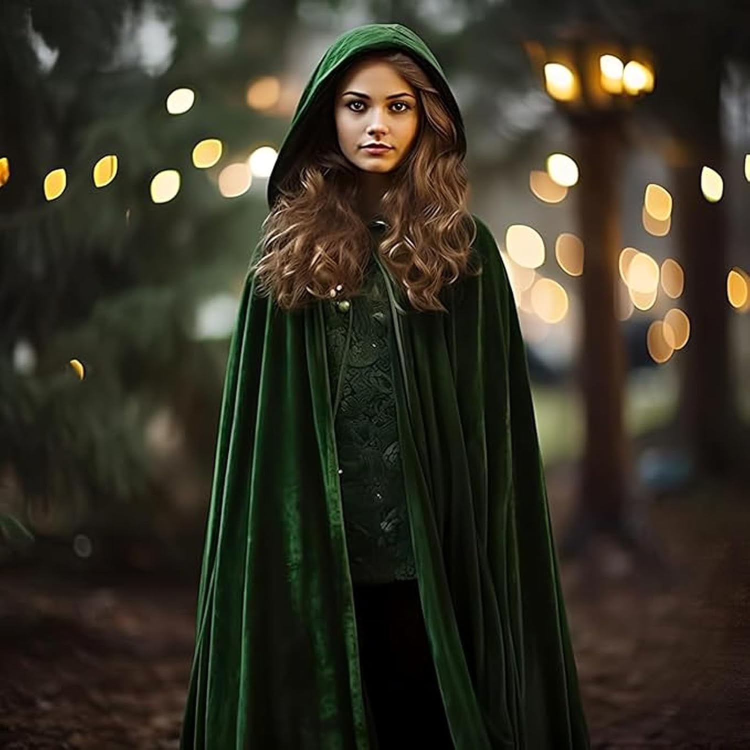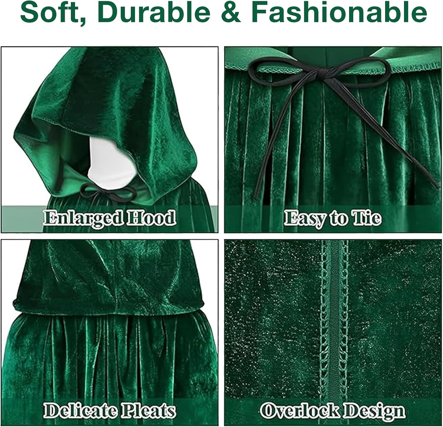 Materiale: morbido velluto con una lucentezza discreta. Leggero, opaco e caldo. Ideale come mantello per Halloween. LUNGHEZZA: lunghezza del pavimento (per le misure vedi foto). Cappuccio indeformabile e pratico. Utilizzabile su entrambi i lati per adulti e ragazzi. Chiusura: lacci stabili. Facile da regolare, vestibilità sicura. Si adatta sotto qualsiasi costume da Halloween da donna. Cura: indeformabile se lavato a mano. Solidità del colore garantitNastri antiscivolo. Versatilità: per costume da strega da donna, costume da elfo o costumi minimalisti. Utilizzabile per Halloween, carnevale o teatro.