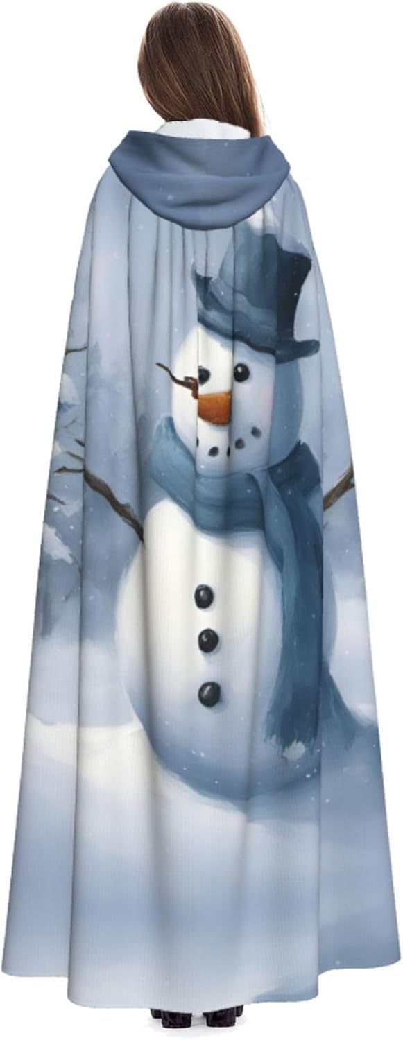 Mantello invernale con cappuccio con stampa pupazzo di neve e cappuccio, un accattivante mantello con cappuccio per adulti per cosplay e Halloween