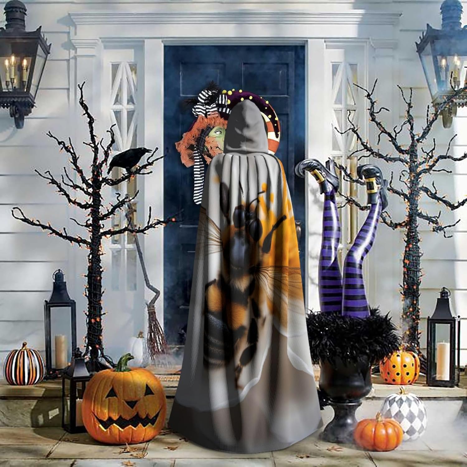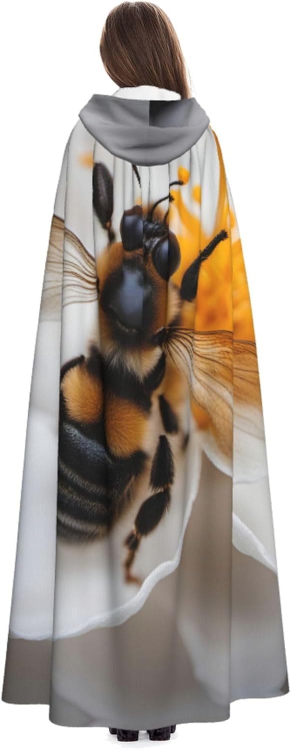 Mantello lungo con cappuccio con stampa ape su nido d'ape, mantello lungo per adulti, per Natale, Halloween, feste a tema e giochi di ruolo