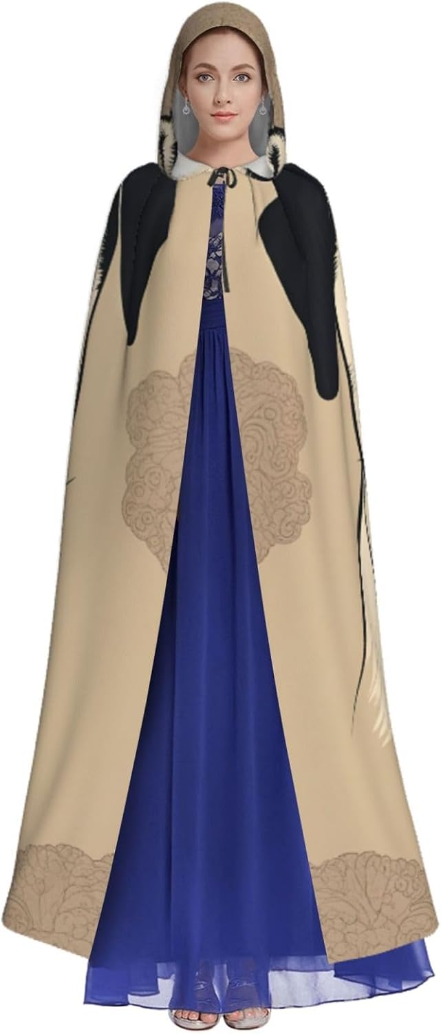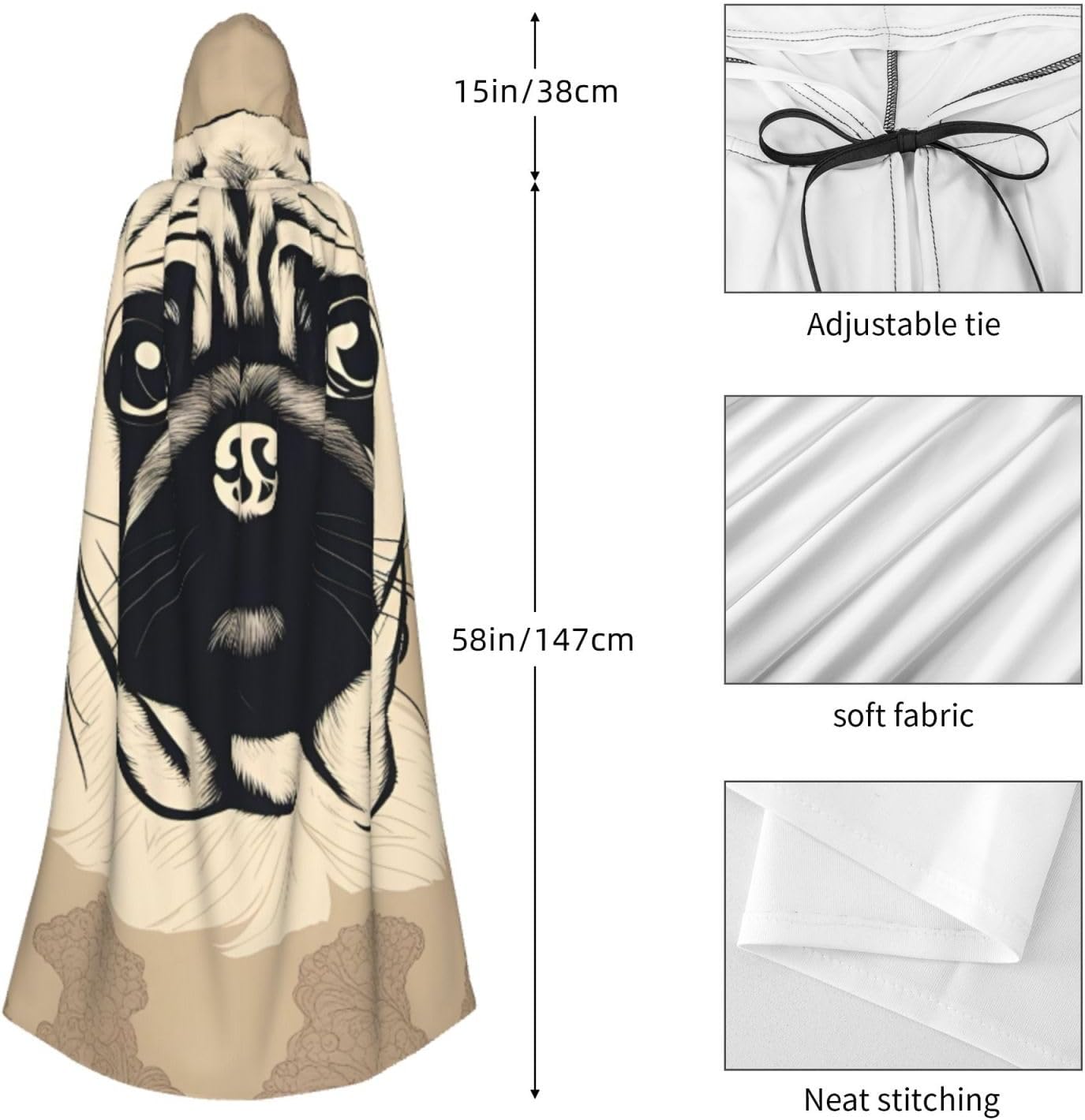 Mantello lungo con cappuccio con stampa di carlino, per adulti, per Natale, Halloween, feste a tema, giochi di ruolo