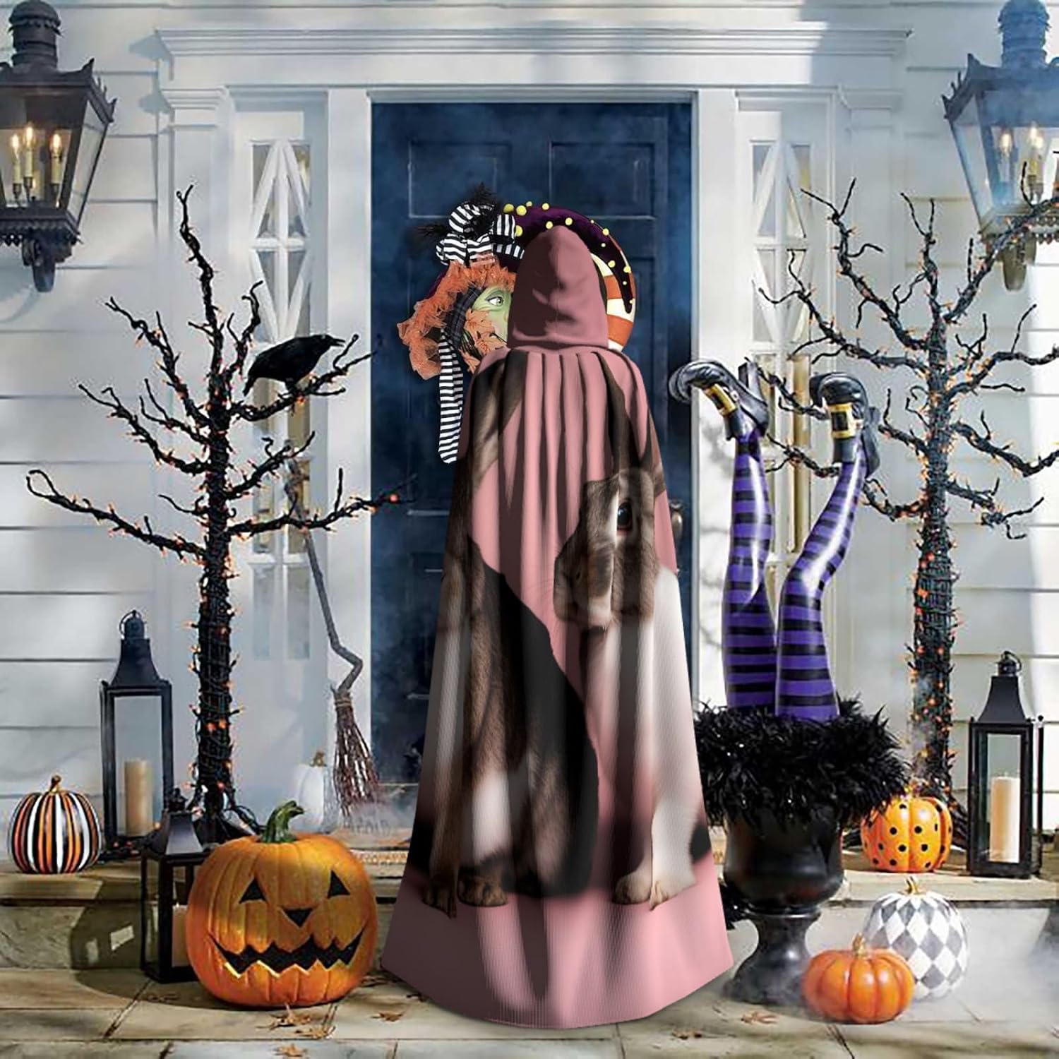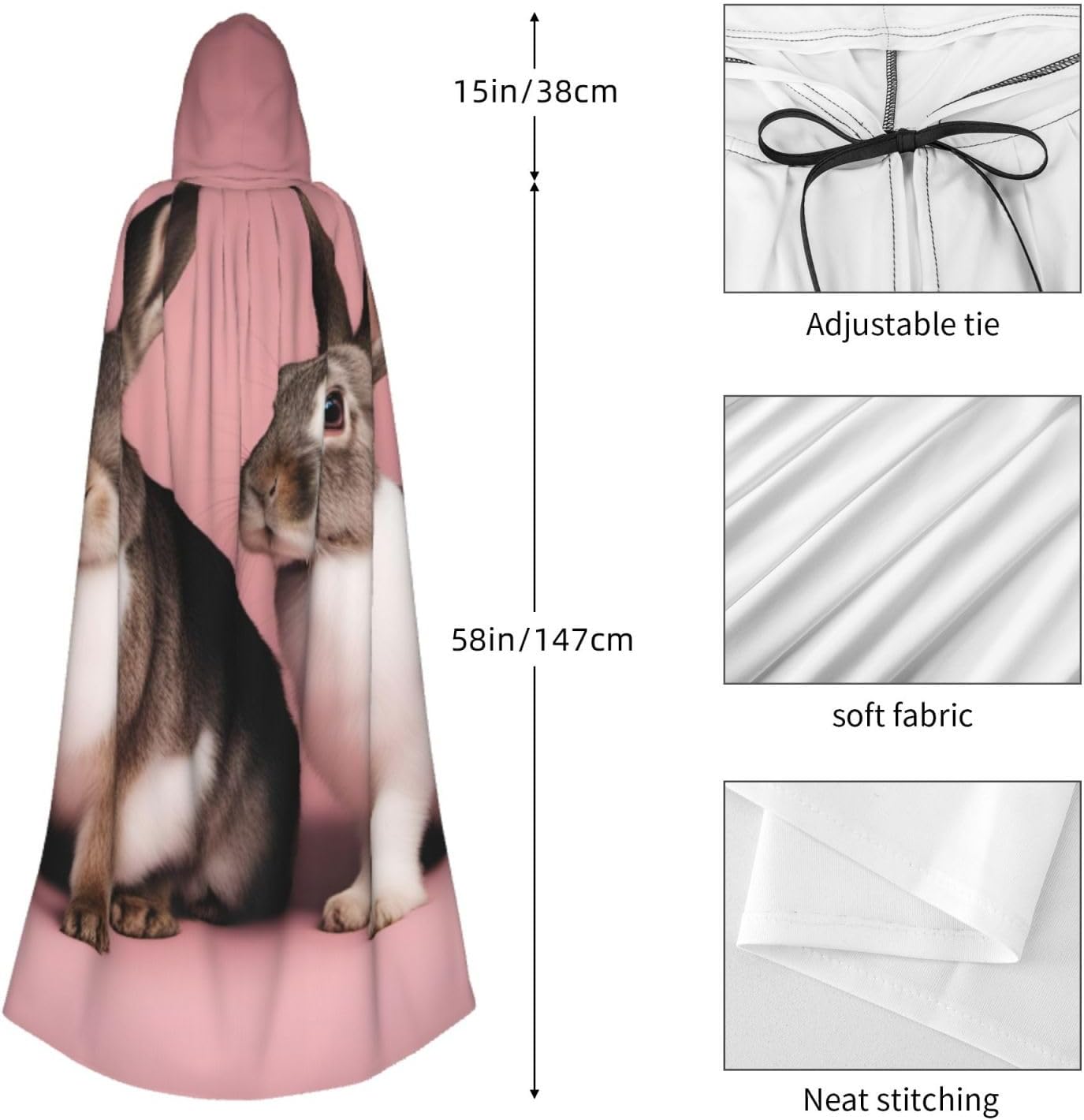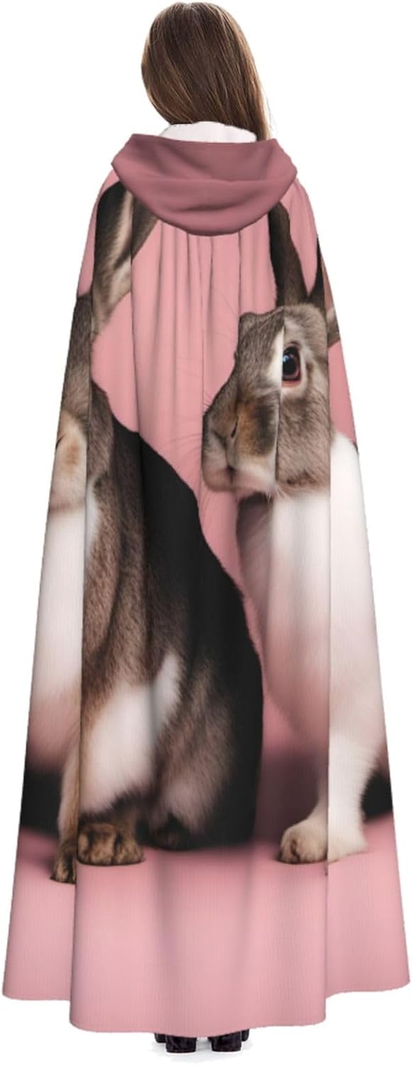 Mantello lungo con cappuccio con stampa di conigli, per adulti, per Natale, Halloween, feste a tema, giochi di ruolo