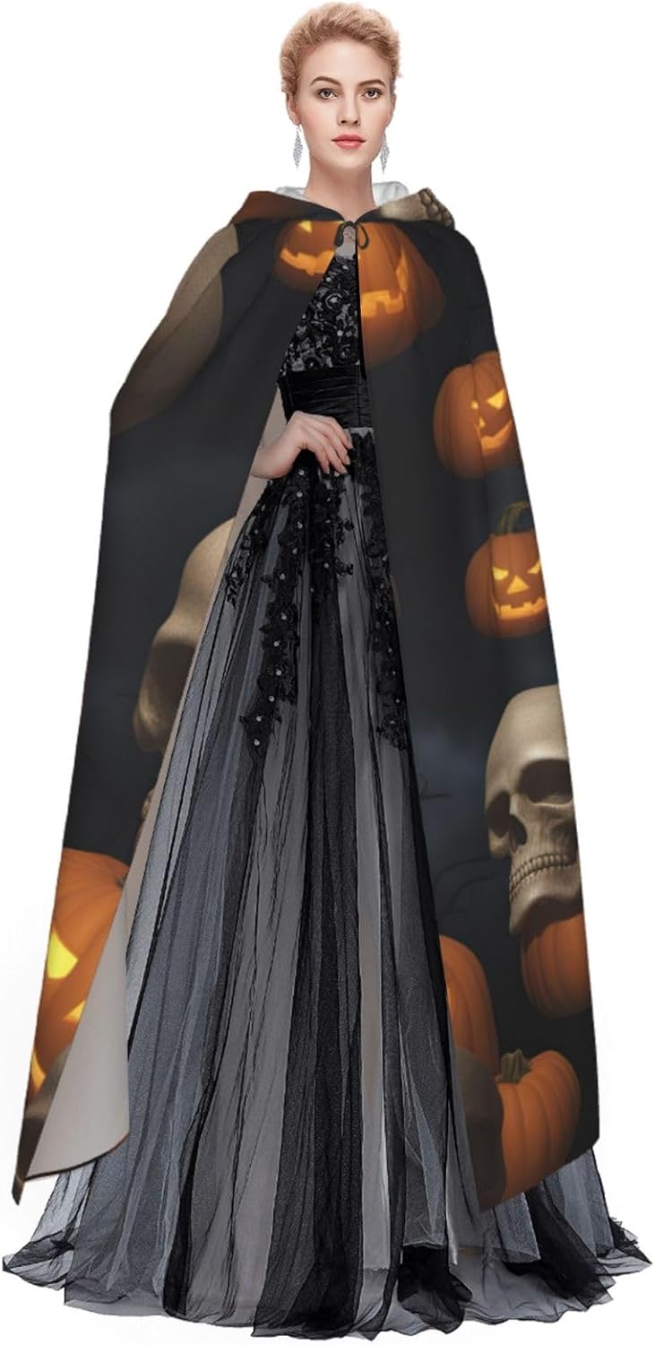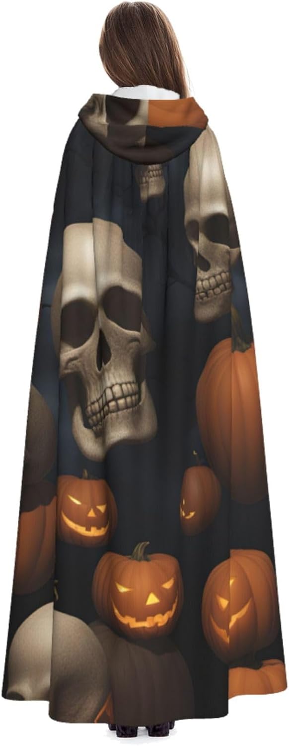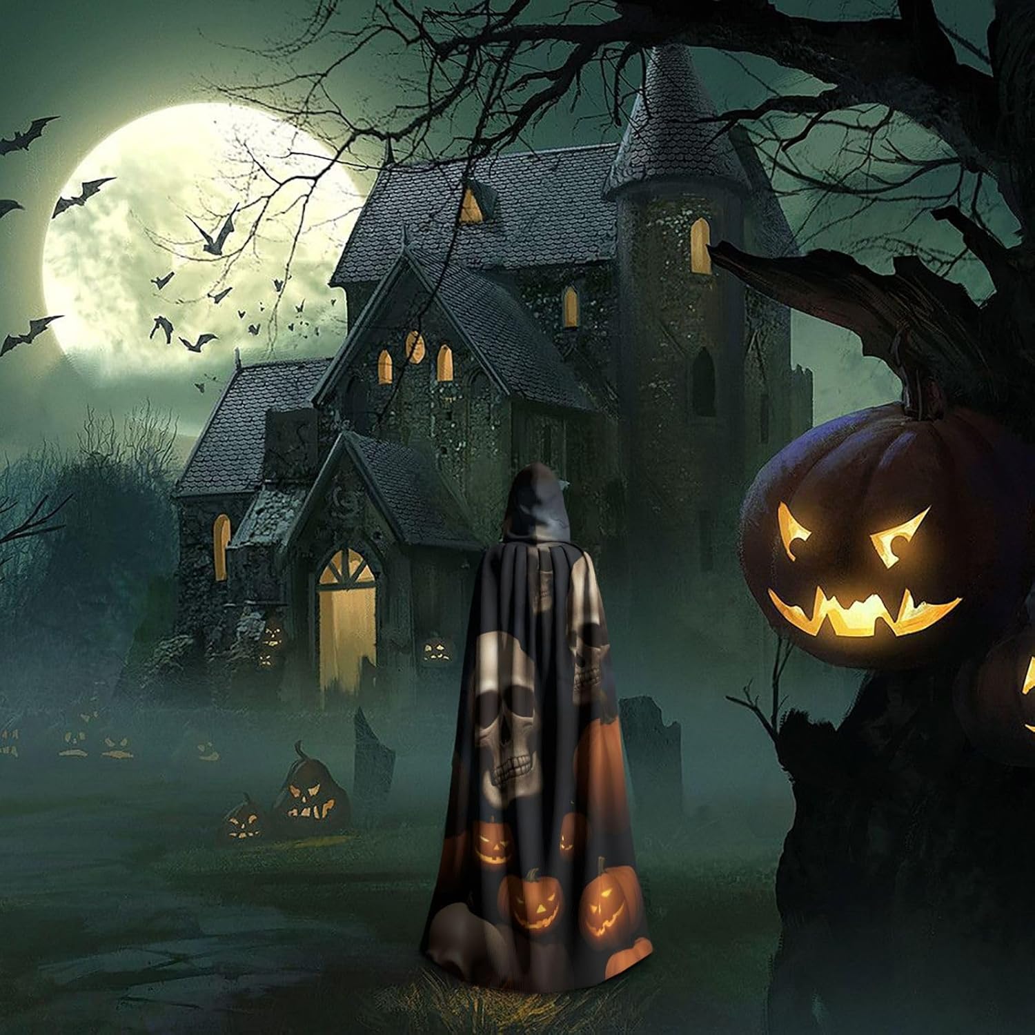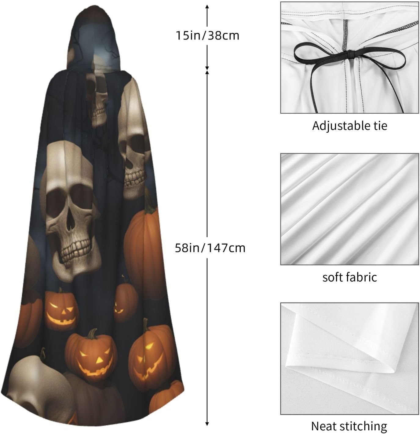 Mantello lungo con cappuccio con stampa di teschio di Halloween, per adulti, per Natale, Halloween, feste a tema, giochi di ruolo