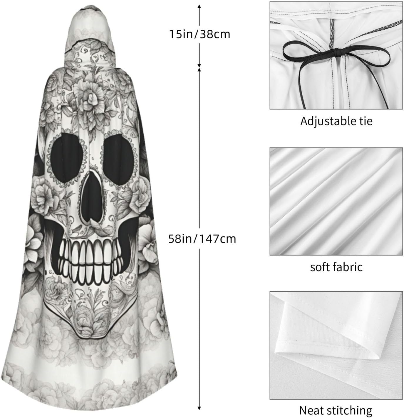 Mantello lungo con cappuccio con stampa di teschio messicano, per adulti, per Natale, Halloween, feste a tema, giochi di ruolo