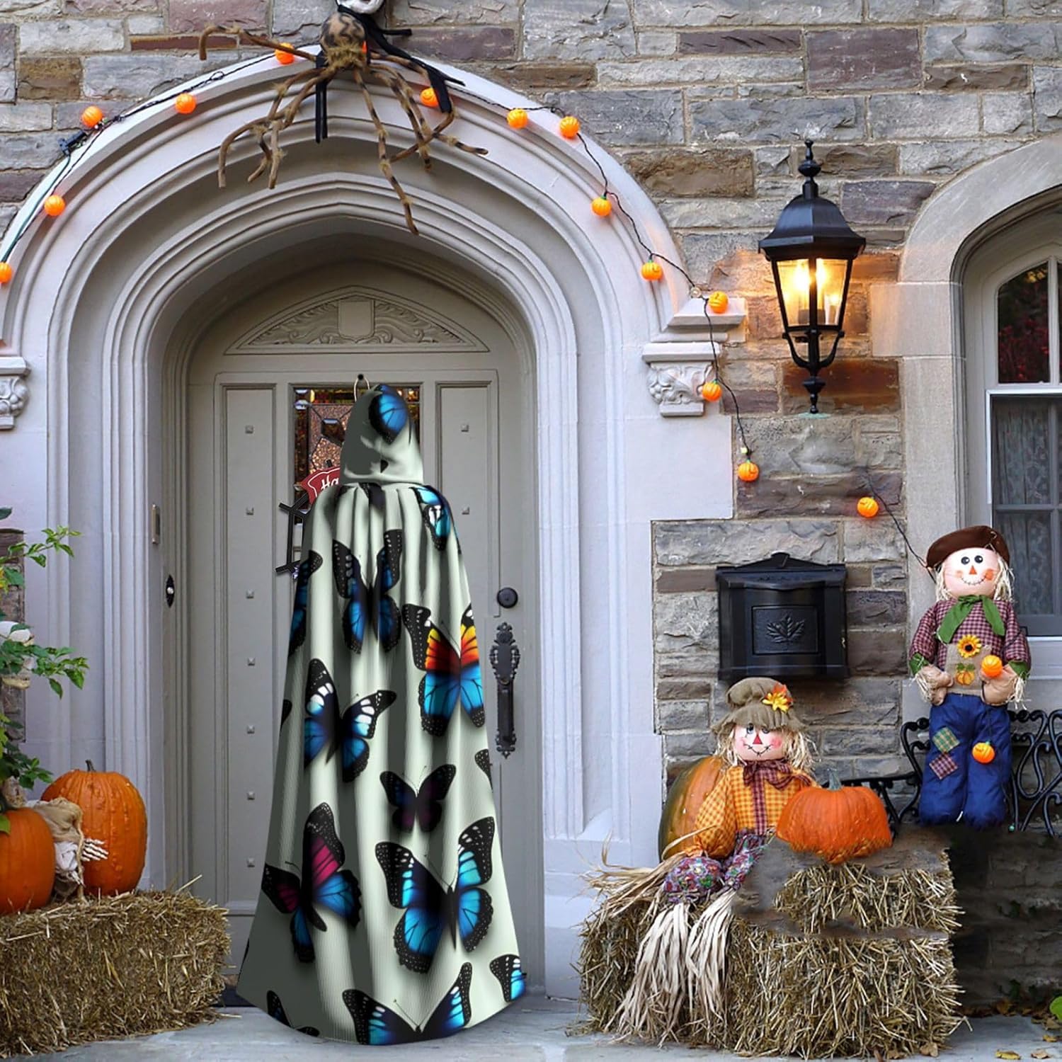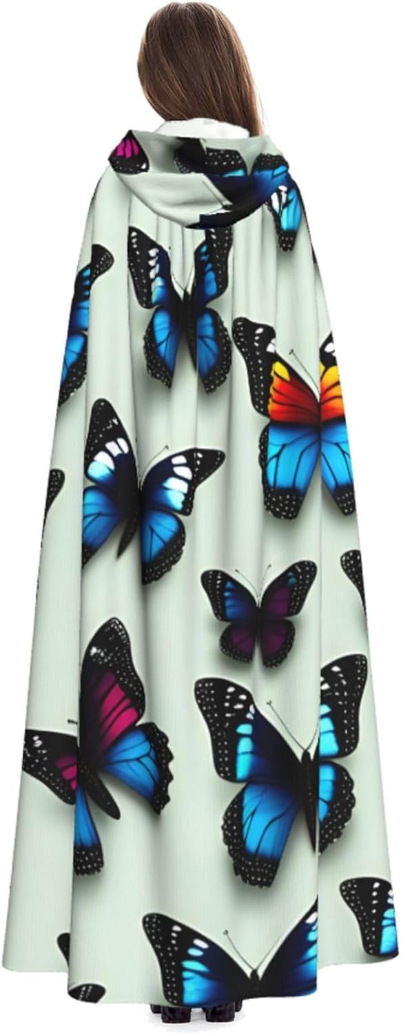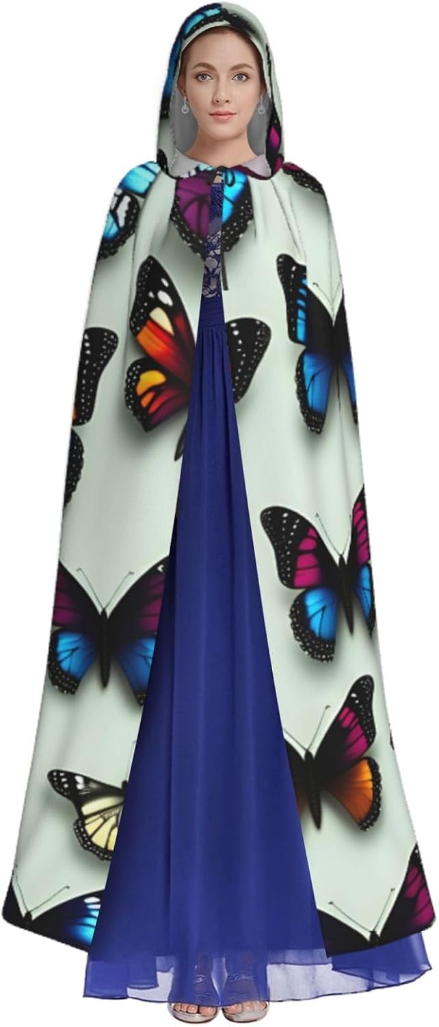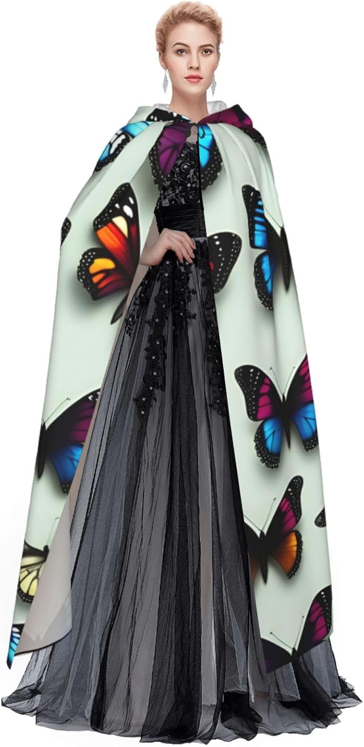 Mantello lungo con cappuccio con stampa farfalla e violoncello per adulti, per Natale, Halloween, feste a tema, giochi di ruolo, Nero, taglia unica
