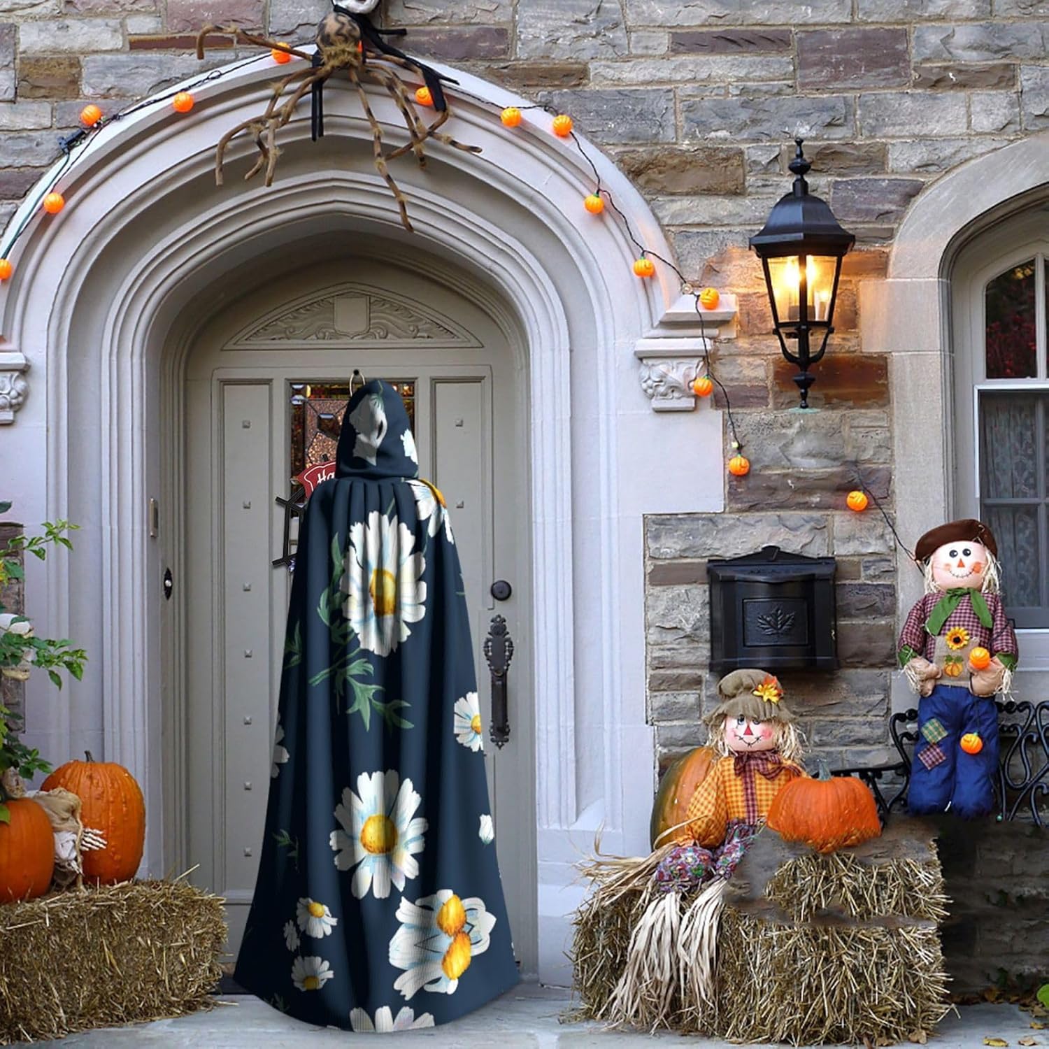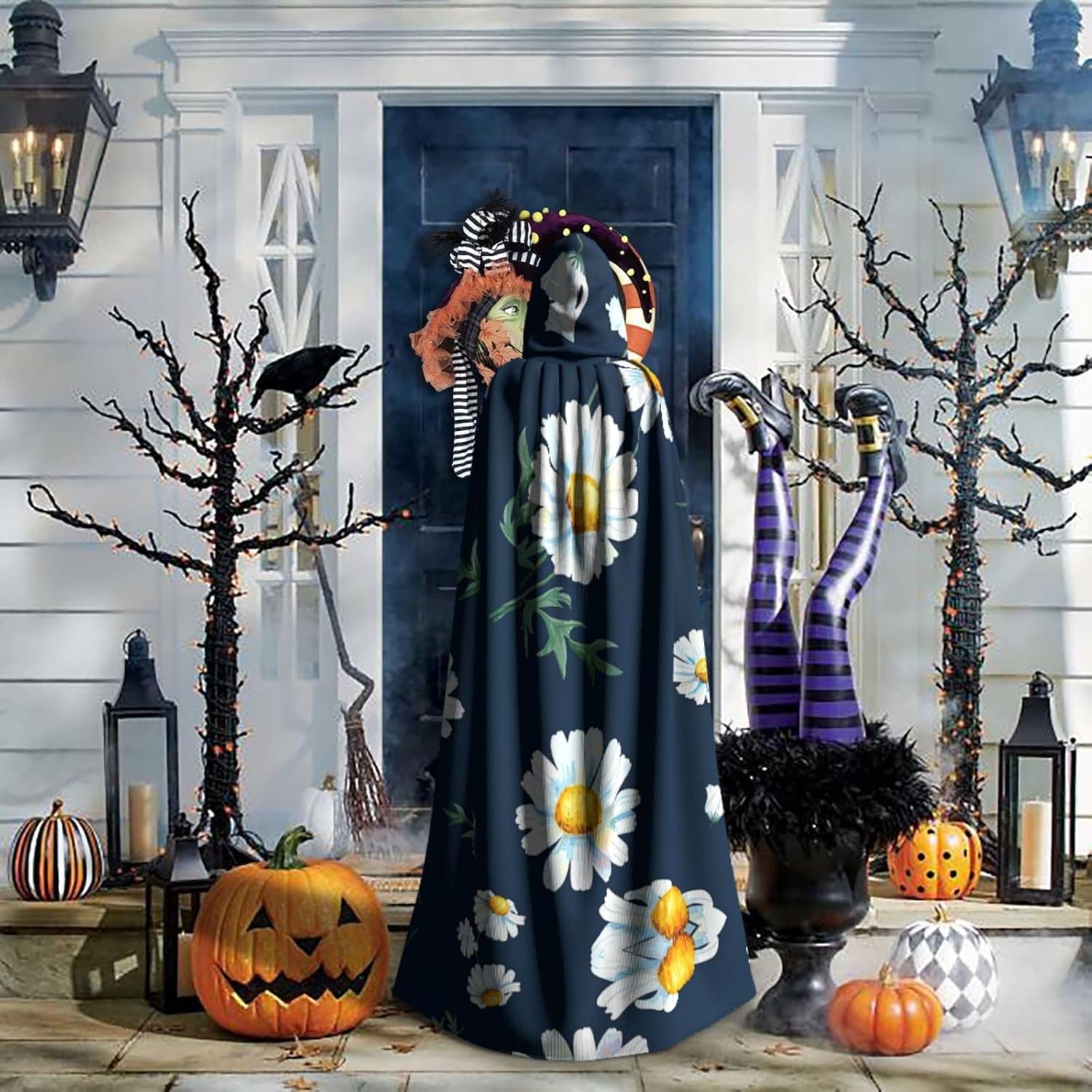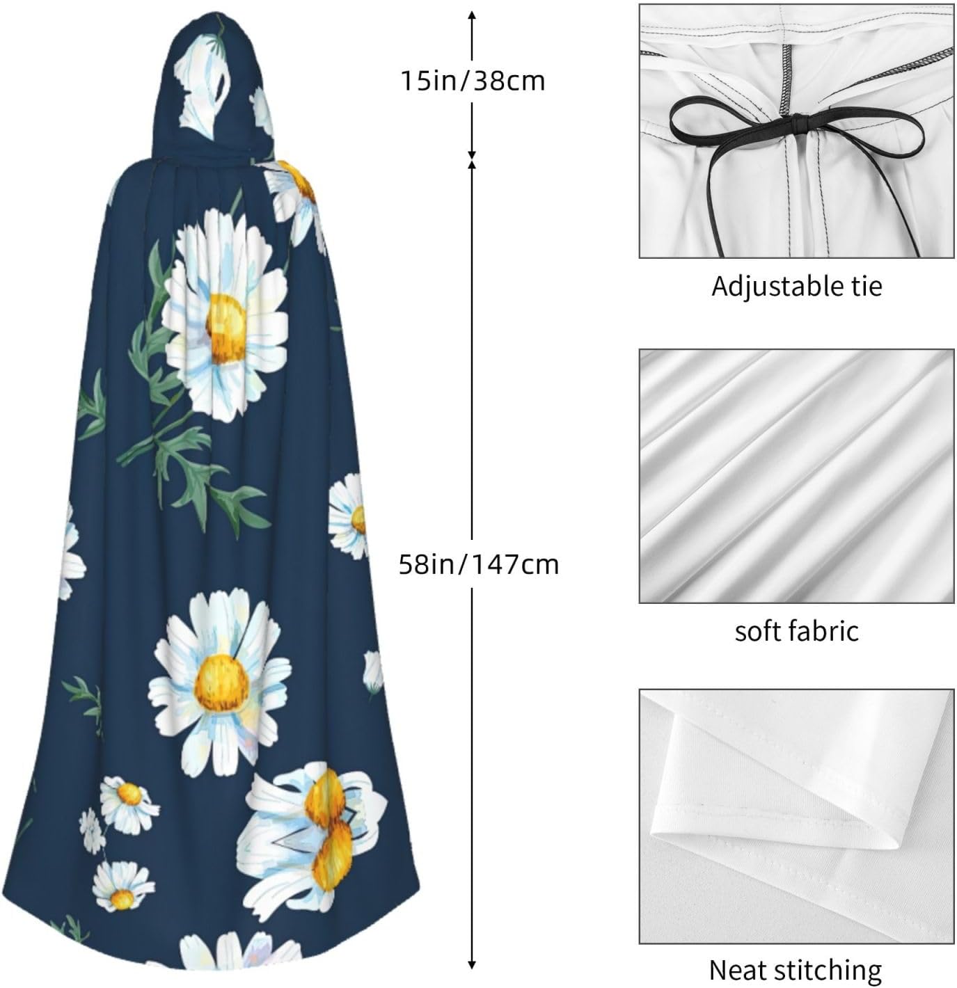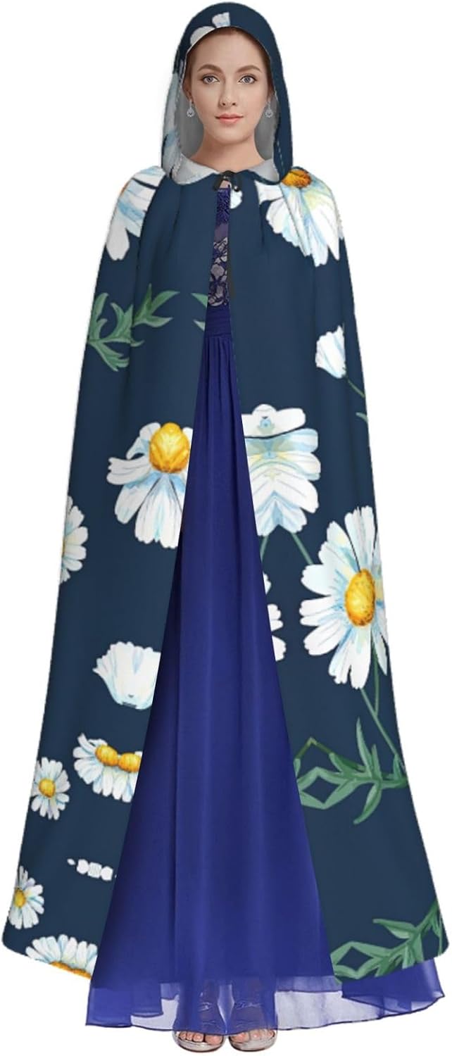 Mantello lungo con cappuccio, con stampa margherita, per adulti, per Natale, Halloween, feste a tema, giochi di ruolo