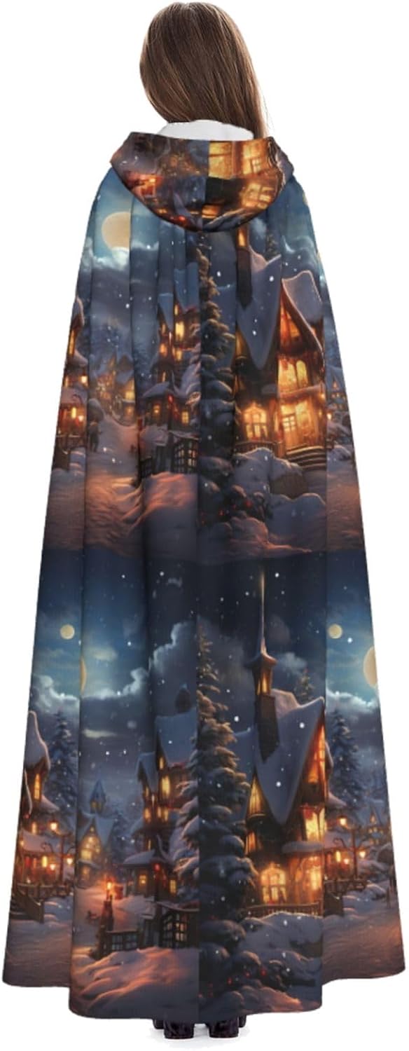 Mantello lungo con cappuccio con stampa natalizia per adulti, costume di Halloween per feste a tema e giochi di ruolo