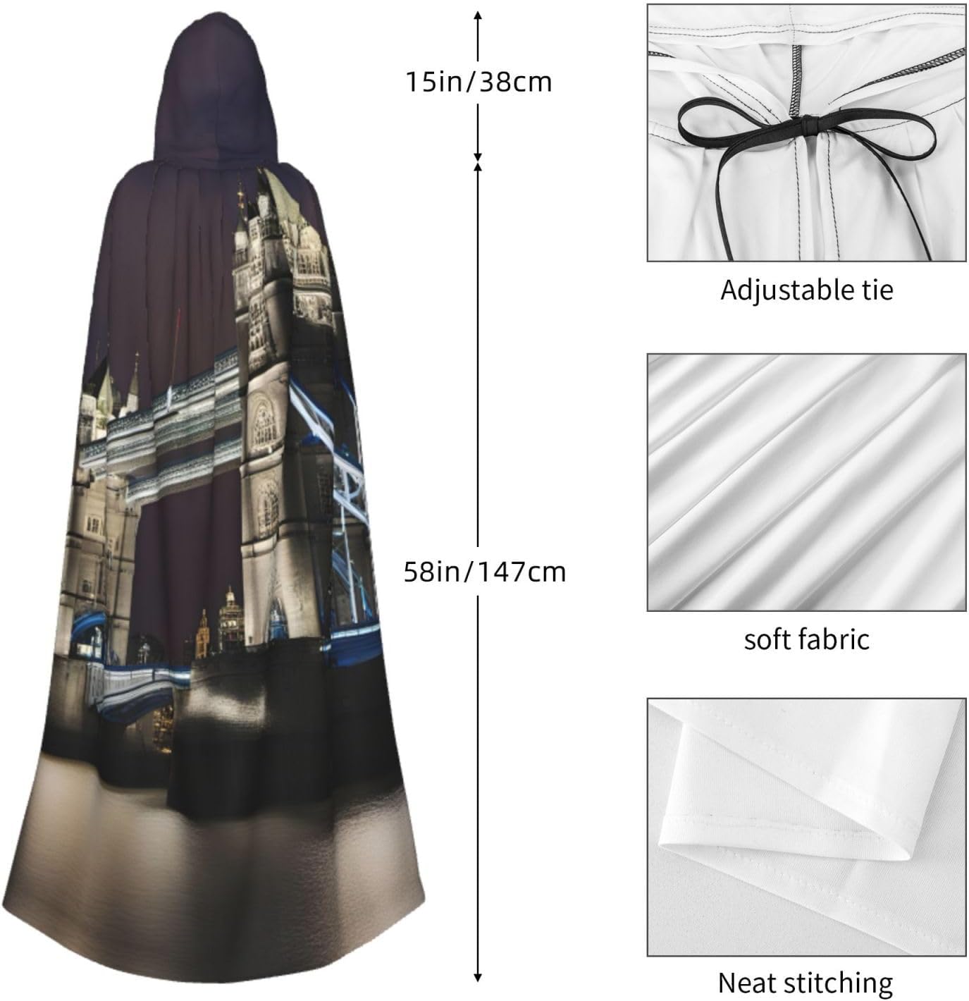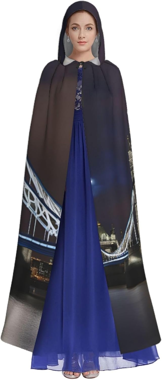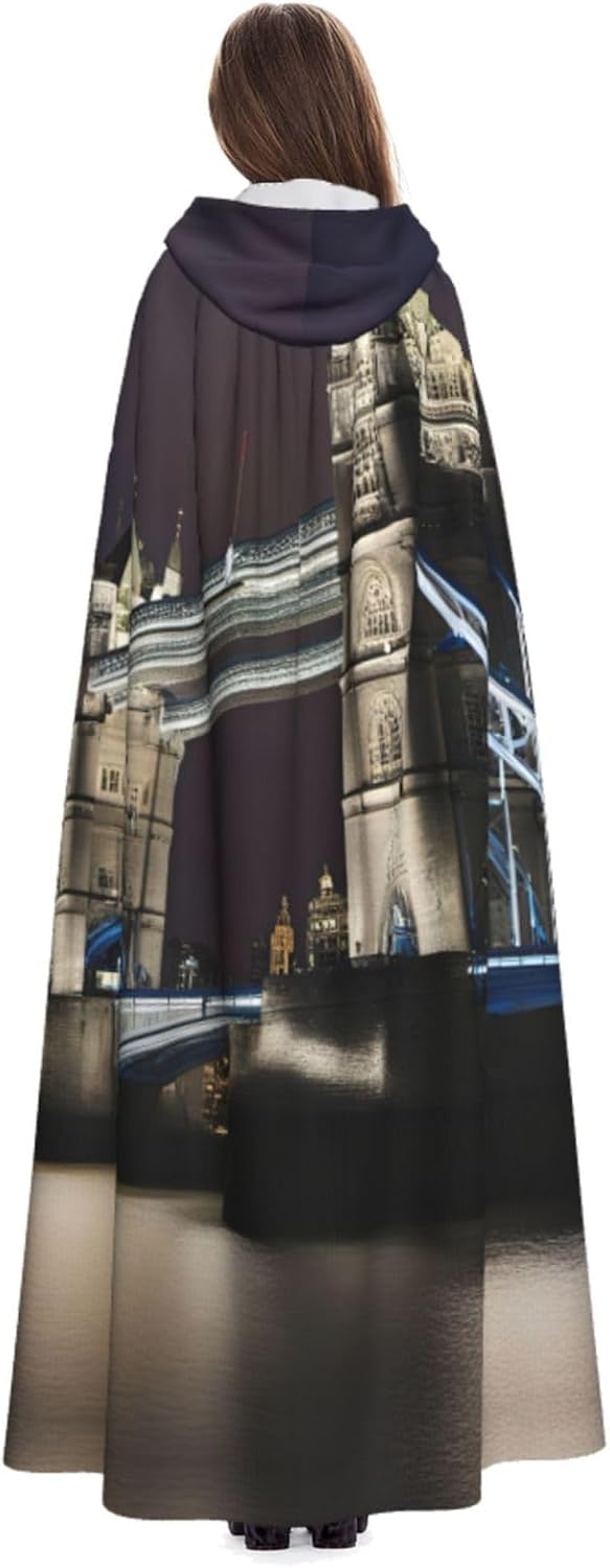 Mantello lungo con cappuccio con stampa Tower Bridge in London per adulti, per Natale, Halloween, feste a tema e giochi di ruolo