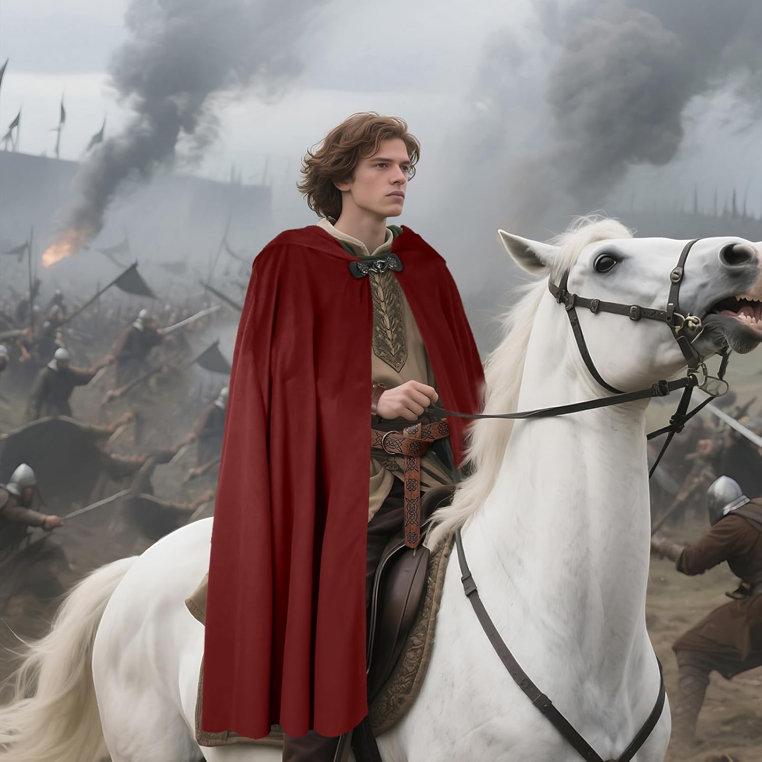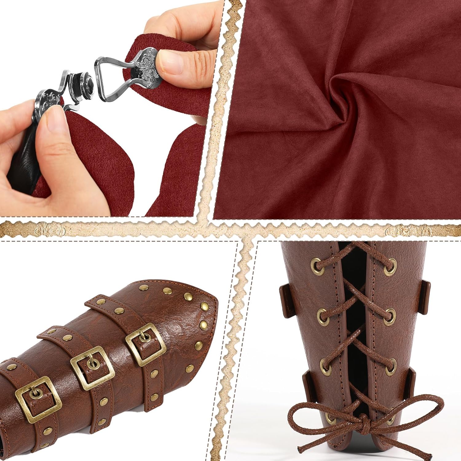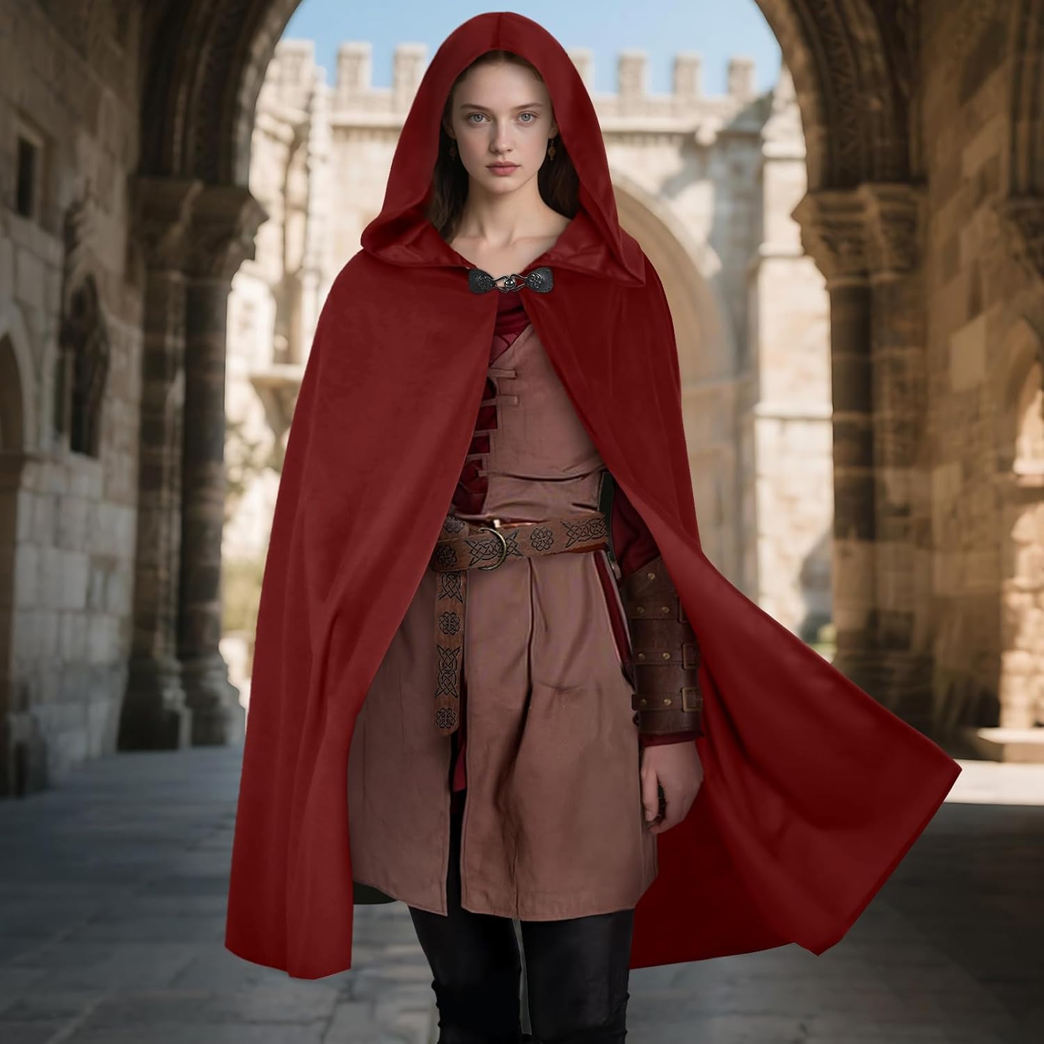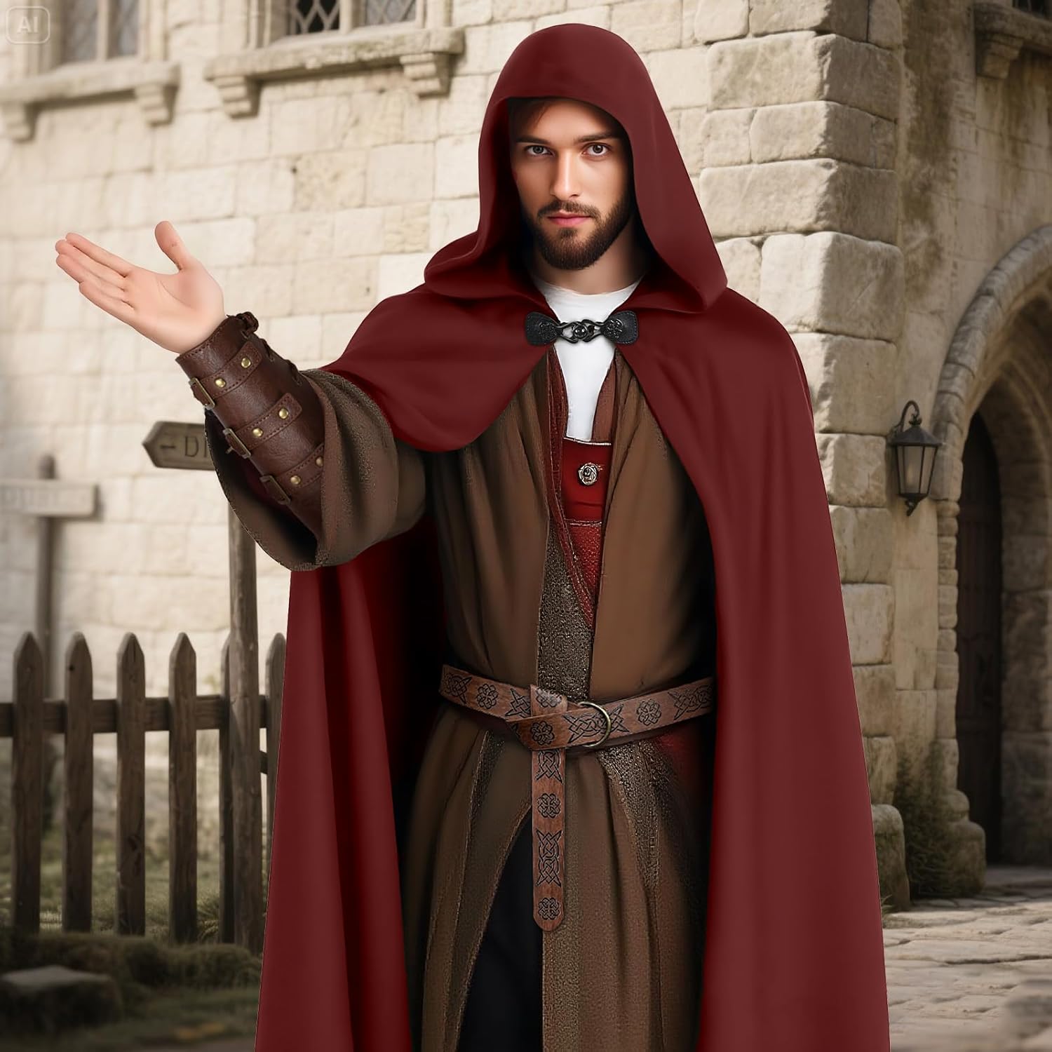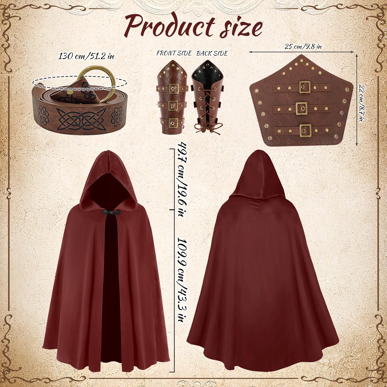 Mantello medievale con cappuccio Mantello rinascimentale in velluto con cintura vichinga Bracciali in pelle Accessori per costumi Uomini adulti Donne Halloween
