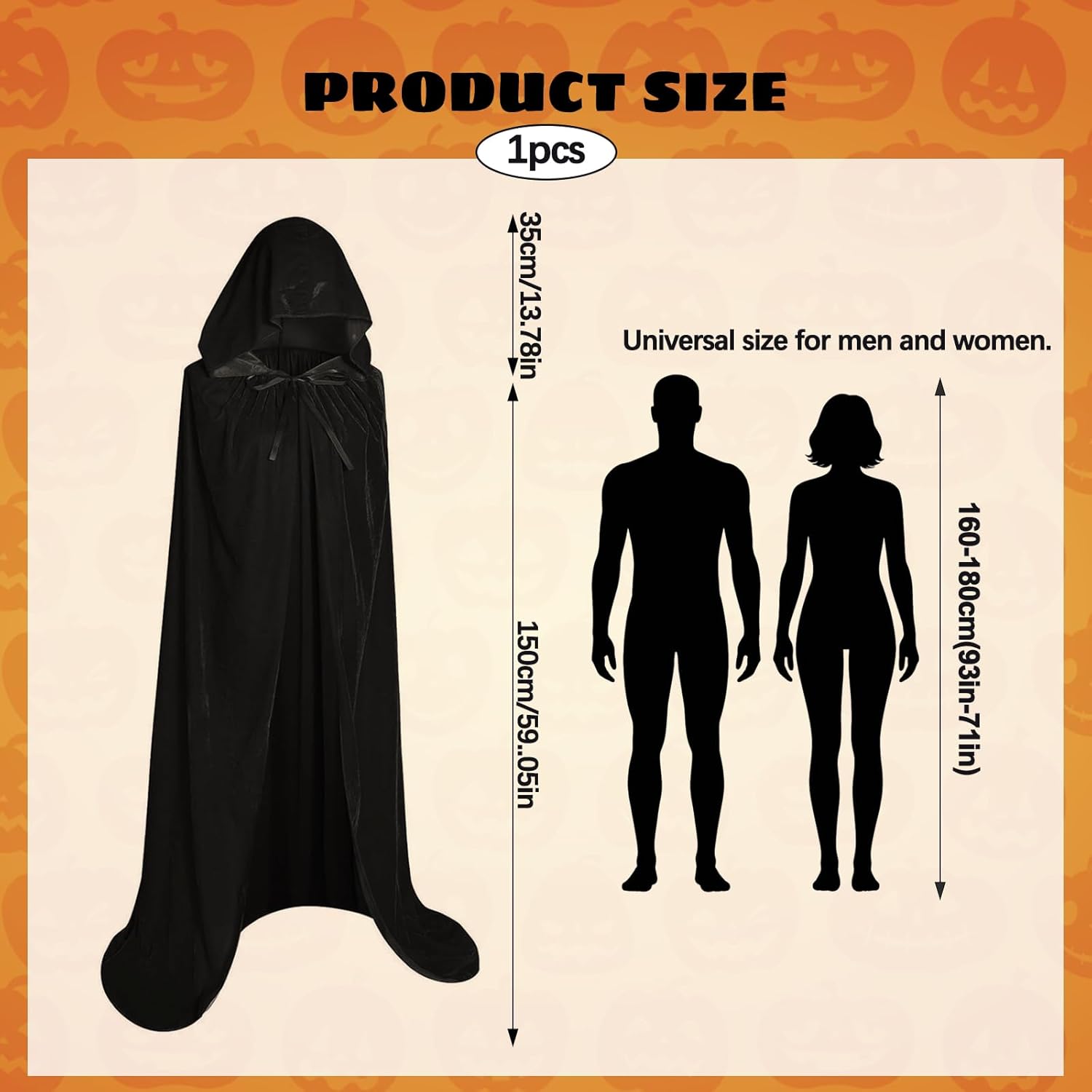 TESSUTO IN VELLUTO MORBIDO: questo mantello nero con cappuccio è realizzato in velluto lucido di alta qualità, comodo da indossare e non trasparente. Perfetto per look misteriosi! Mantella nera lunga fino al pavimento: La mantella nera YceLon è lunga 150 cm (dalla spalla al pavimento) ed è adatta sia per uomini che per donne. Scegli tra lunghezza al ginocchio o lunghezza al pavimento! Costume mistico di Halloween: il mantello vellutato con cappuccio copre completamente il tuo corpo e dona un'aura misteriosa - ideale per vampiri, maghi o streghe. Cappuccio regolabile: la cravatta rinforzata del mantello nero è abbastanza lunga da lasciare spazio agli accessori. L'ampio cappuccio copre quasi tutto il viso! MULTIUSO: perfetto per feste di Halloween, cosplay, teatro o feste a tema. Vesti i panni di un vampiro, un mago o un personaggio oscuro con questo elegante mantello nero.