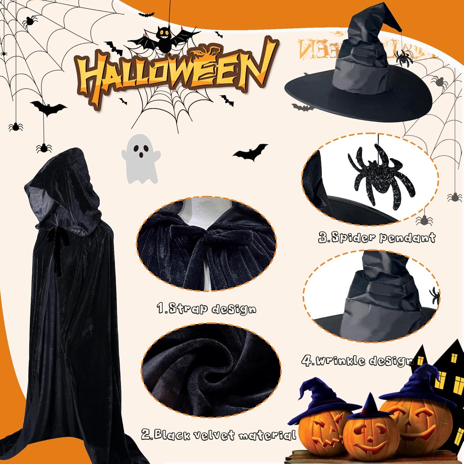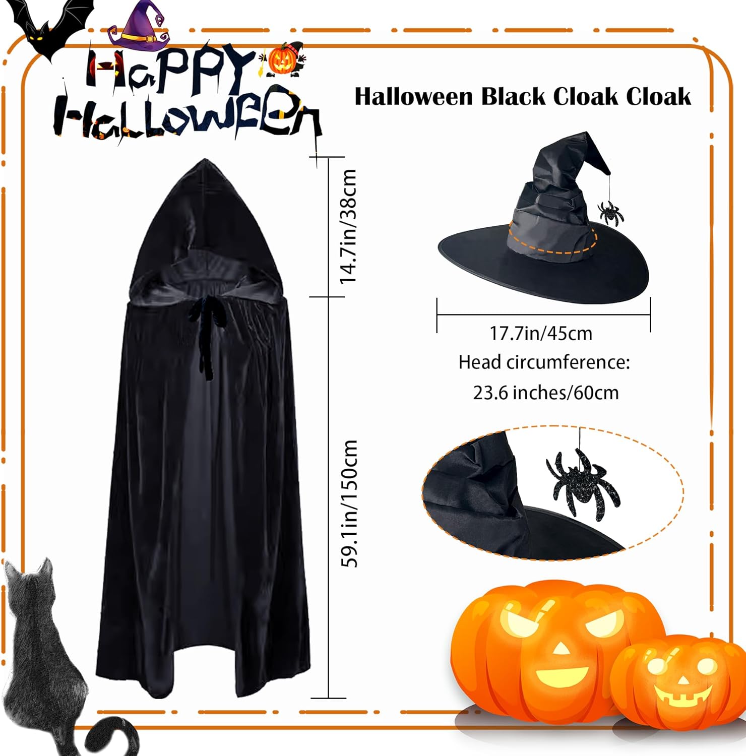 ►Manuale del prodotto: - Materiale: velluto - Colore: nero - Dimensioni: Dalla spalla all'orlo 150 cm/59 pollici - Cura: Lavabile in lavatrice ►Contenuto della confezione: Mantello nero con cappuccio per halloween + cappello da strega ►Note calde: 1. Diversi monitor per computer, il colore potrebbe essere più chiaro o più scuro. 2. A causa della misurazione manuale, consentire una deviazione della misurazione di 1-2 cm. 3. In caso di domande, non esitare a contattarci, ti aiuteremo il prima possibile.