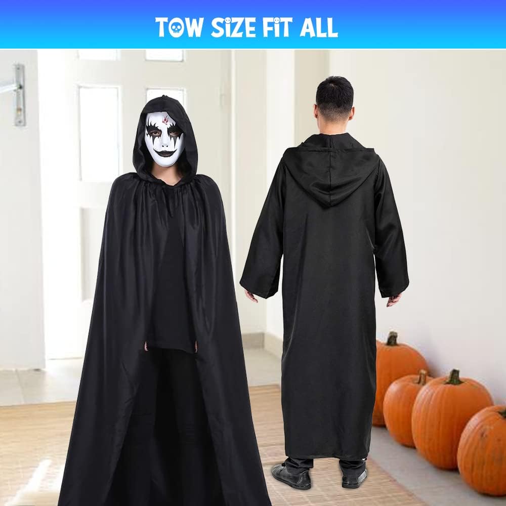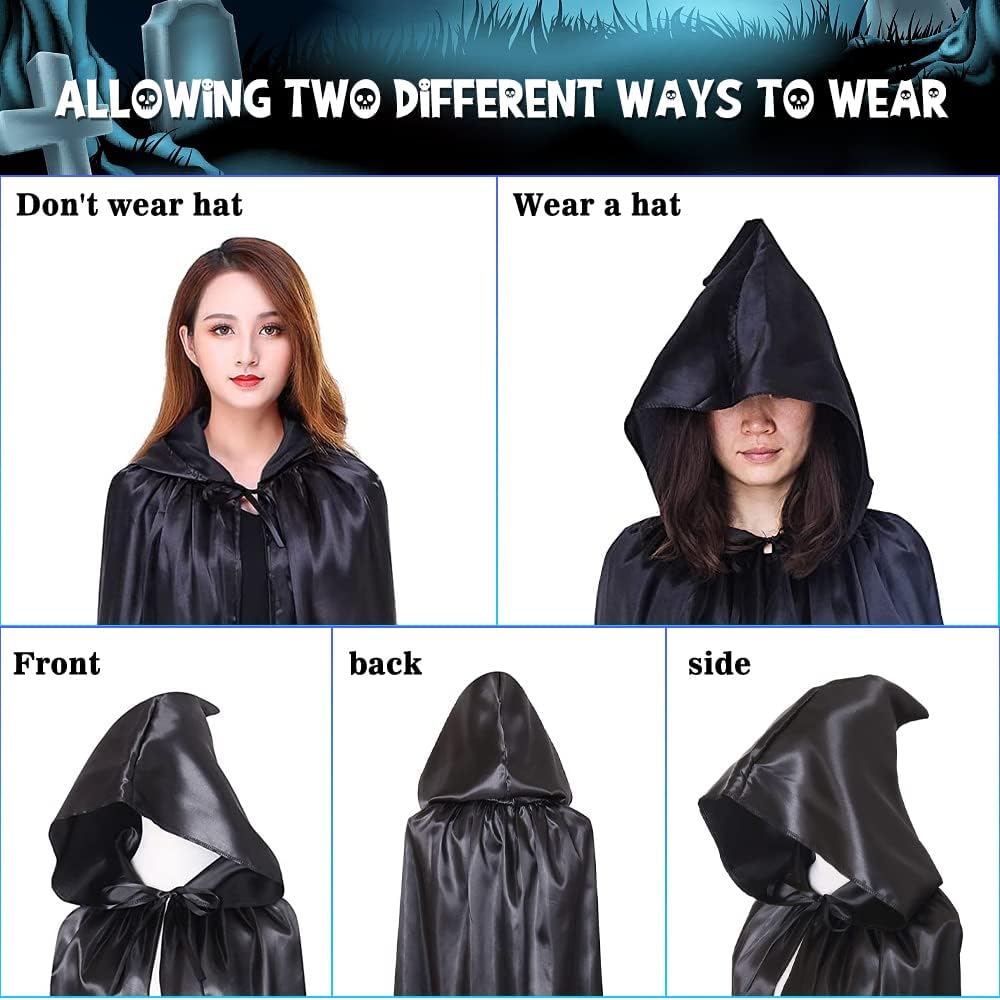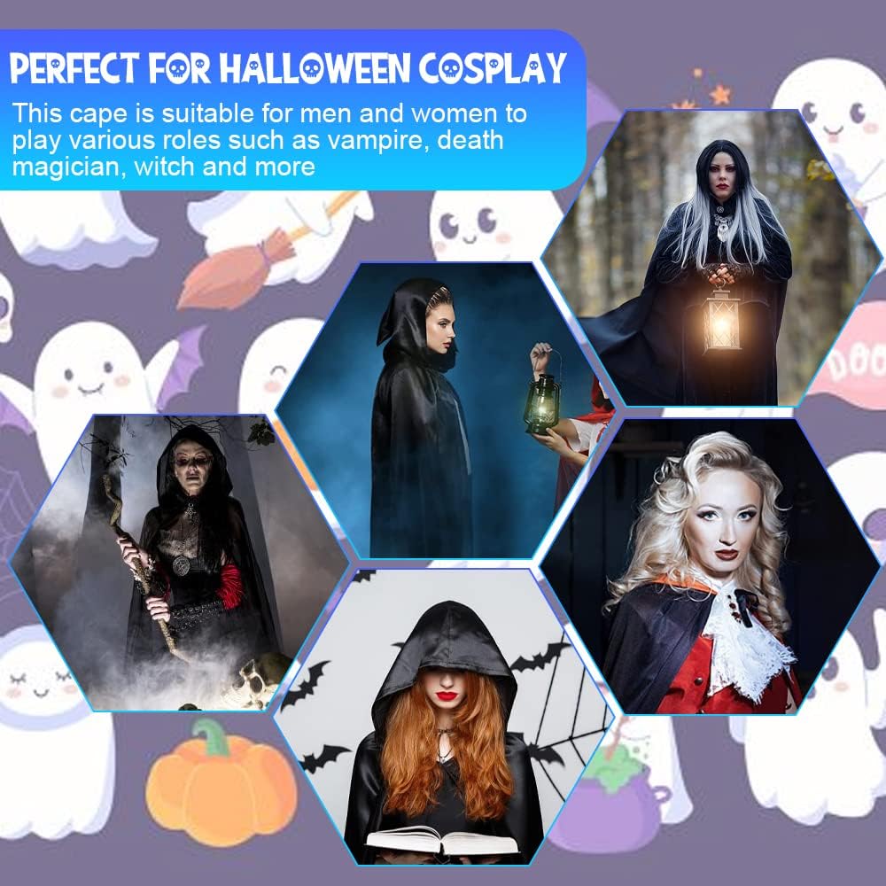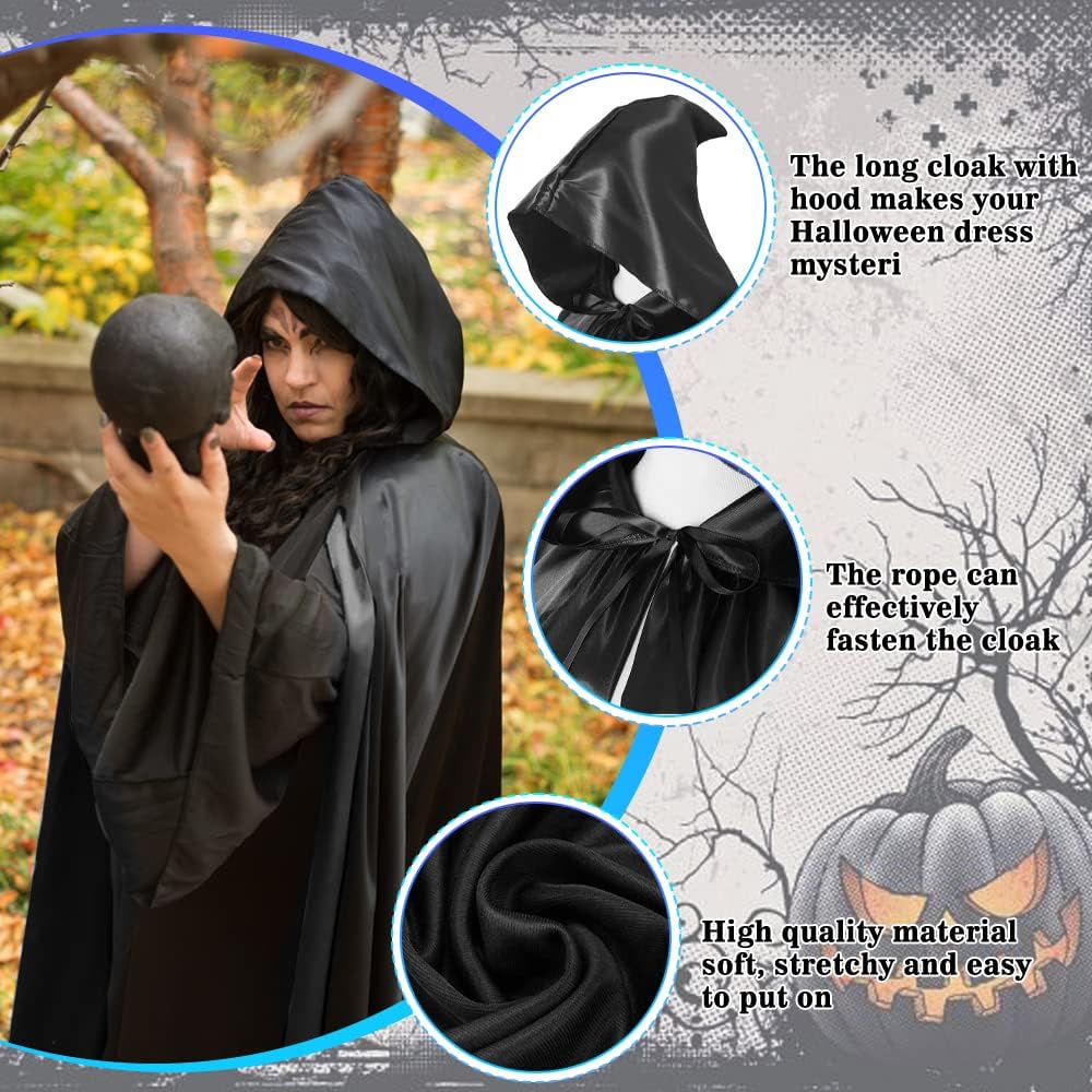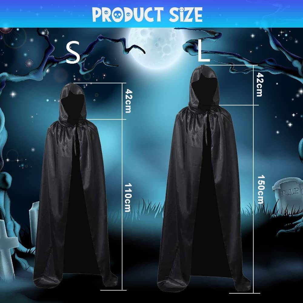 Mantello Nero Mantello con Cappuccio Costume da Vampiro Nero Mantello per Adulti Costume da Mago Accessorio per Travestimenti per Carnevale, Halloween, Natale, Masquerade